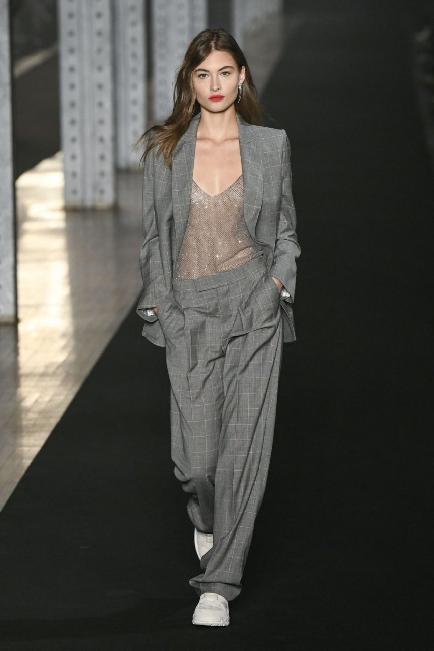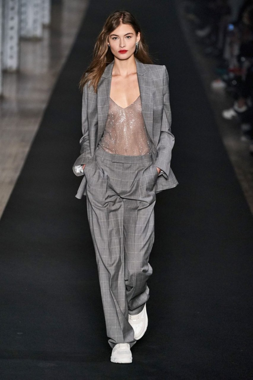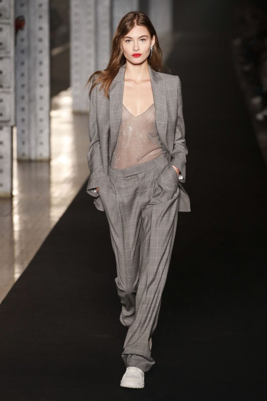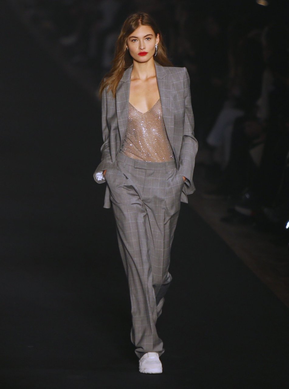 Model Grace Elizabeth camina por la pasarela con un top transparente sin sostén en el desfile de Zadig & Voltaire durante la Semana de la Moda de Nueva York en Nueva York, 13/02/2019.