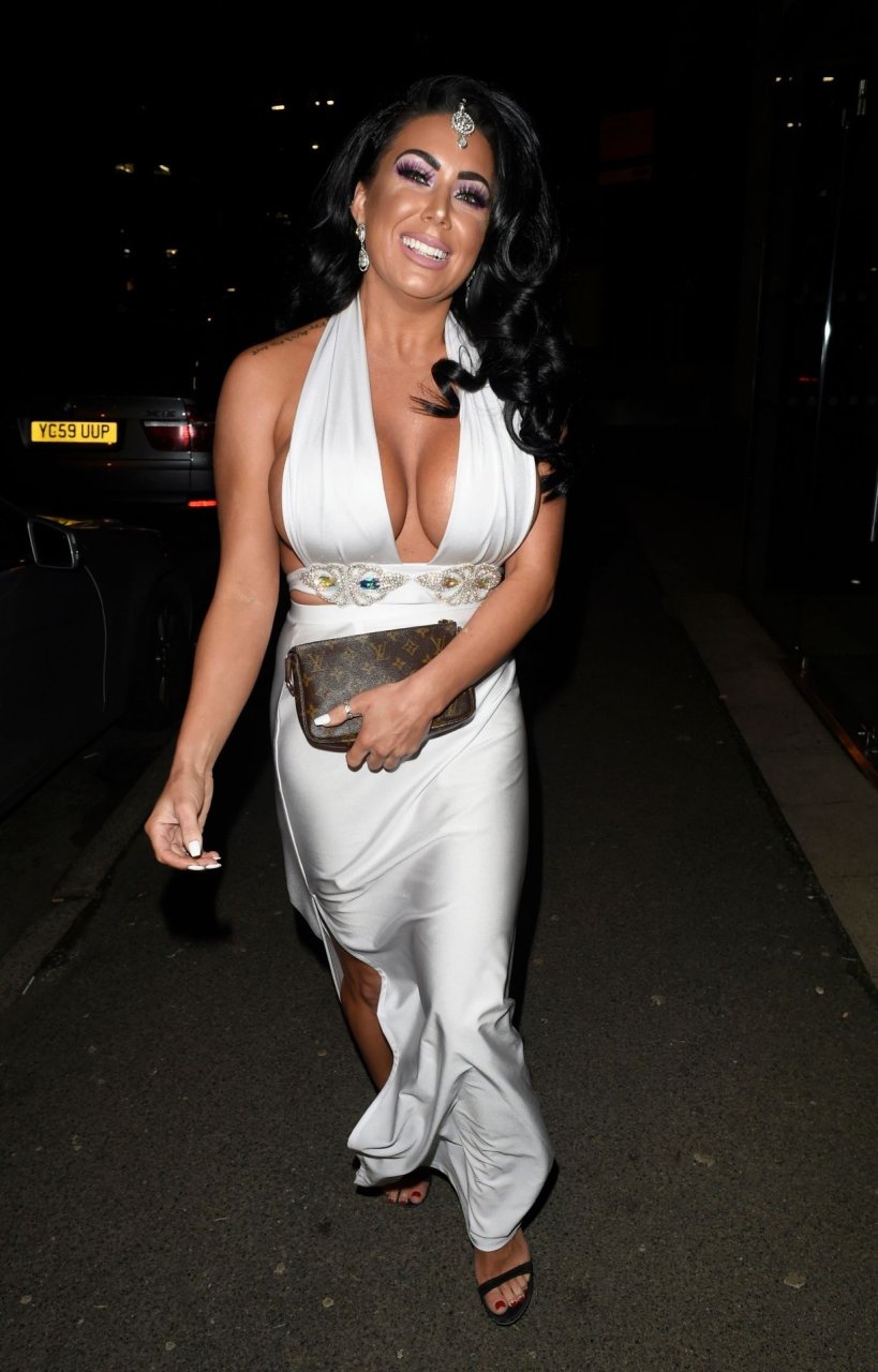La modelo y presentadora Grace J Teal muestra un escote muy pronunciado en la noche de Año Nuevo en Toy Box en Manchester, 13/31/2018.