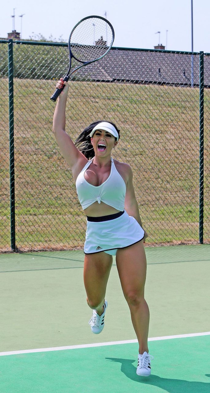 Ella podría meterse el mango de esa raqueta en su culo y no tocaría los lados. Una verdadera zarpada apestosa.