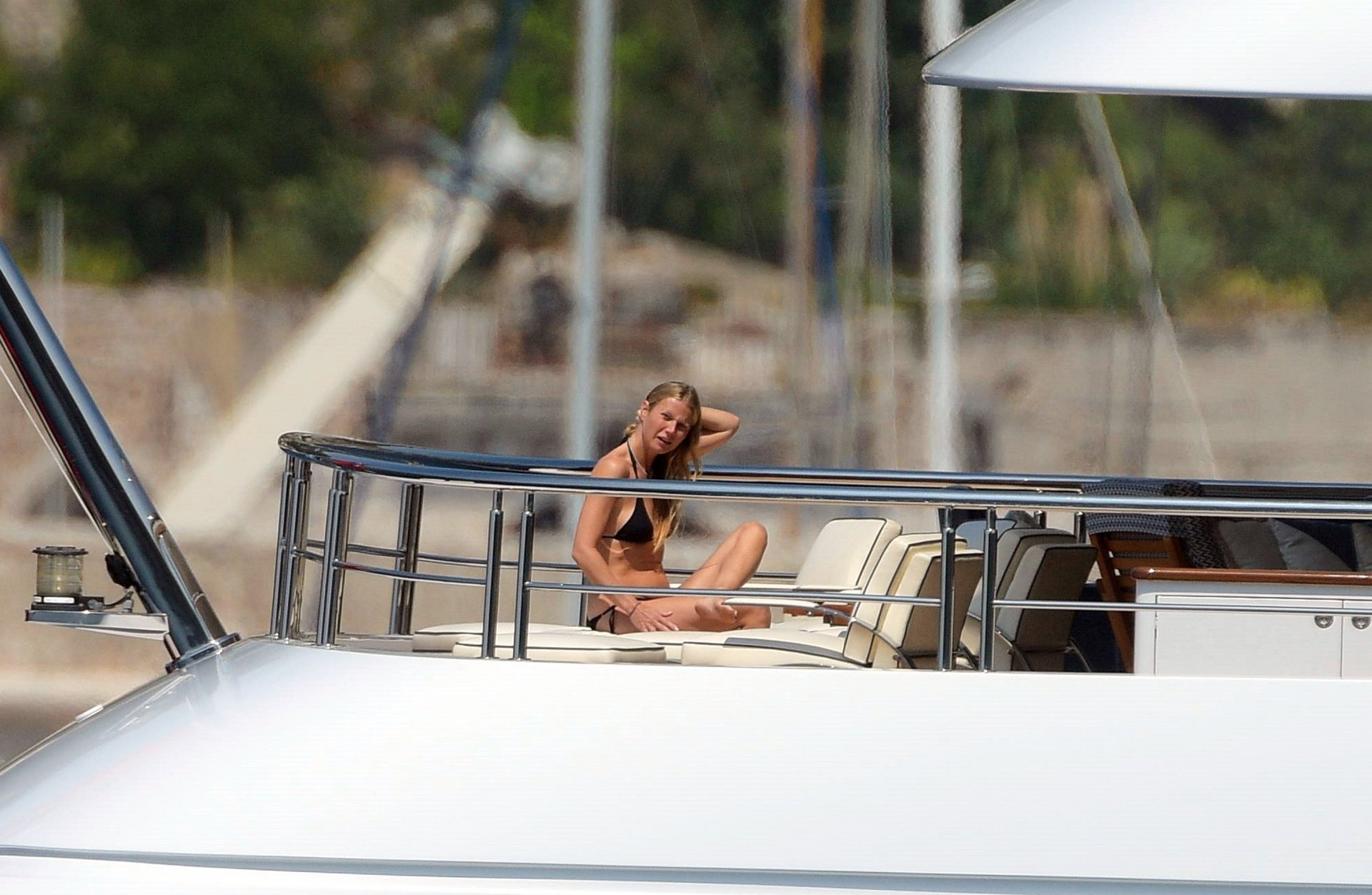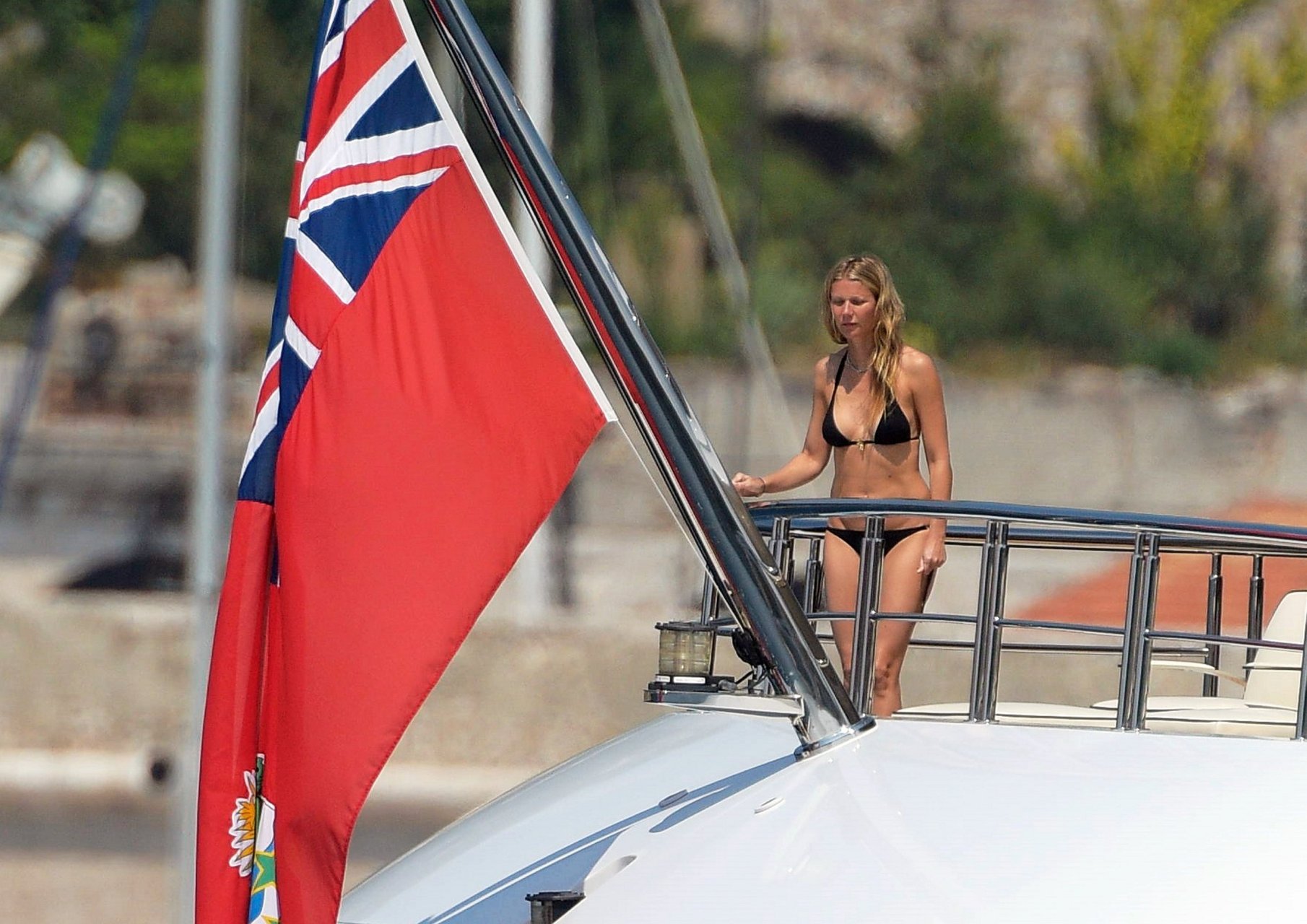 Gwyneth Paltrow muestra su cuerpo caliente en un diminuto bikini negro de vacaciones en Saint Tropez, 19/06/2017. Gwyneth Paltrow es una actriz estadounidense (Shakespeare in Love), cantante y escritora de gastronomía. Edad: 44 años (nacida el 27 de septiembre de 1972).