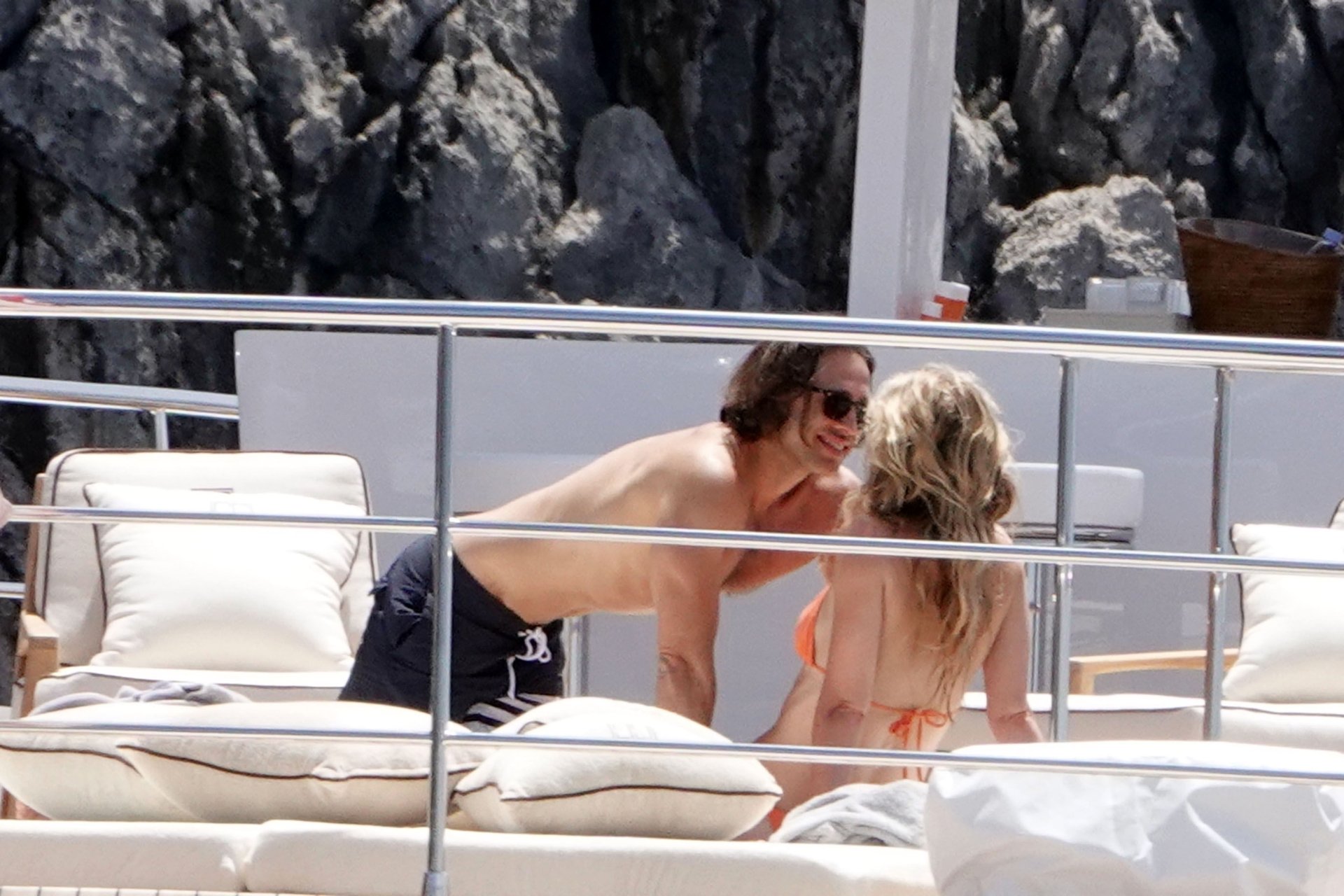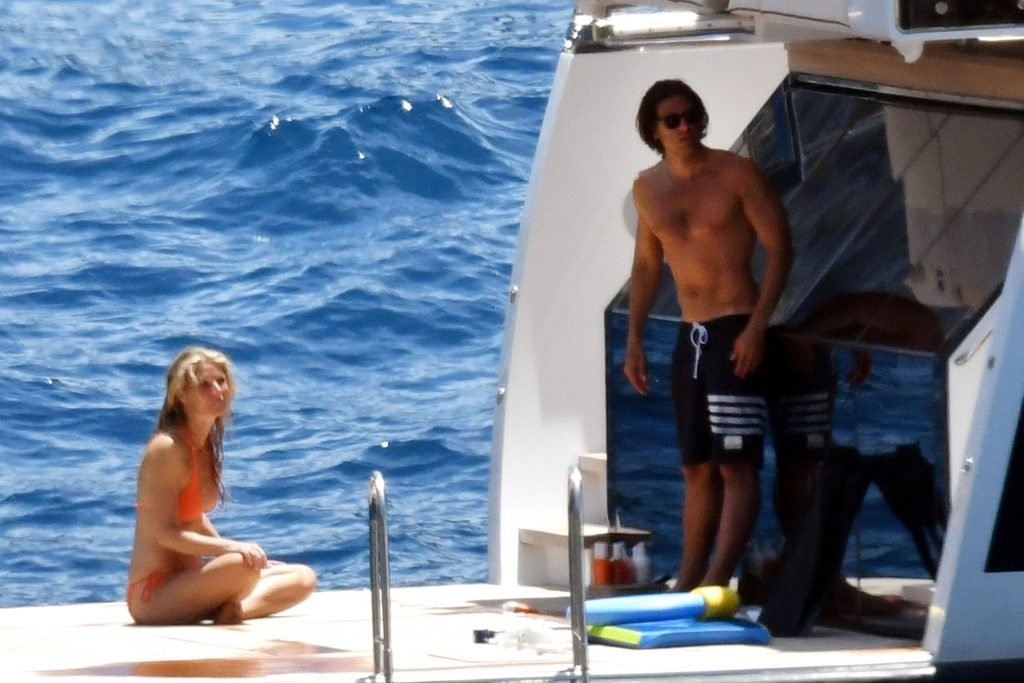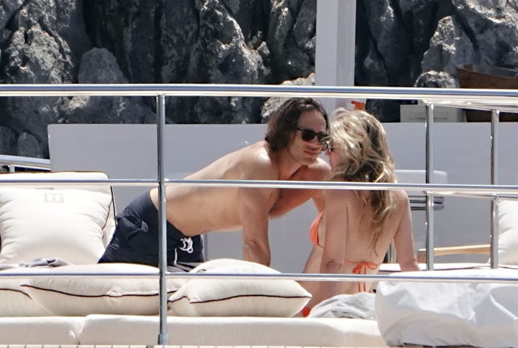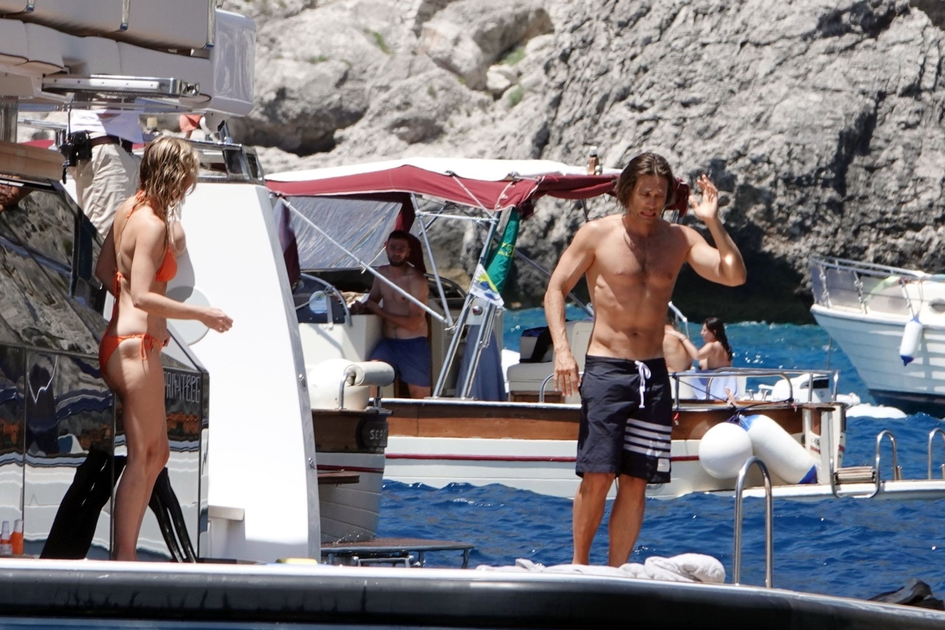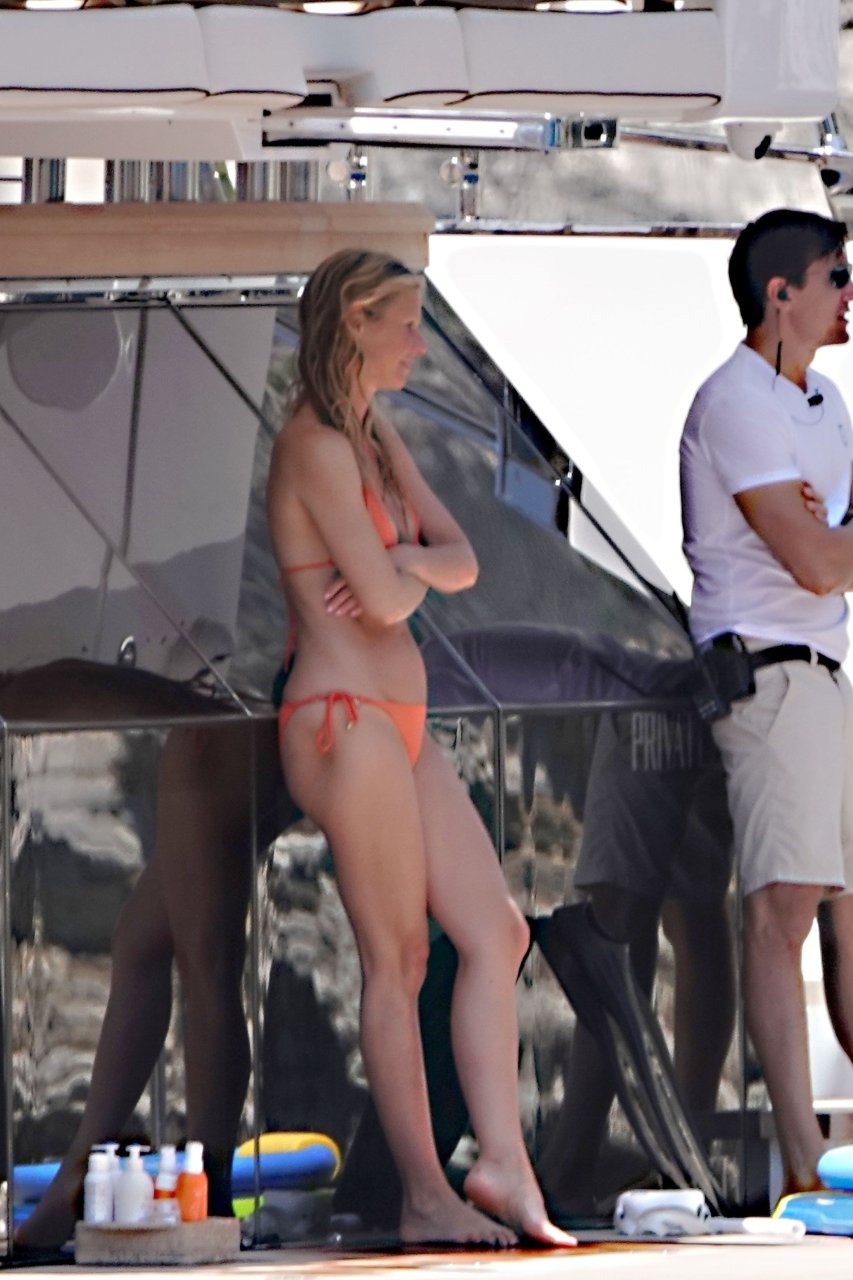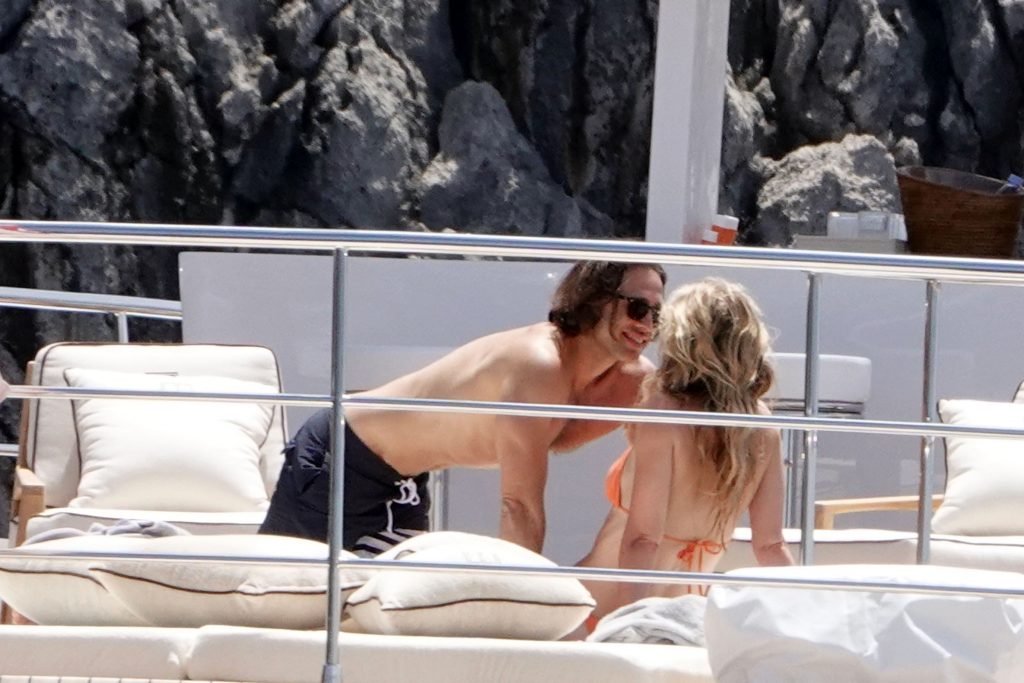 Actriz Gwyneth Paltrow, 45, fotografiada con su prometido Brad Falchuk, 47, de vacaciones en Capri, 24/06/2018. Gwyneth y Brad fueron captados disfrutando de sus vacaciones románticas y mostrando muestras de afecto en público mientras ella tomaba el sol en el barco. La pareja fue vista nadando desde la parte trasera del barco. Gwyneth lució su cuerpo tonificado y sexy con un bikini naranja brillante.
