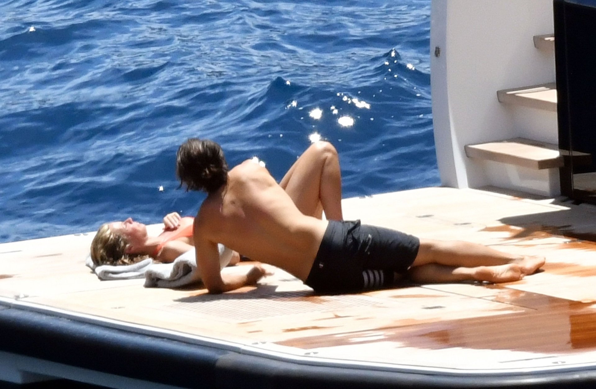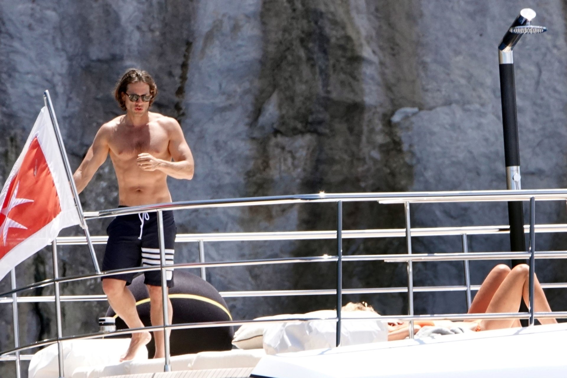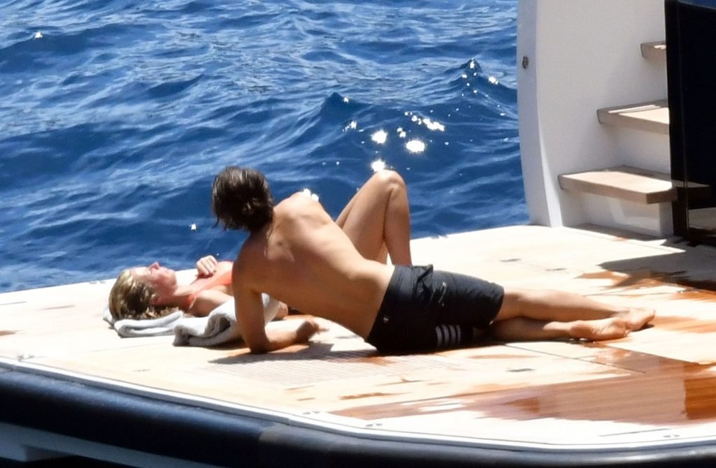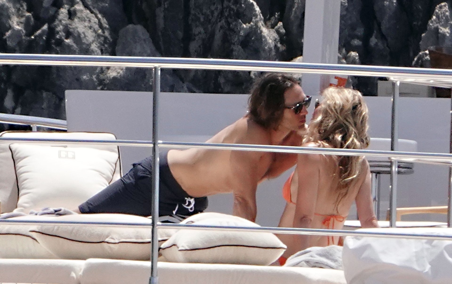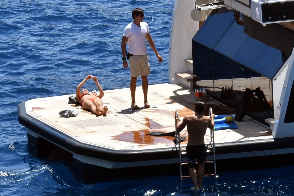 Actriz Gwyneth Paltrow, 45, fotografiada con su prometido Brad Falchuk, 47, de vacaciones en Capri, 24/06/2018. Gwyneth y Brad fueron captados disfrutando de sus vacaciones románticas y mostrando muestras de afecto en público mientras ella tomaba el sol en el barco. La pareja fue vista nadando desde la parte trasera del barco. Gwyneth lució su cuerpo tonificado y sexy con un bikini naranja brillante.