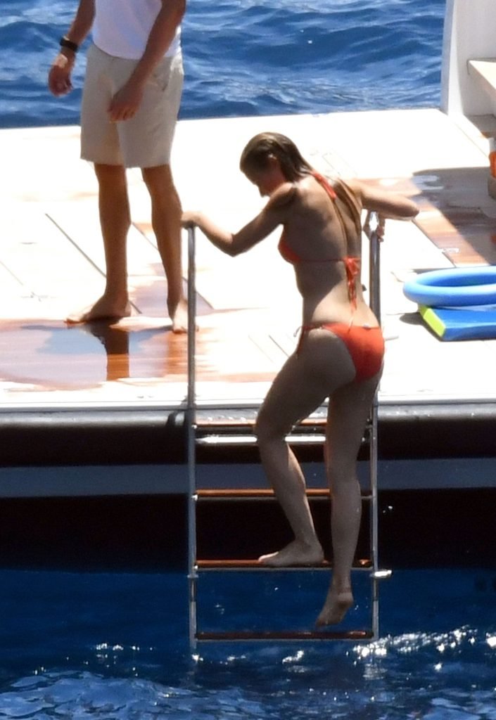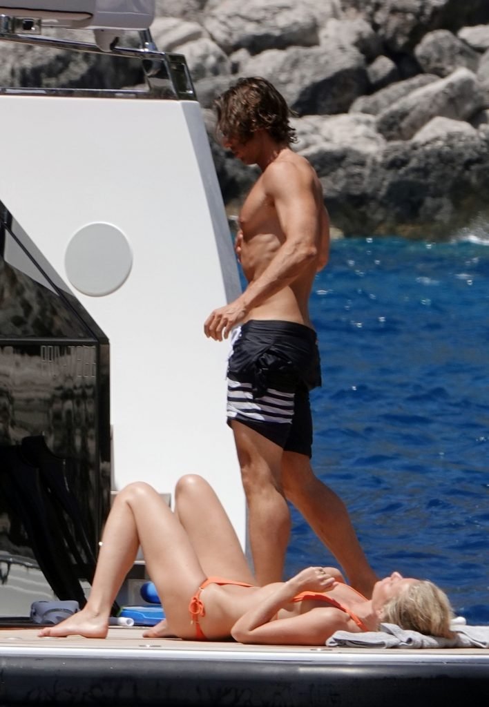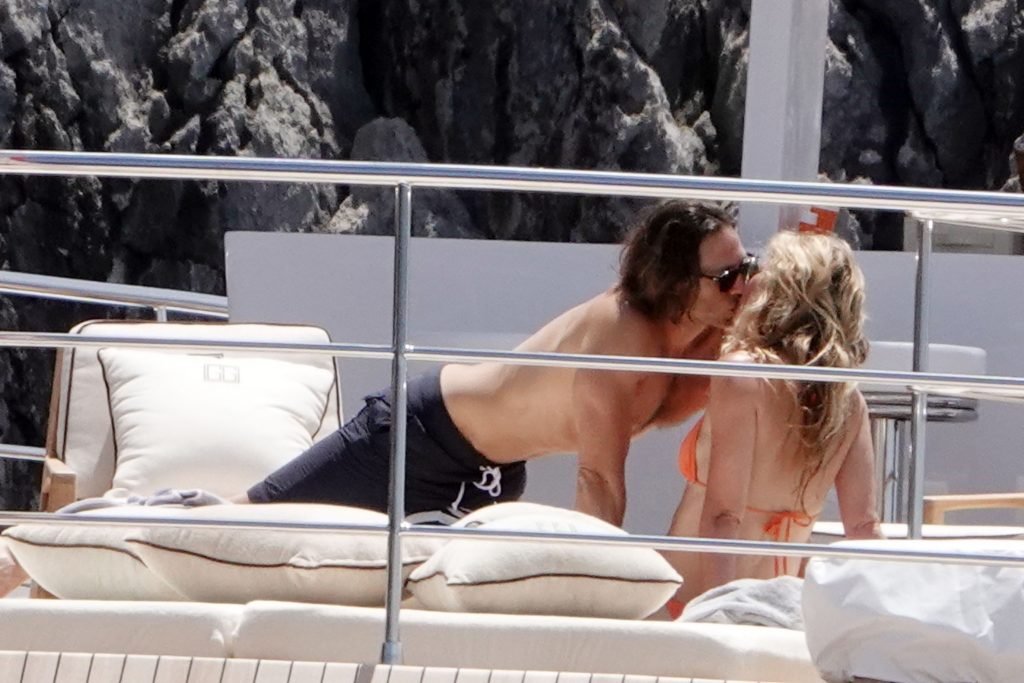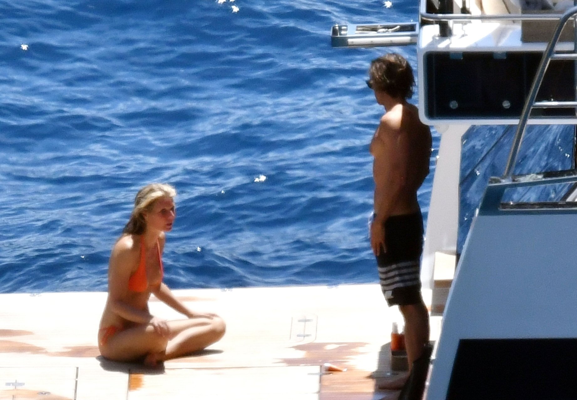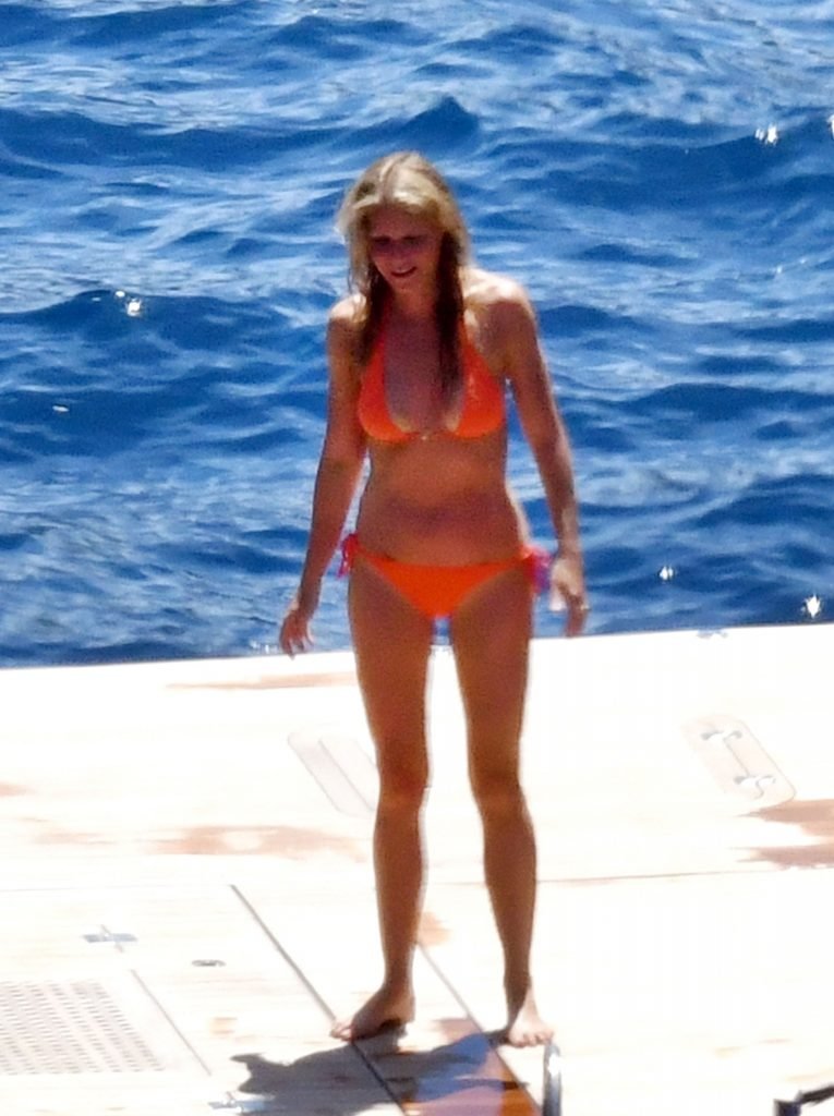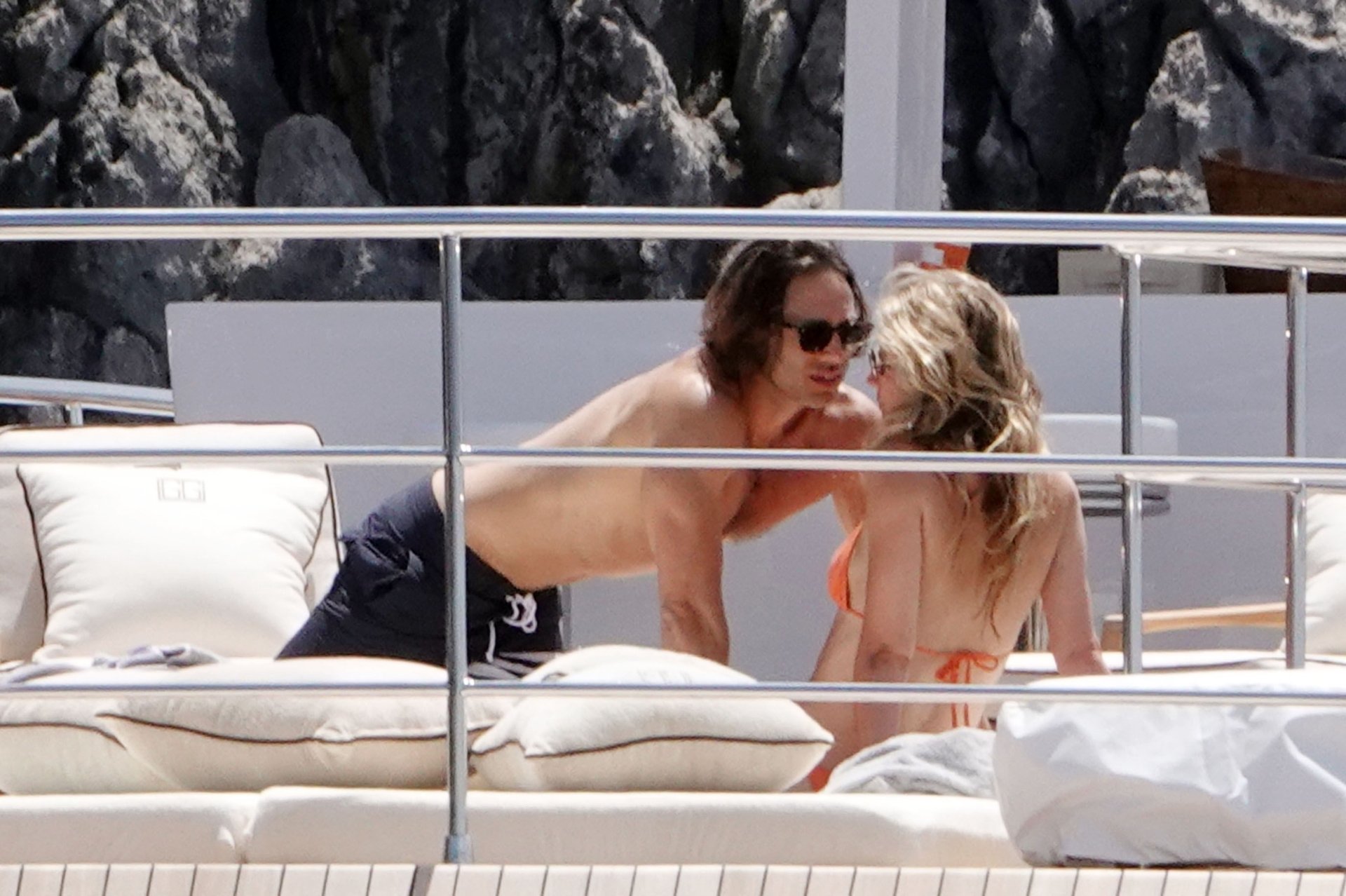 Actriz Gwyneth Paltrow, 45, fotografiada con su prometido Brad Falchuk, 47, de vacaciones en Capri, 24/06/2018. Gwyneth y Brad fueron captados disfrutando de sus vacaciones románticas y mostrando muestras de afecto en público mientras ella tomaba el sol en el barco. La pareja fue vista nadando desde la parte trasera del barco. Gwyneth lució su cuerpo tonificado y sexy con un bikini naranja brillante.