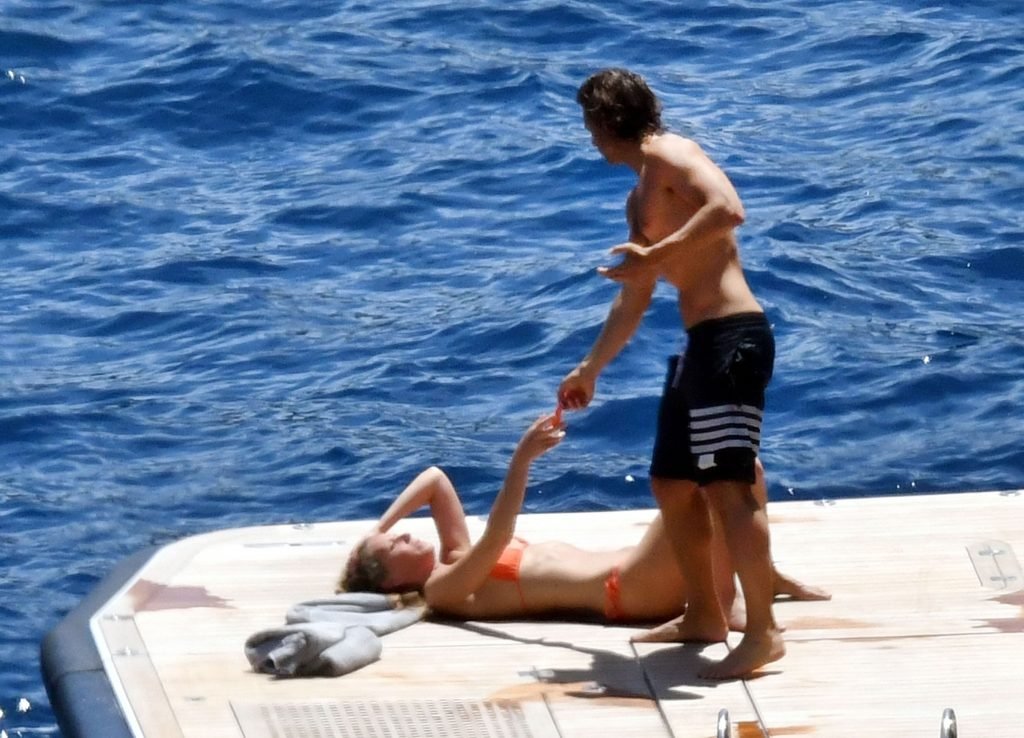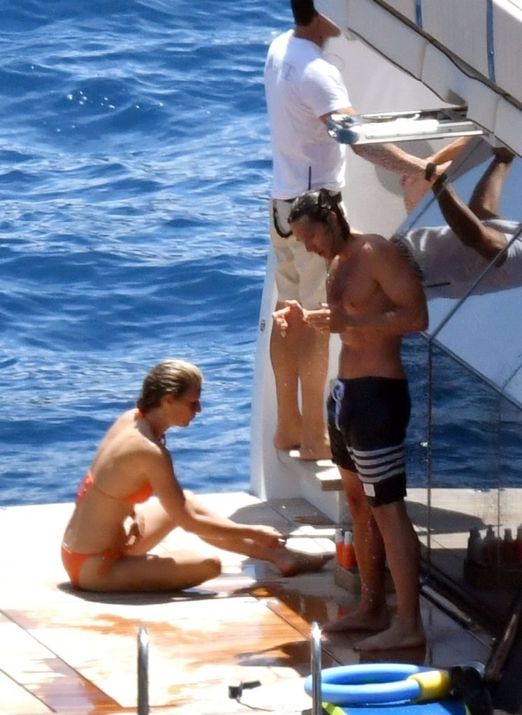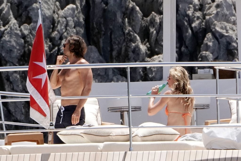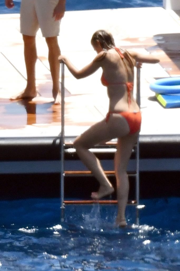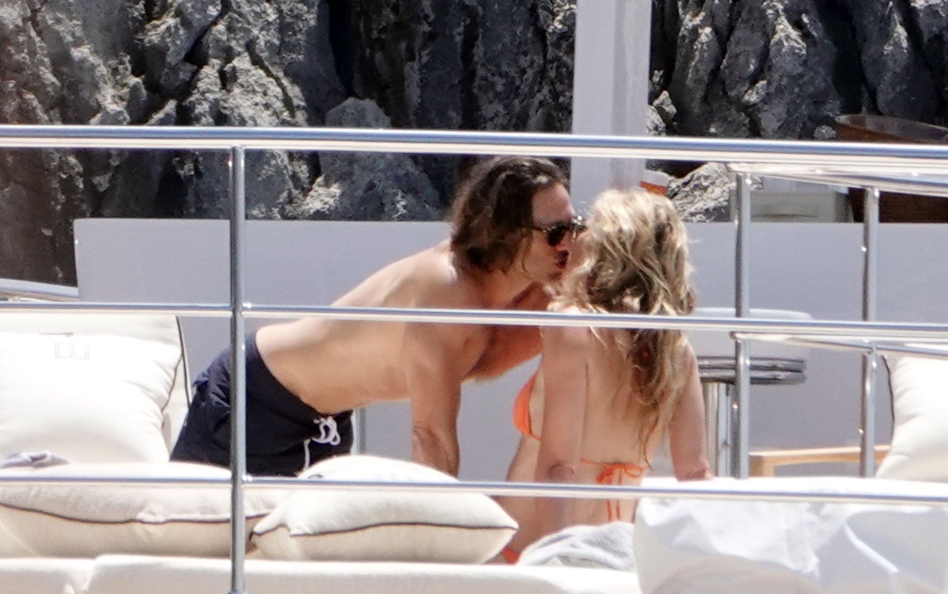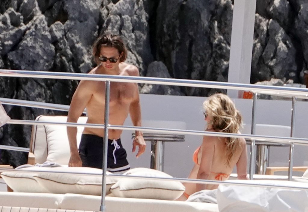 Actriz Gwyneth Paltrow, 45, fotografiada con su prometido Brad Falchuk, 47, de vacaciones en Capri, 24/06/2018. Gwyneth y Brad fueron captados disfrutando de sus vacaciones románticas y mostrando muestras de afecto en público mientras ella tomaba el sol en el barco. La pareja fue vista nadando desde la parte trasera del barco. Gwyneth lució su cuerpo tonificado y sexy con un bikini naranja brillante.