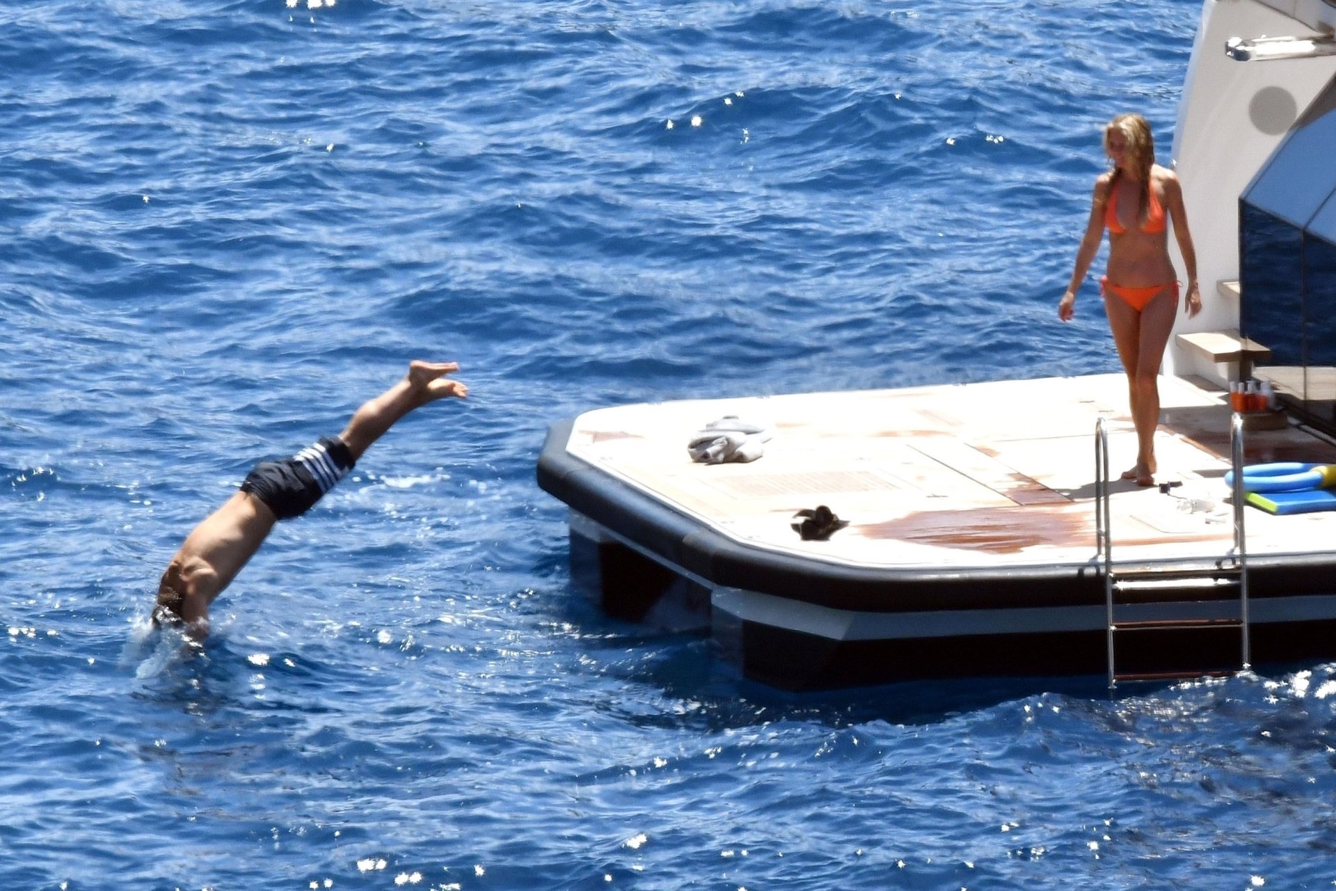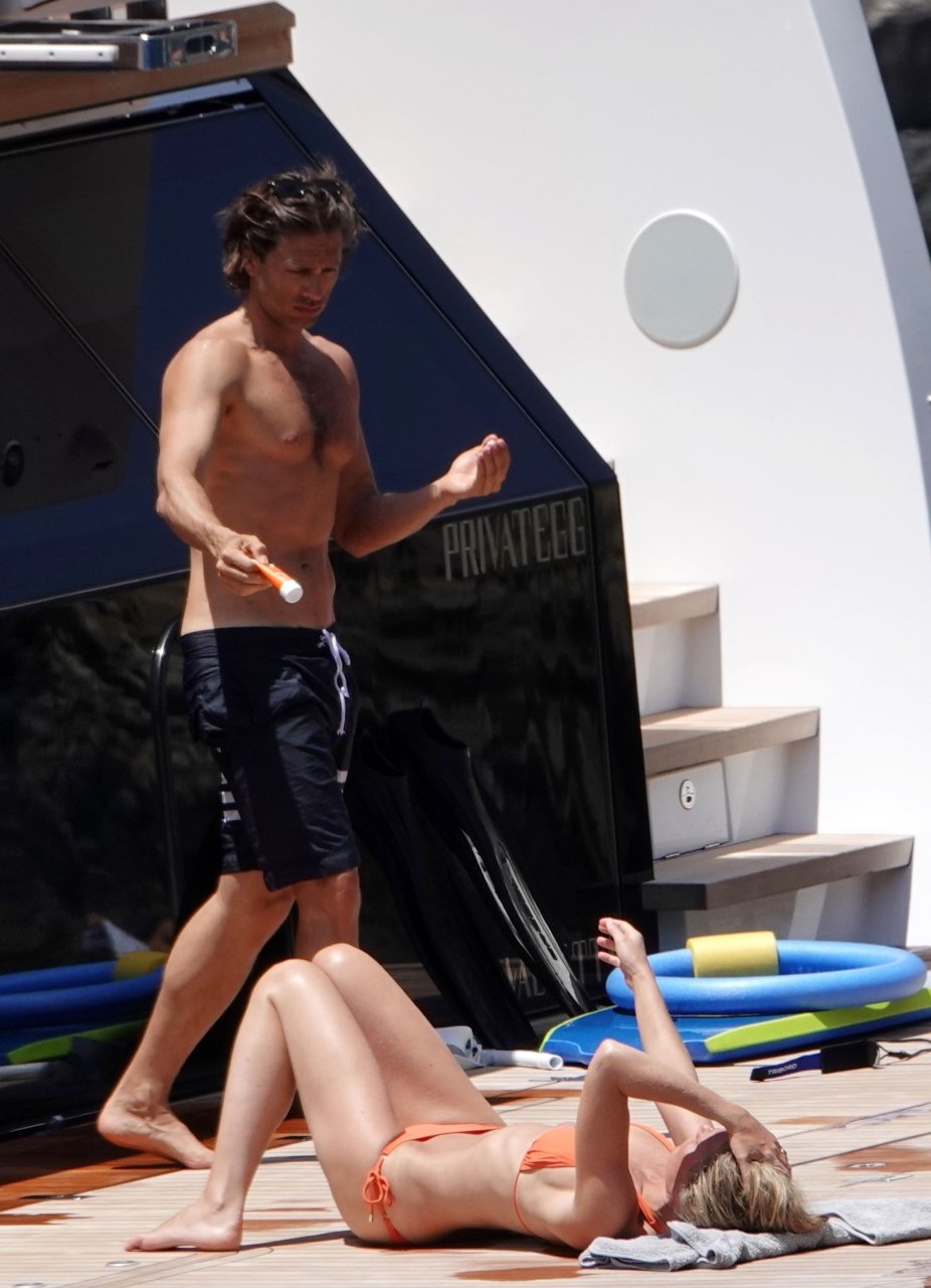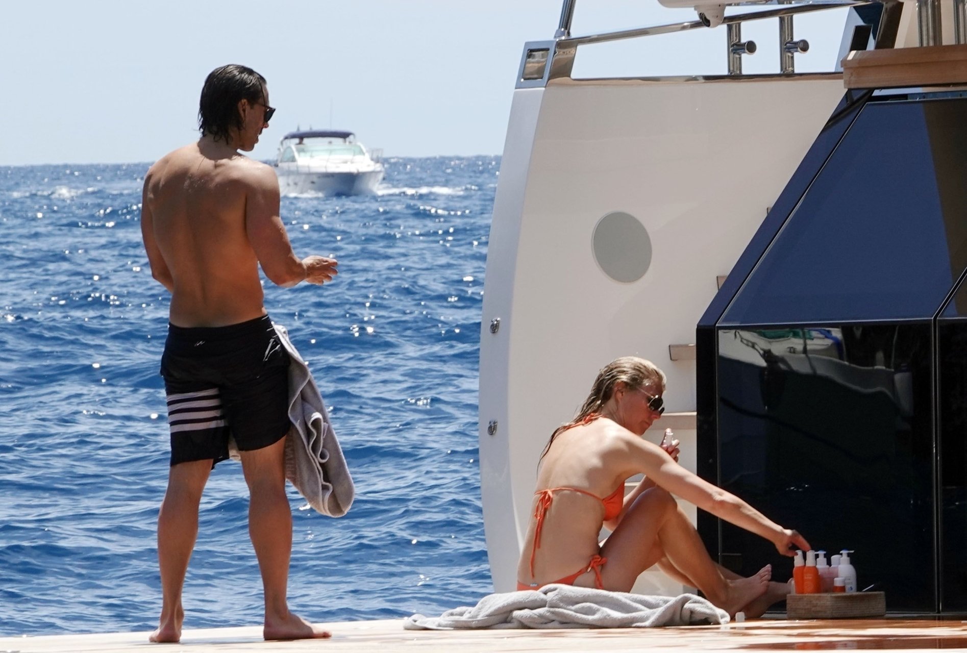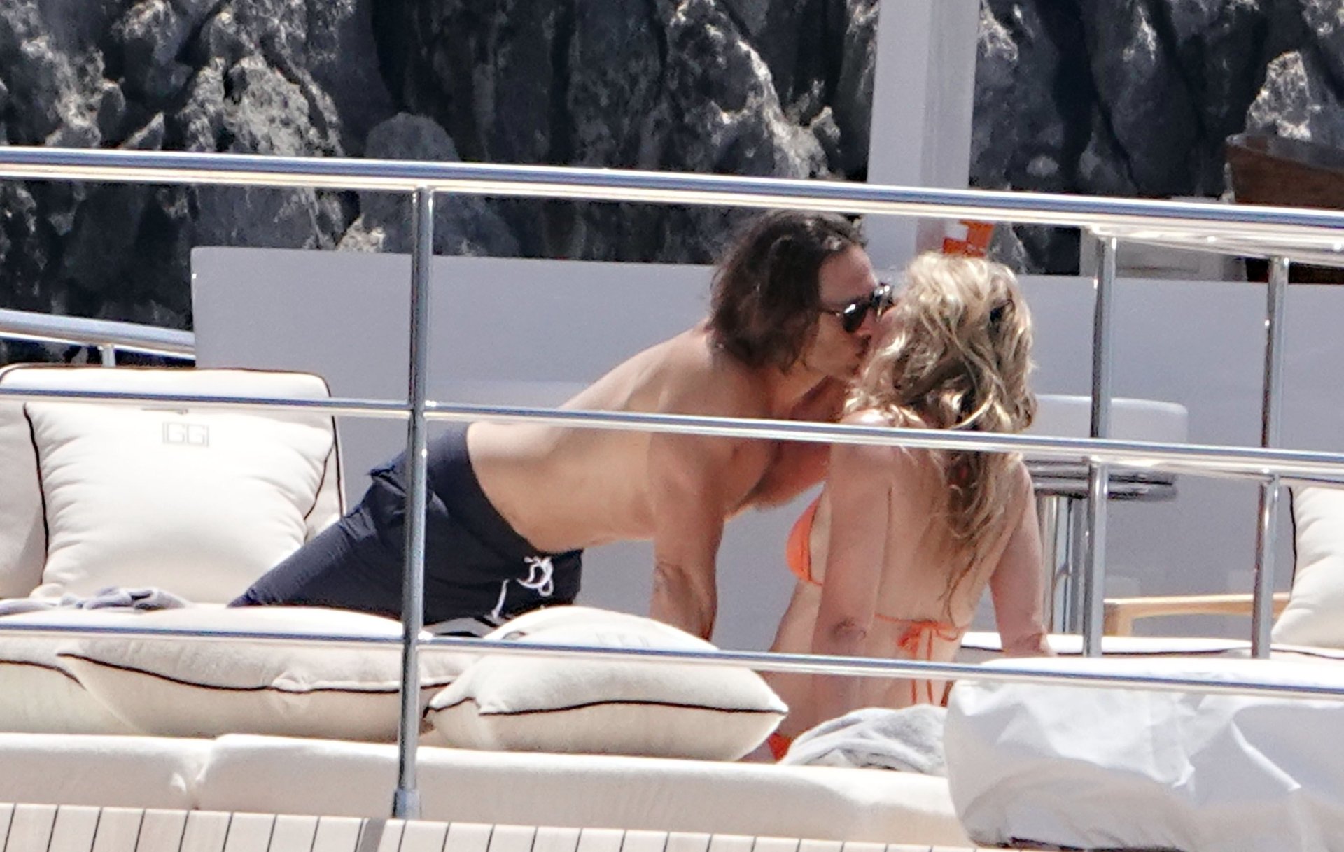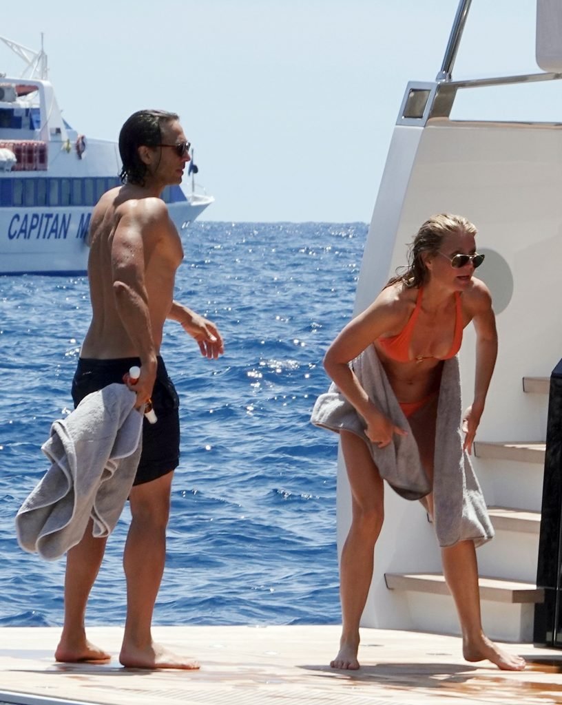 Actriz Gwyneth Paltrow, 45, fotografiada con su prometido Brad Falchuk, 47, de vacaciones en Capri, 24/06/2018. Gwyneth y Brad fueron captados disfrutando de sus vacaciones románticas y mostrando muestras de afecto en público mientras ella tomaba el sol en el barco. La pareja fue vista nadando desde la parte trasera del barco. Gwyneth lució su cuerpo tonificado y sexy con un bikini naranja brillante.