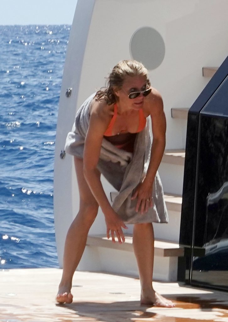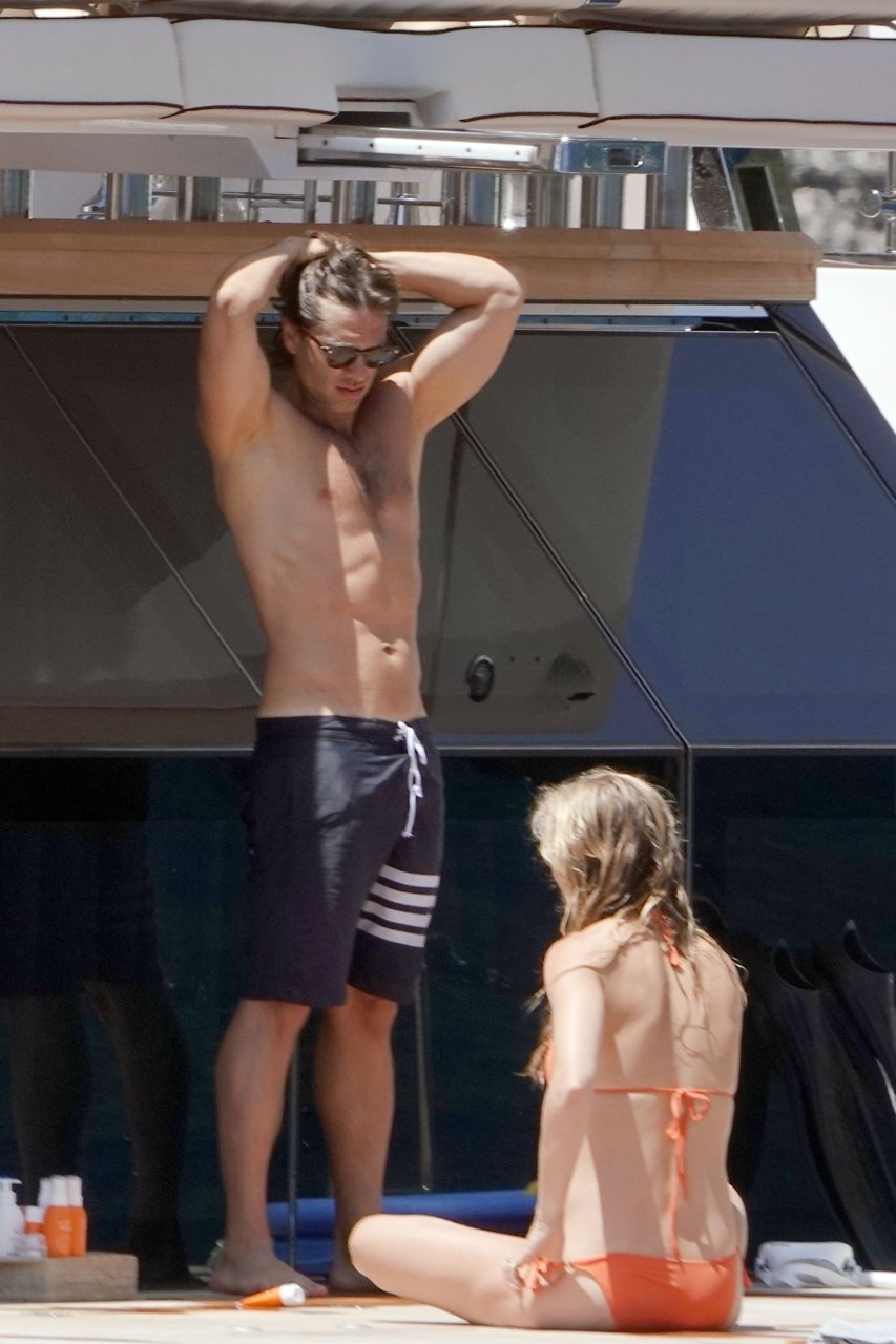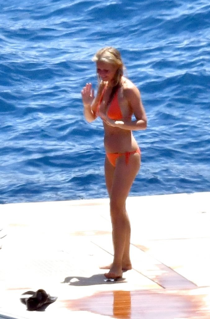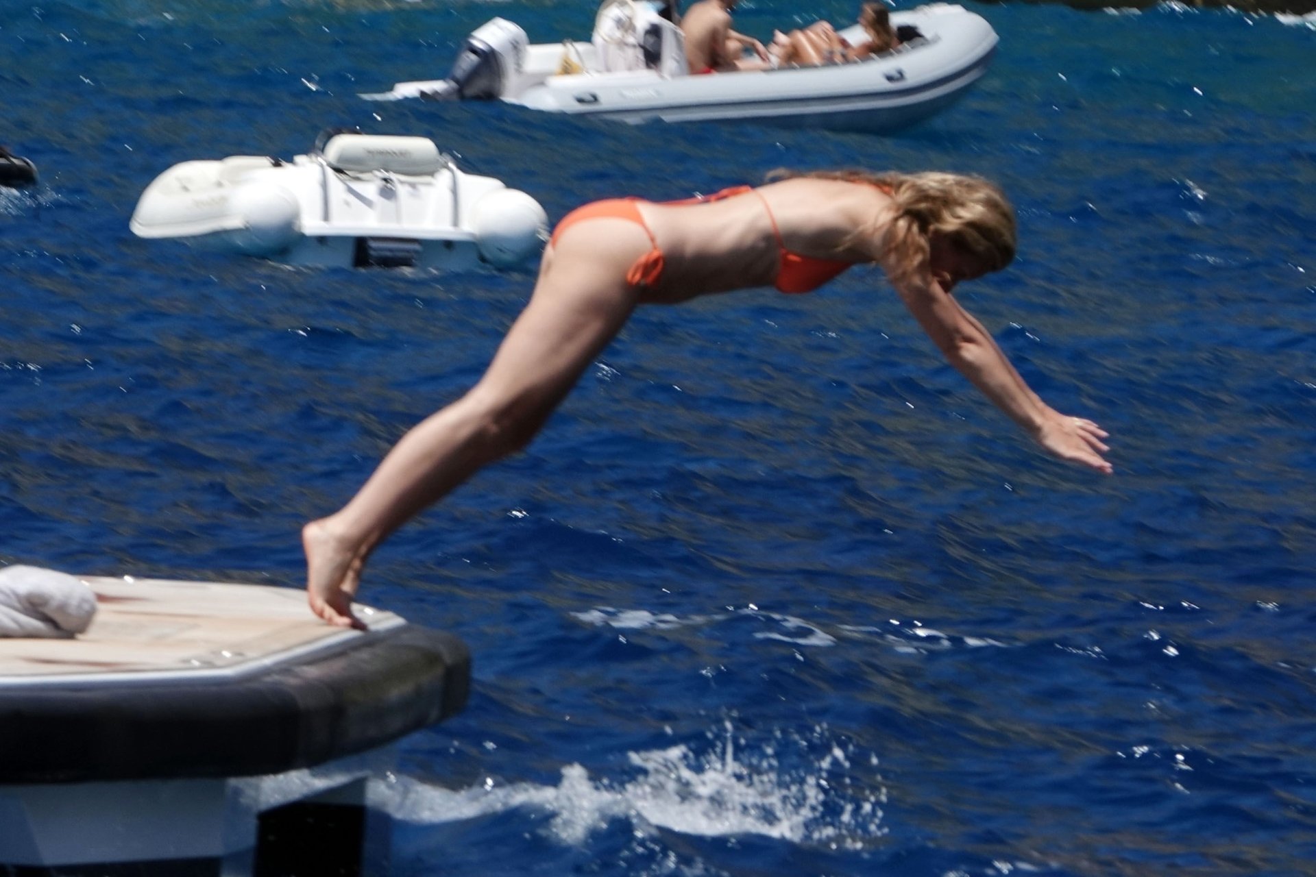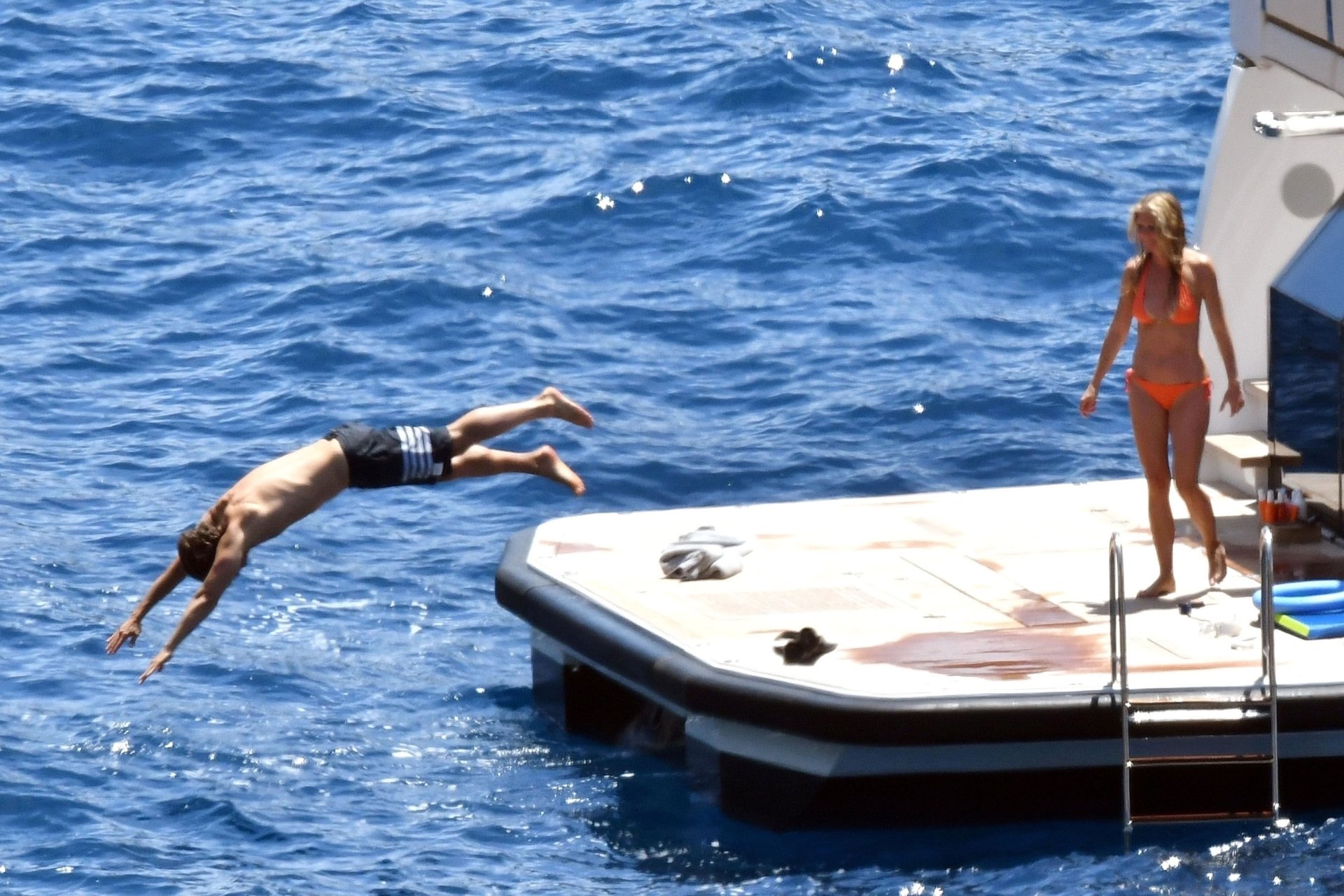 Actriz Gwyneth Paltrow, 45, fotografiada con su prometido Brad Falchuk, 47, de vacaciones en Capri, 24/06/2018. Gwyneth y Brad fueron captados disfrutando de sus vacaciones románticas y mostrando muestras de afecto en público mientras ella tomaba el sol en el barco. La pareja fue vista nadando desde la parte trasera del barco. Gwyneth lució su cuerpo tonificado y sexy con un bikini naranja brillante.