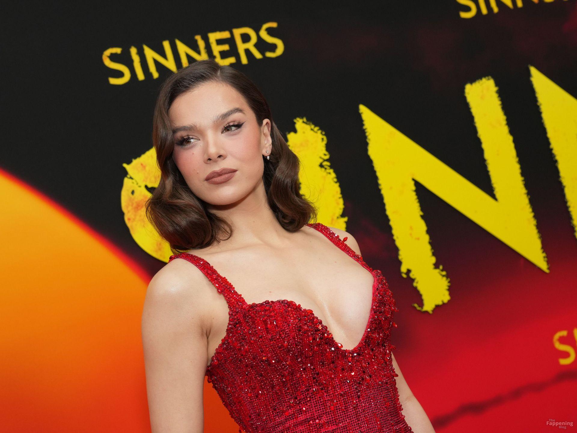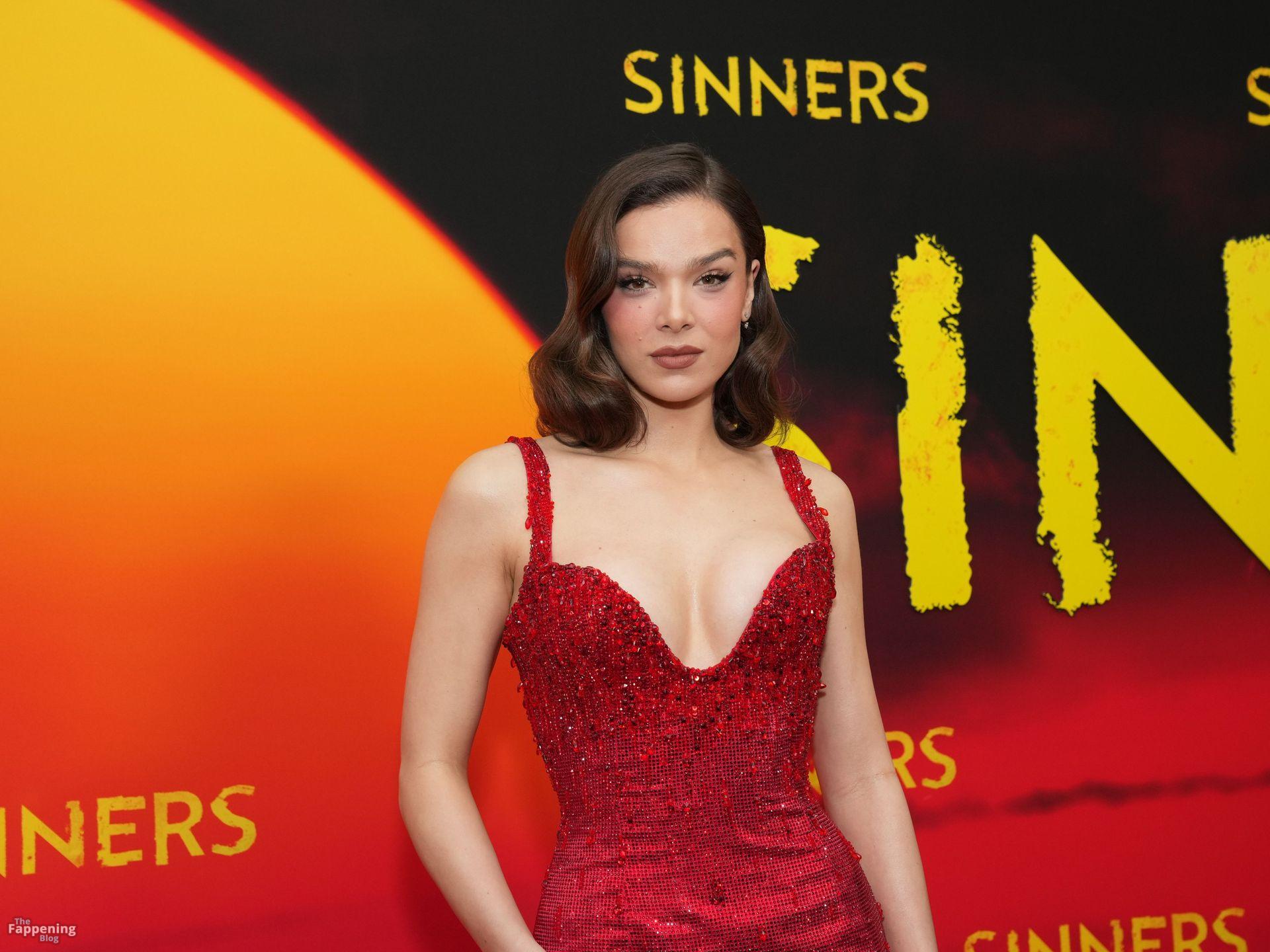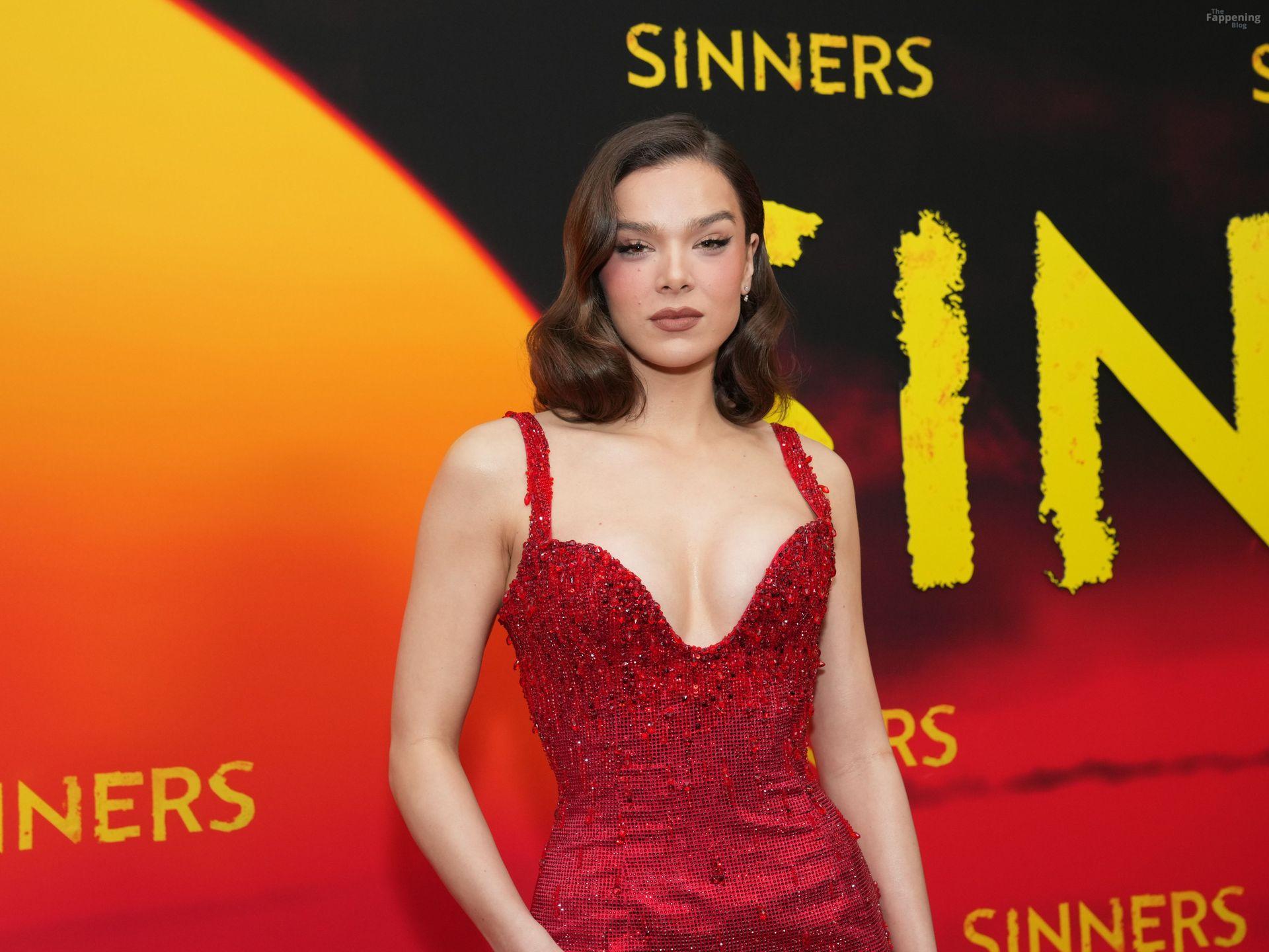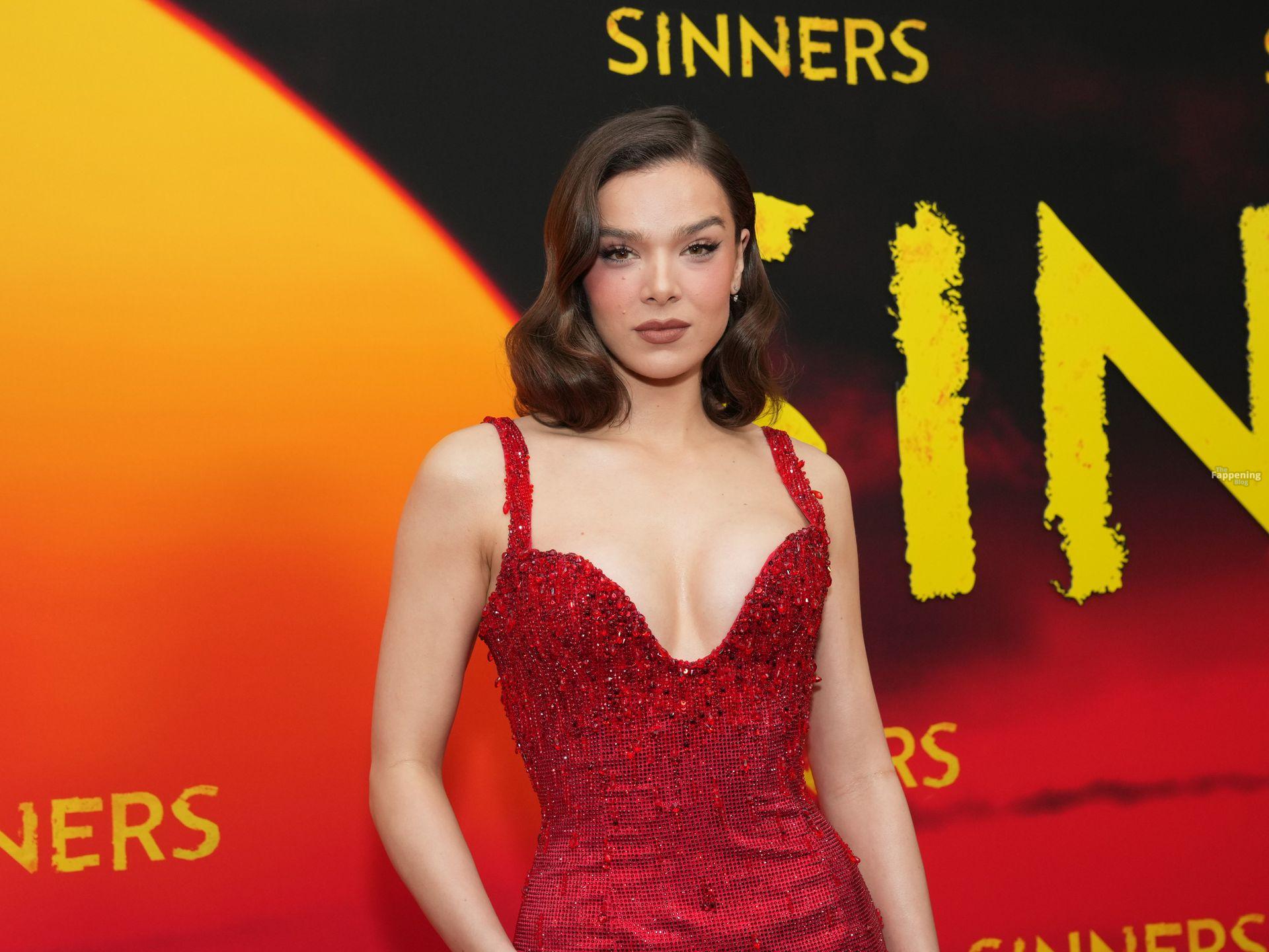 La actriz Hailee Steinfeld luce su escote y su hermosa figura con un vestido rojo en el estreno de “Sinners” en Nueva York.