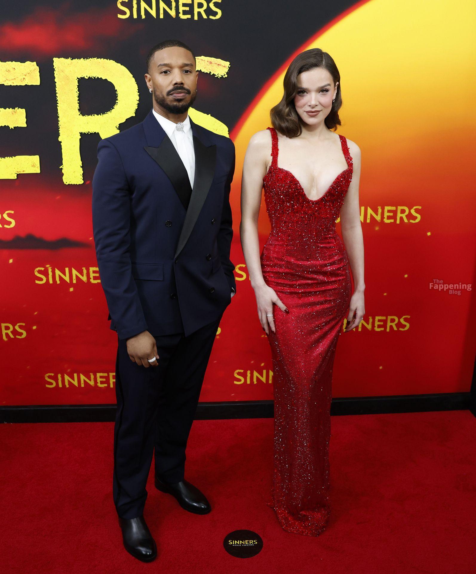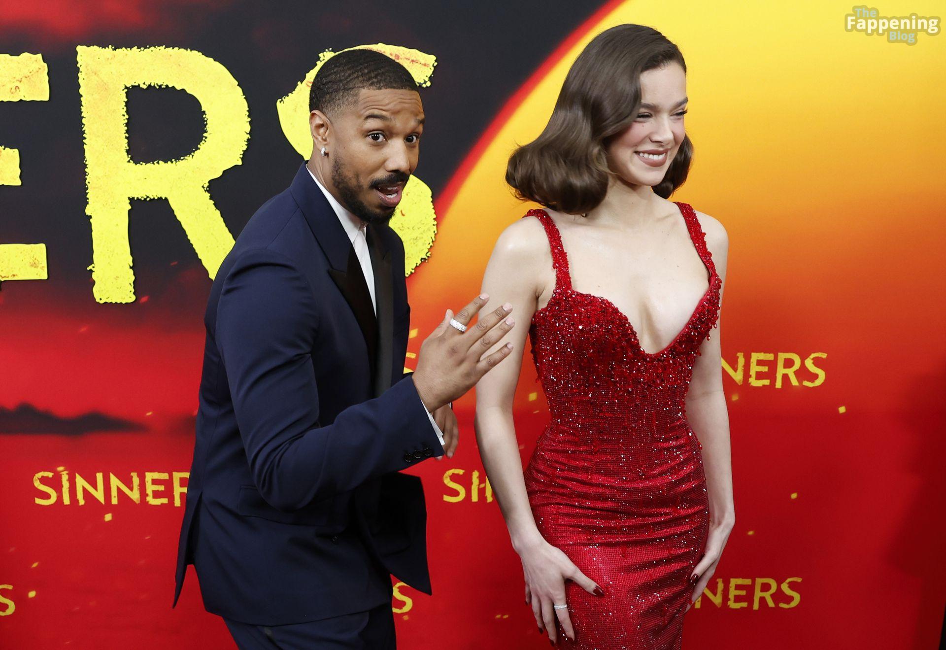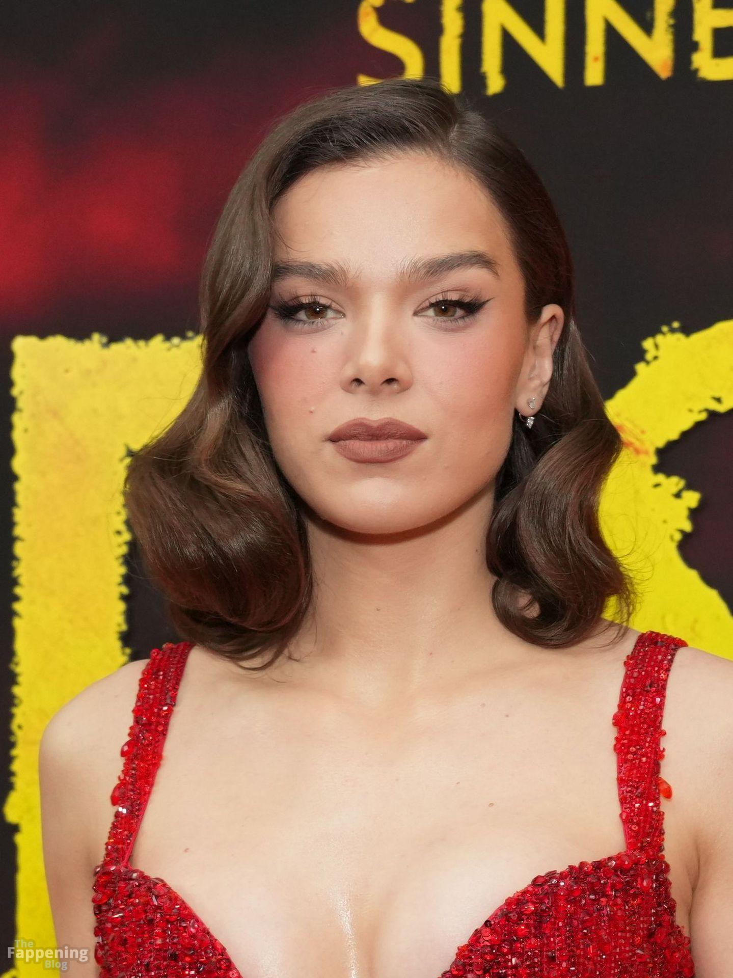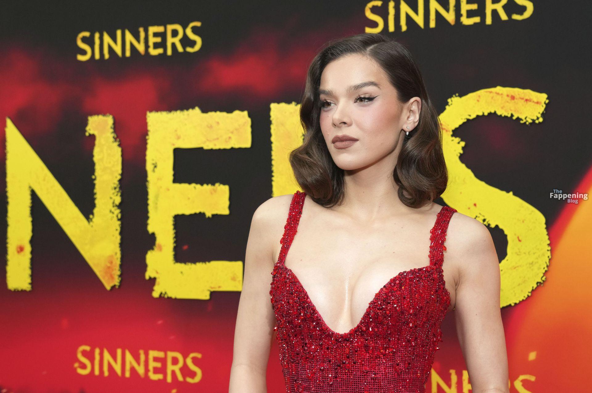 La actriz Hailee Steinfeld luce su escote y su hermosa figura con un vestido rojo en el estreno de “Sinners” en Nueva York.