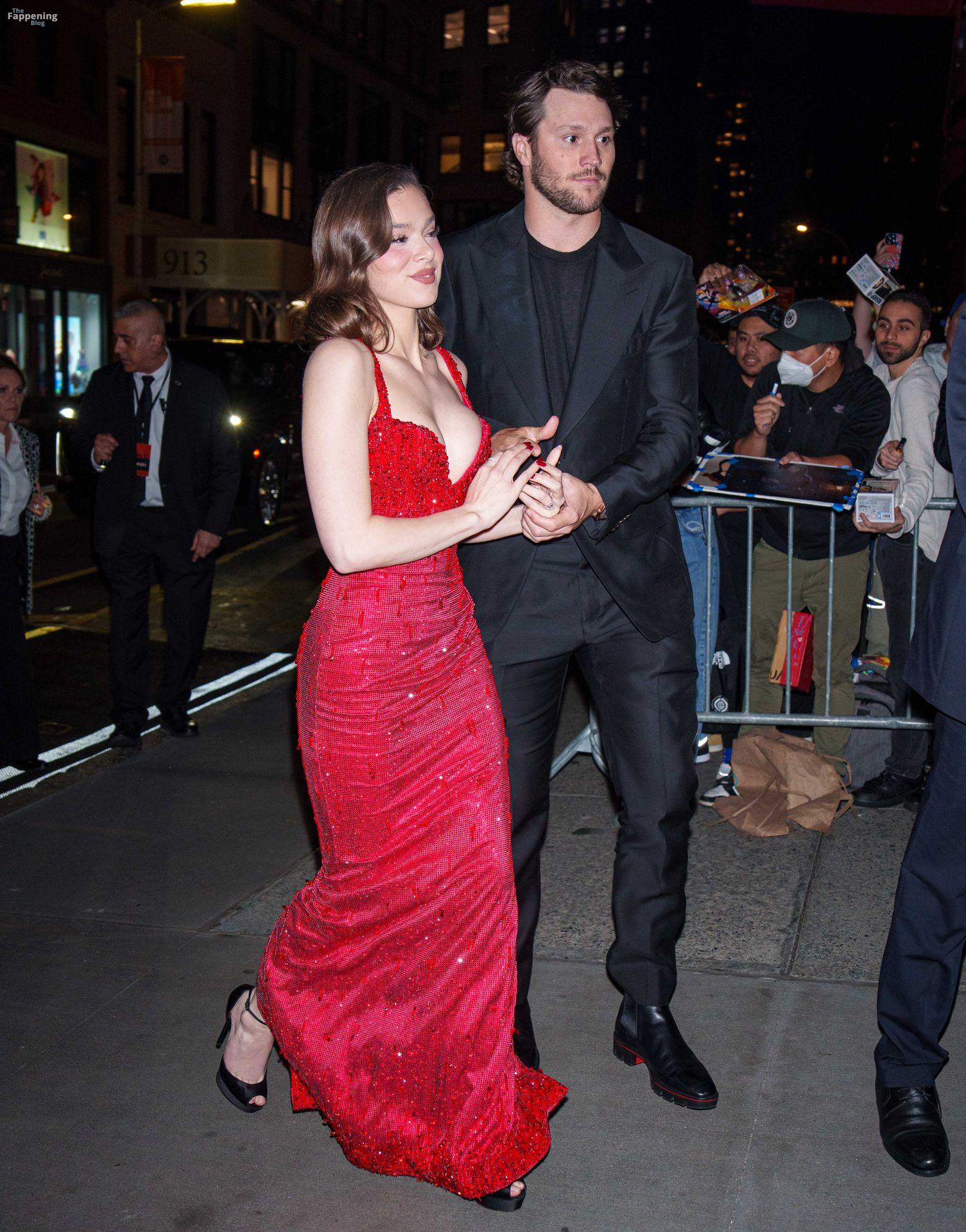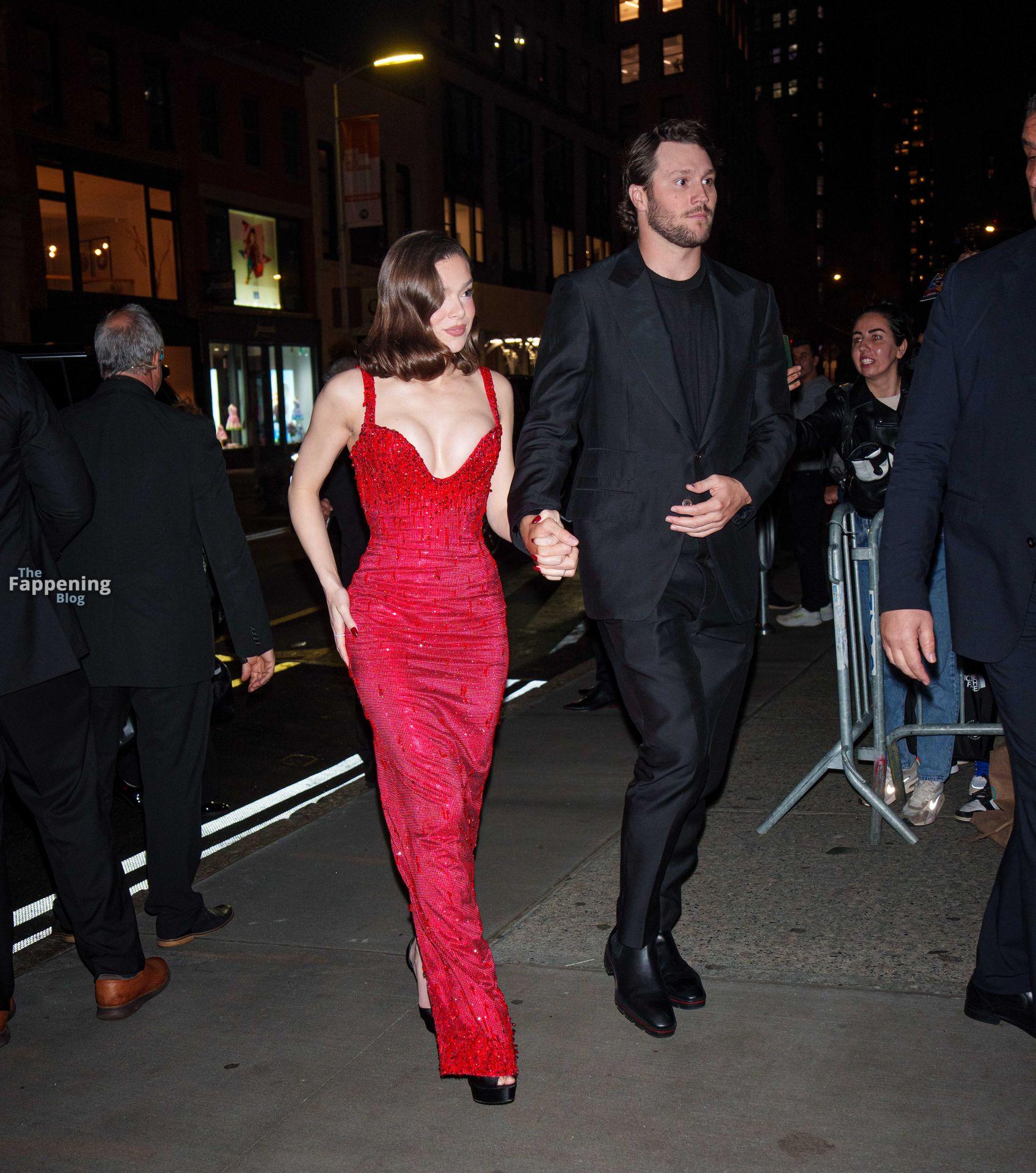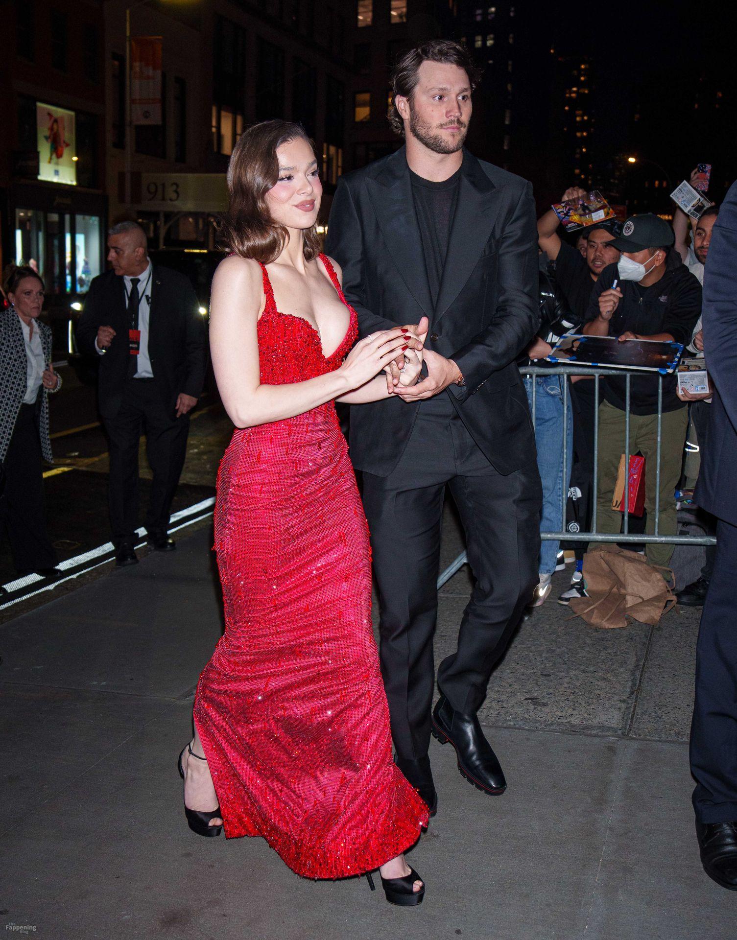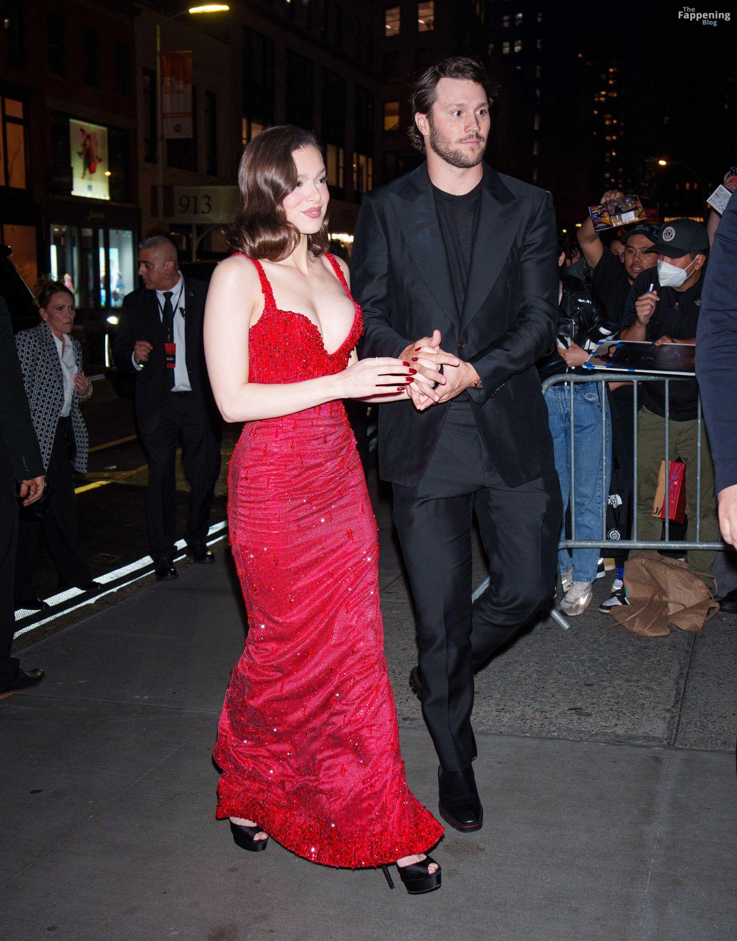 La actriz Hailee Steinfeld luce su escote y su hermosa figura con un vestido rojo en el estreno de “Sinners” en Nueva York.