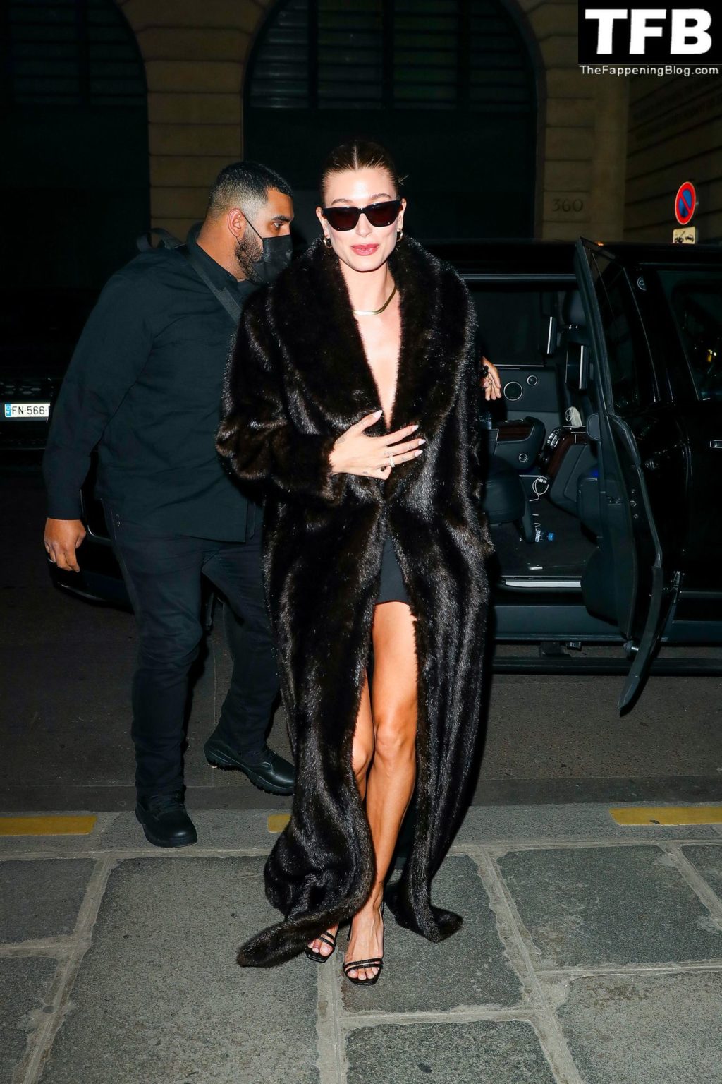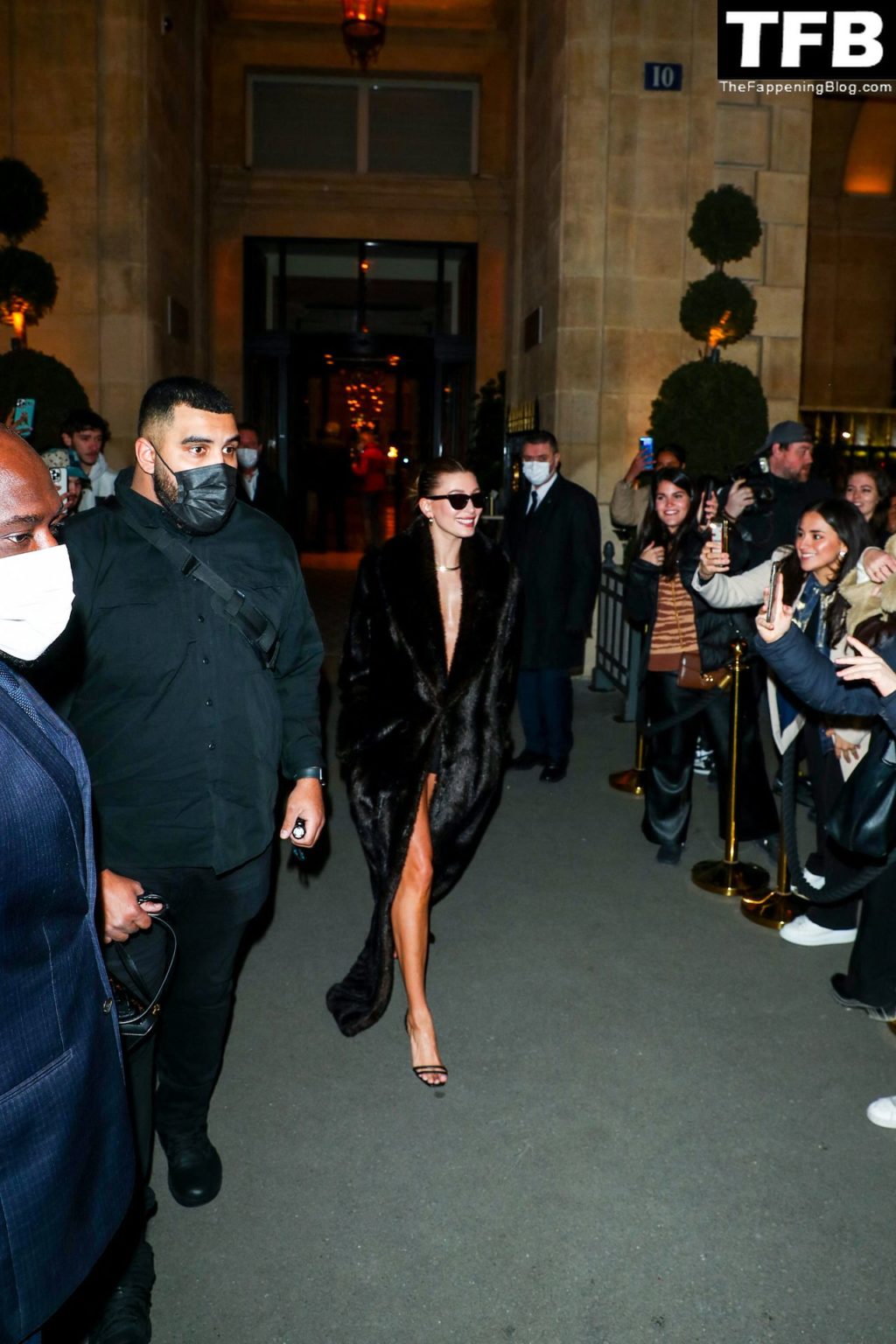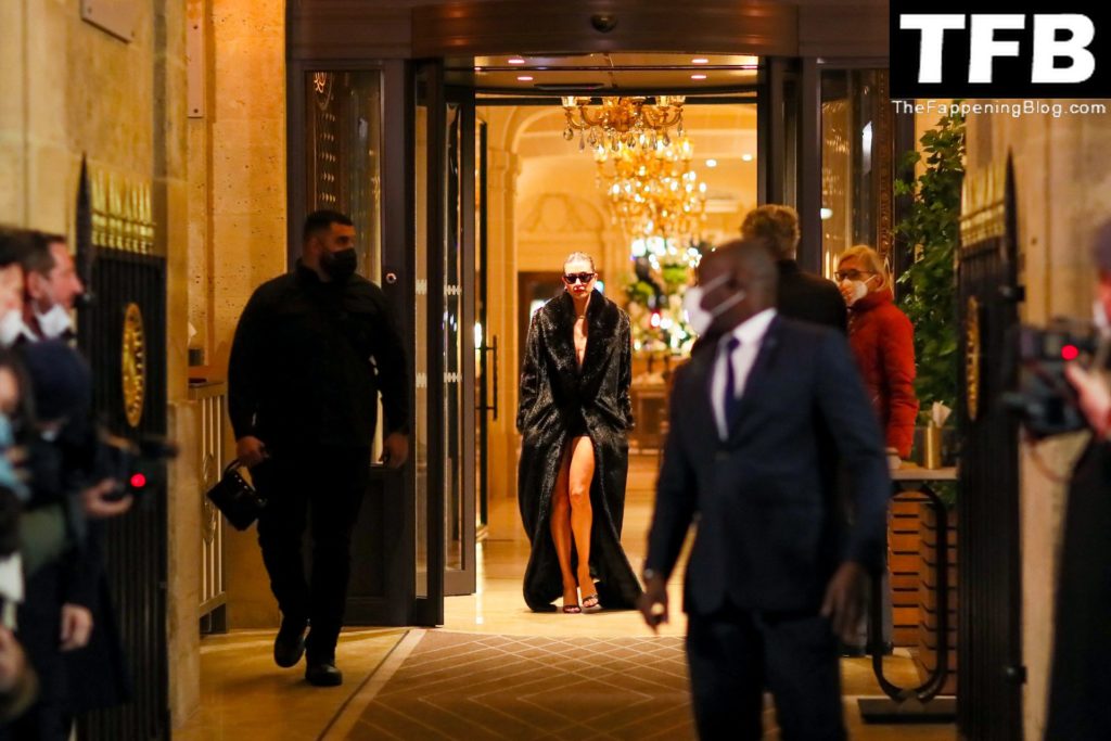 Modelo Hailey Bieber Baldwin sale del Hotel de Crillon y llega al restaurante Le Costes durante la Semana de la Moda de París en París, Francia, 03/04/2022.