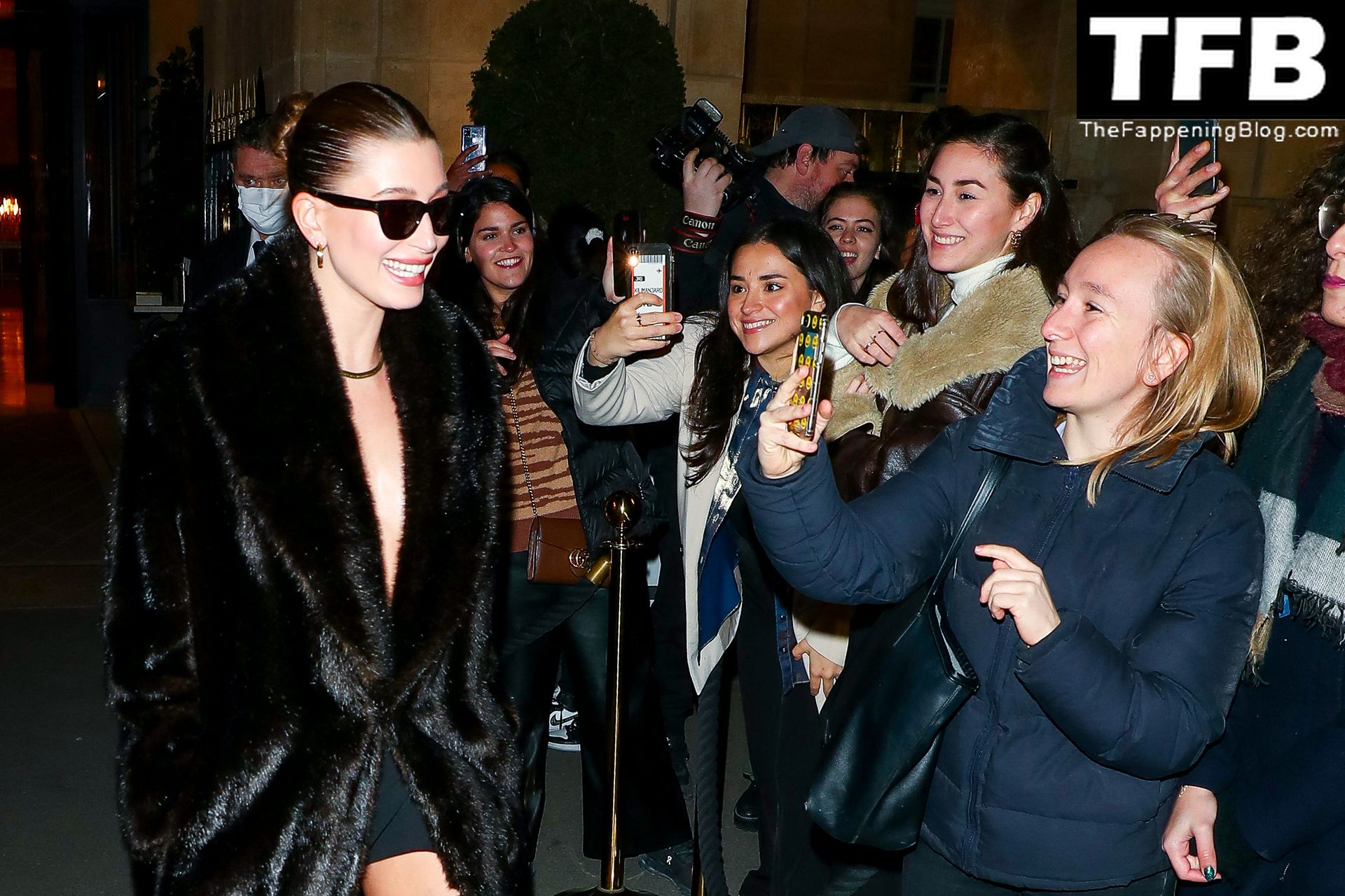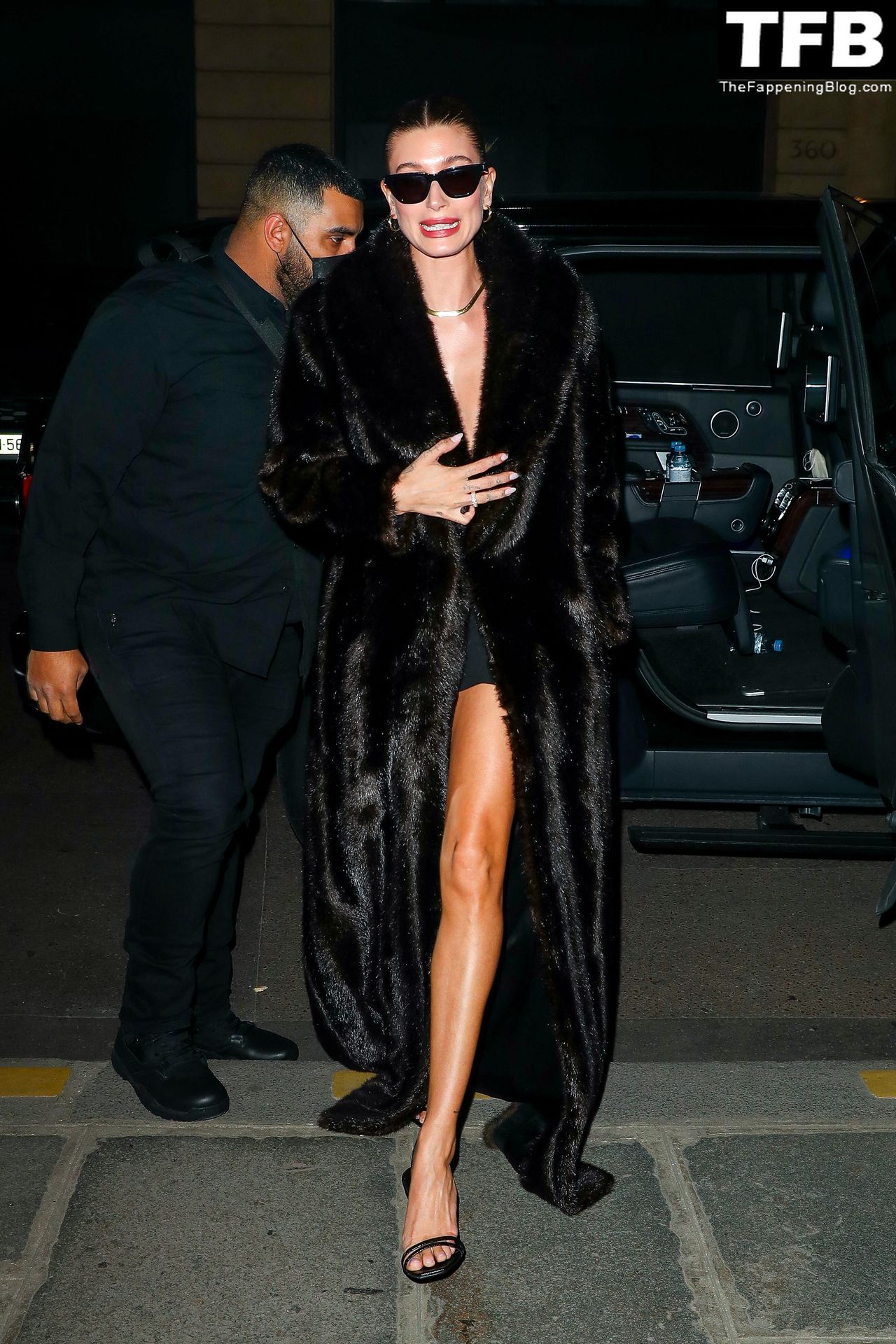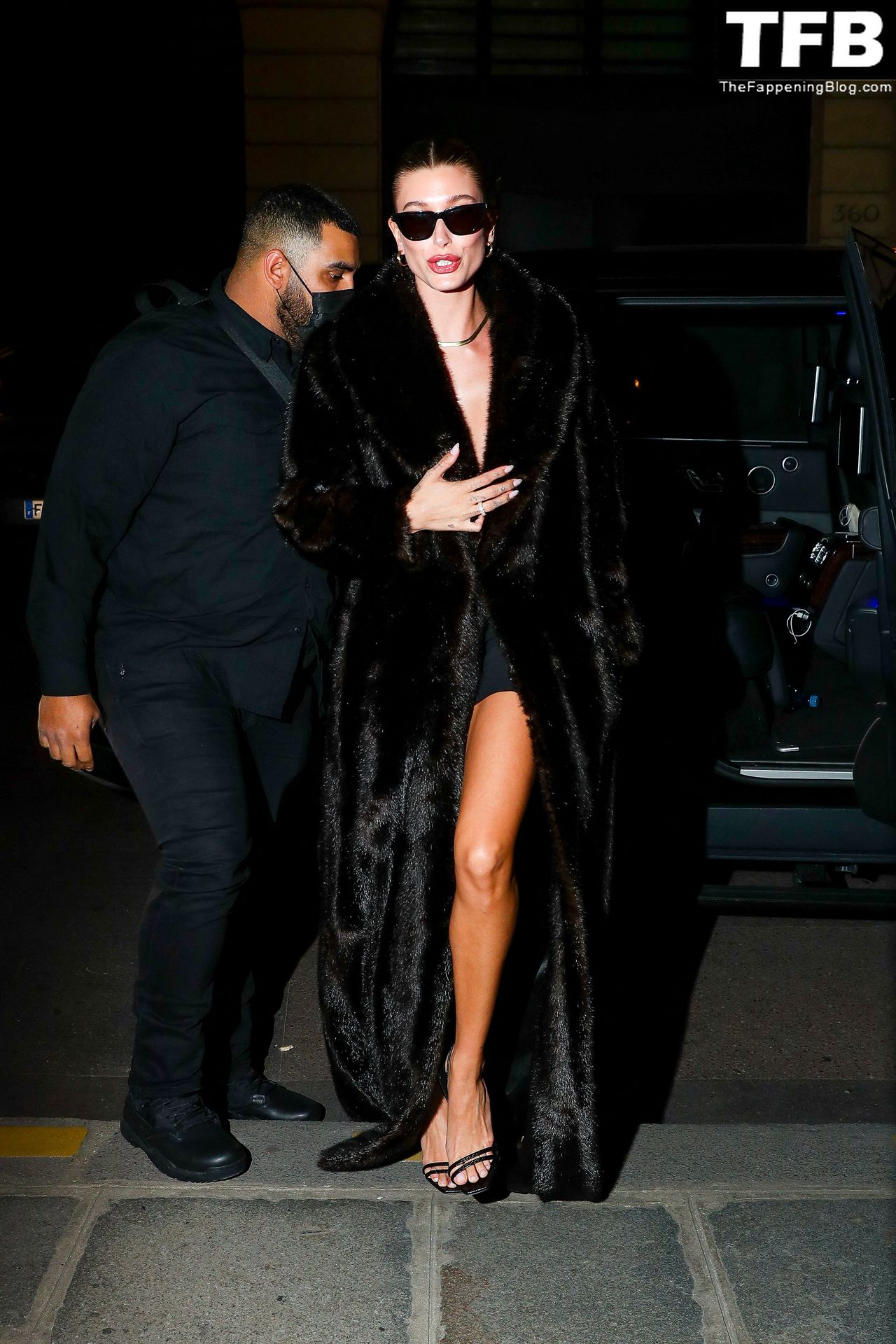 Modelo Hailey Bieber Baldwin sale del Hotel de Crillon y llega al restaurante Le Costes durante la Semana de la Moda de París en París, Francia, 03/04/2022.