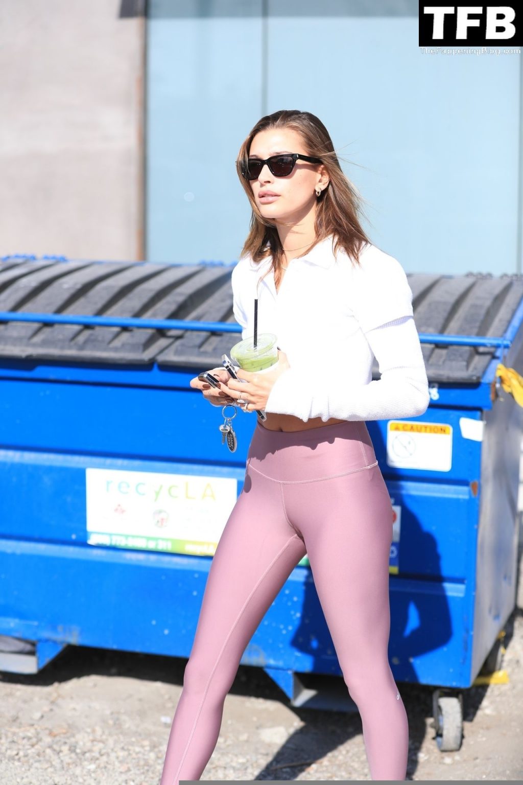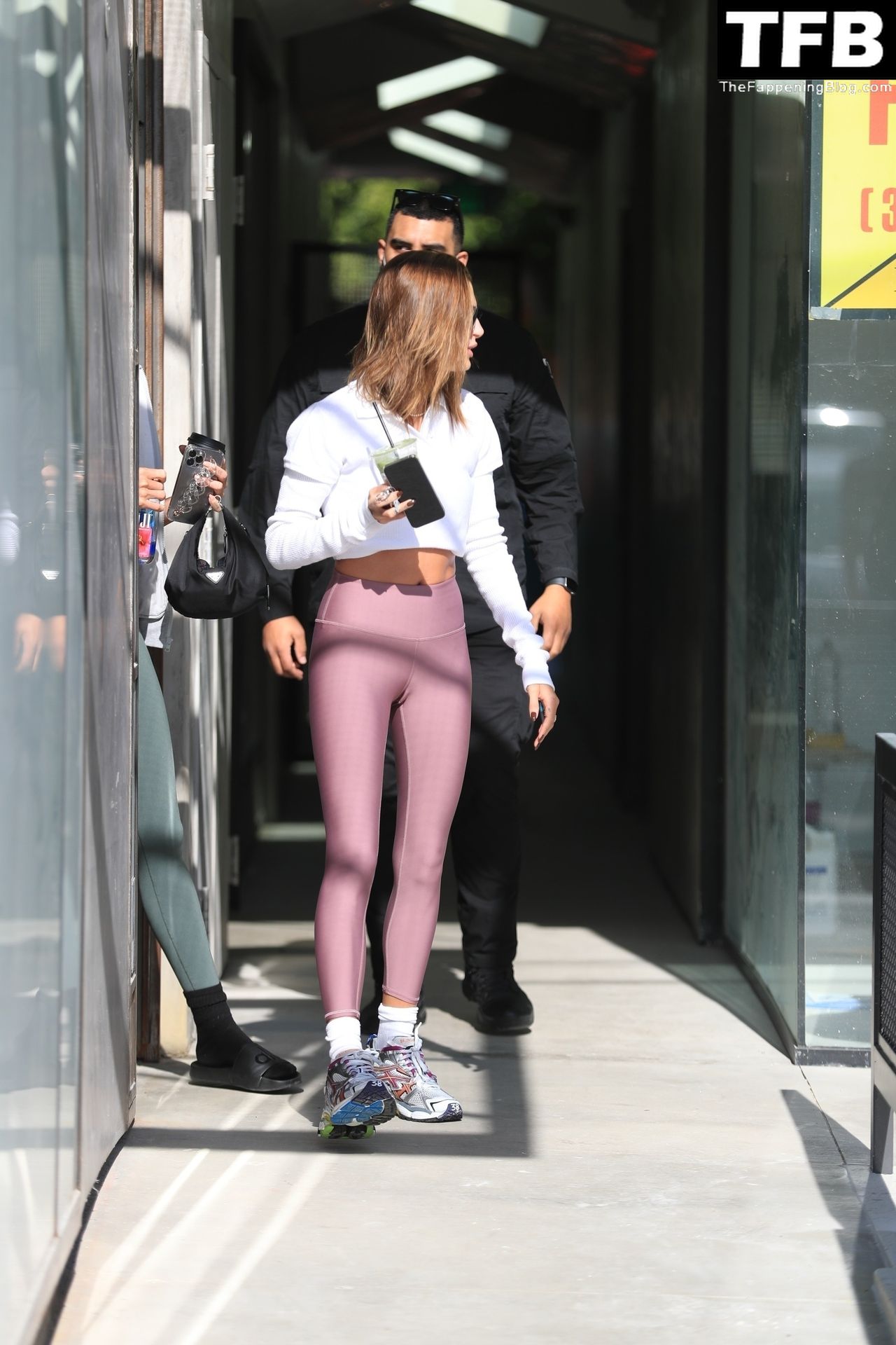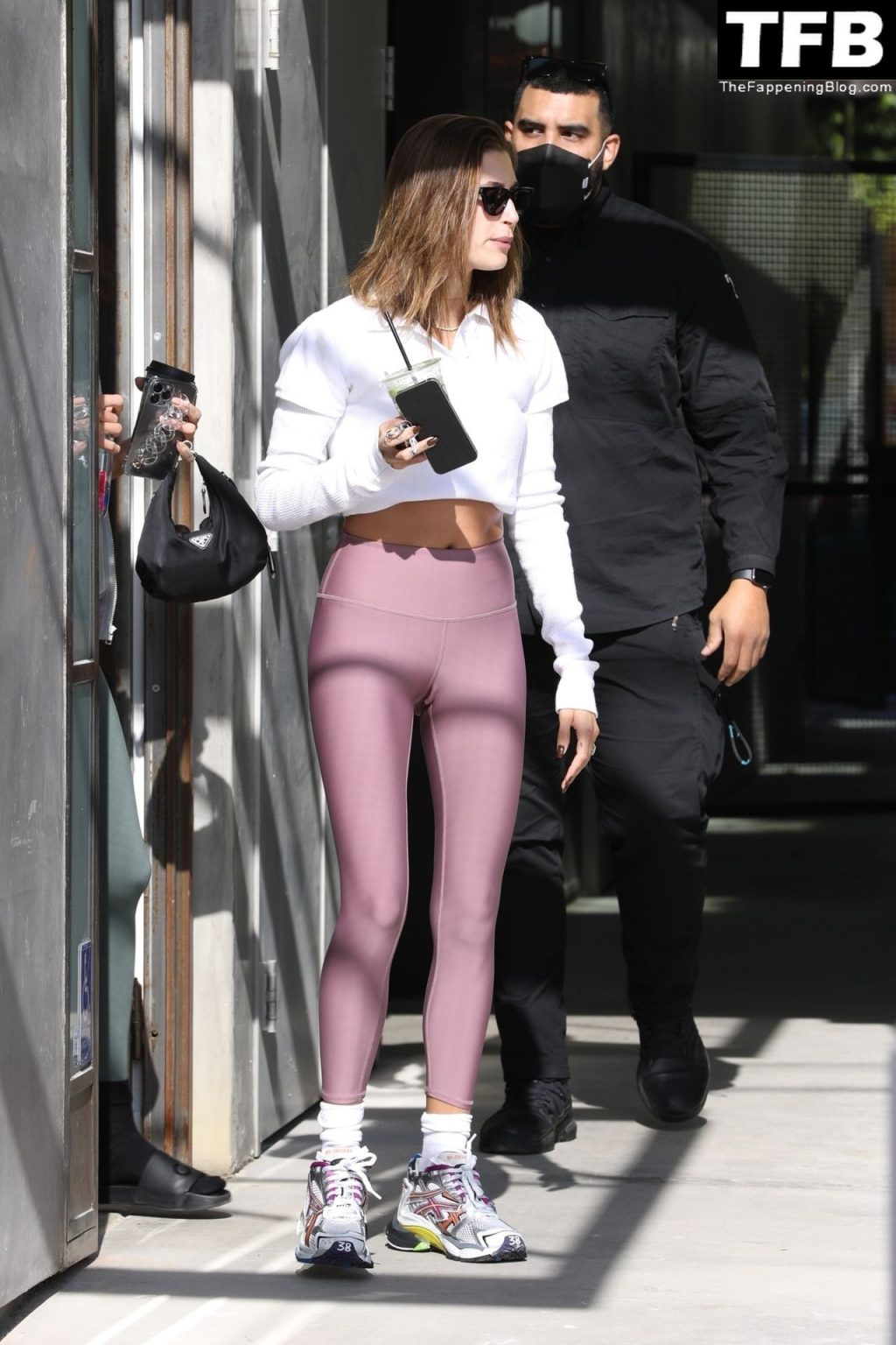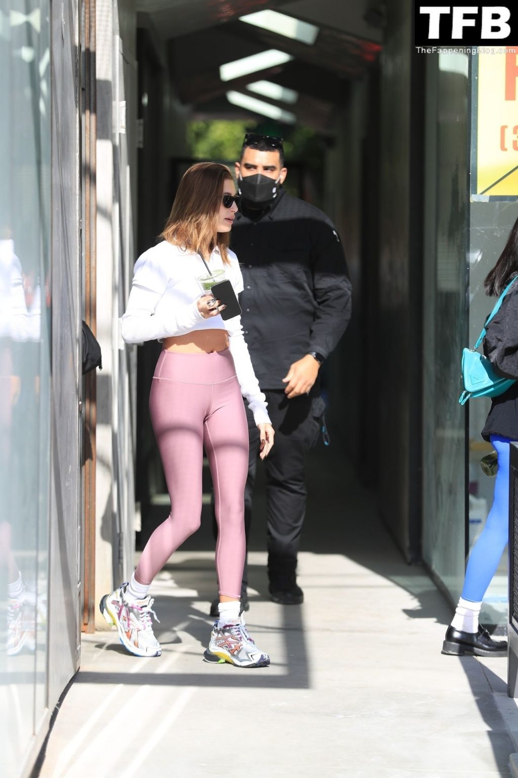 Hailey Bieber muestra su figura delgada mientras llega al estudio boutique Forma Pilates en West Hollywood, 14/01/2022.