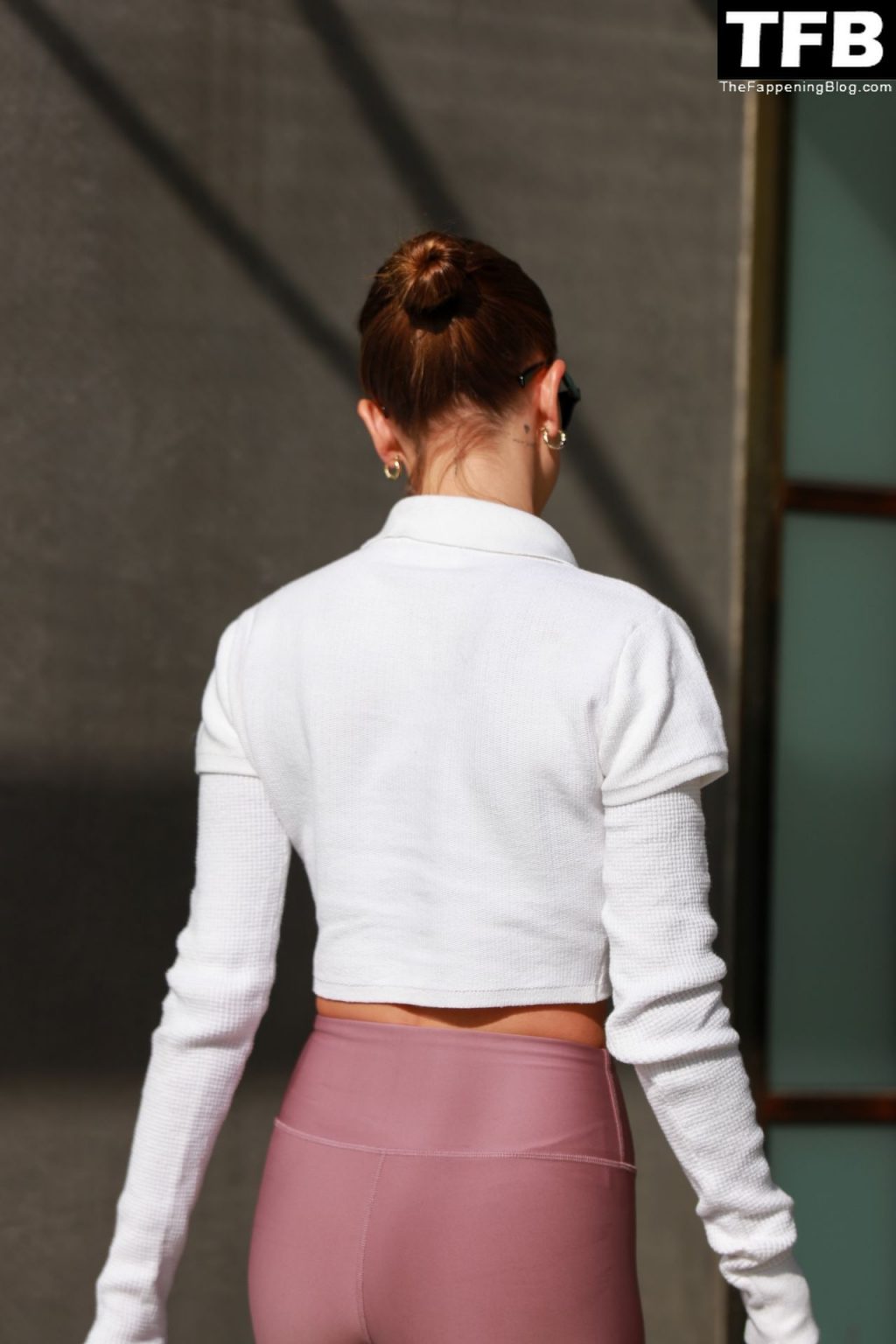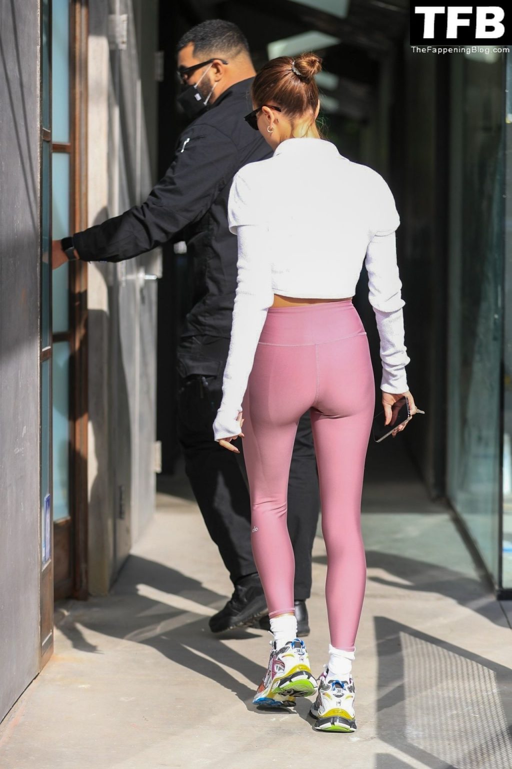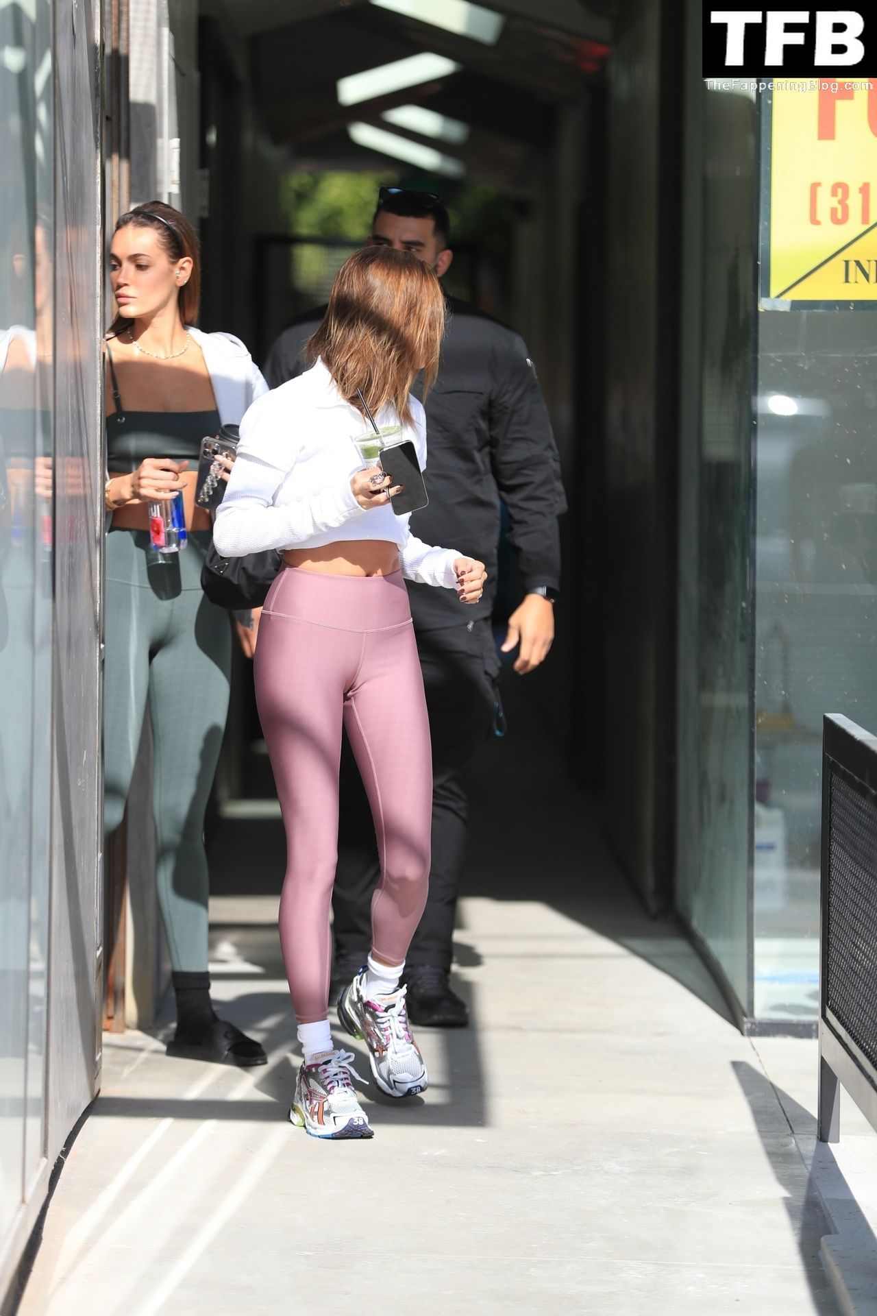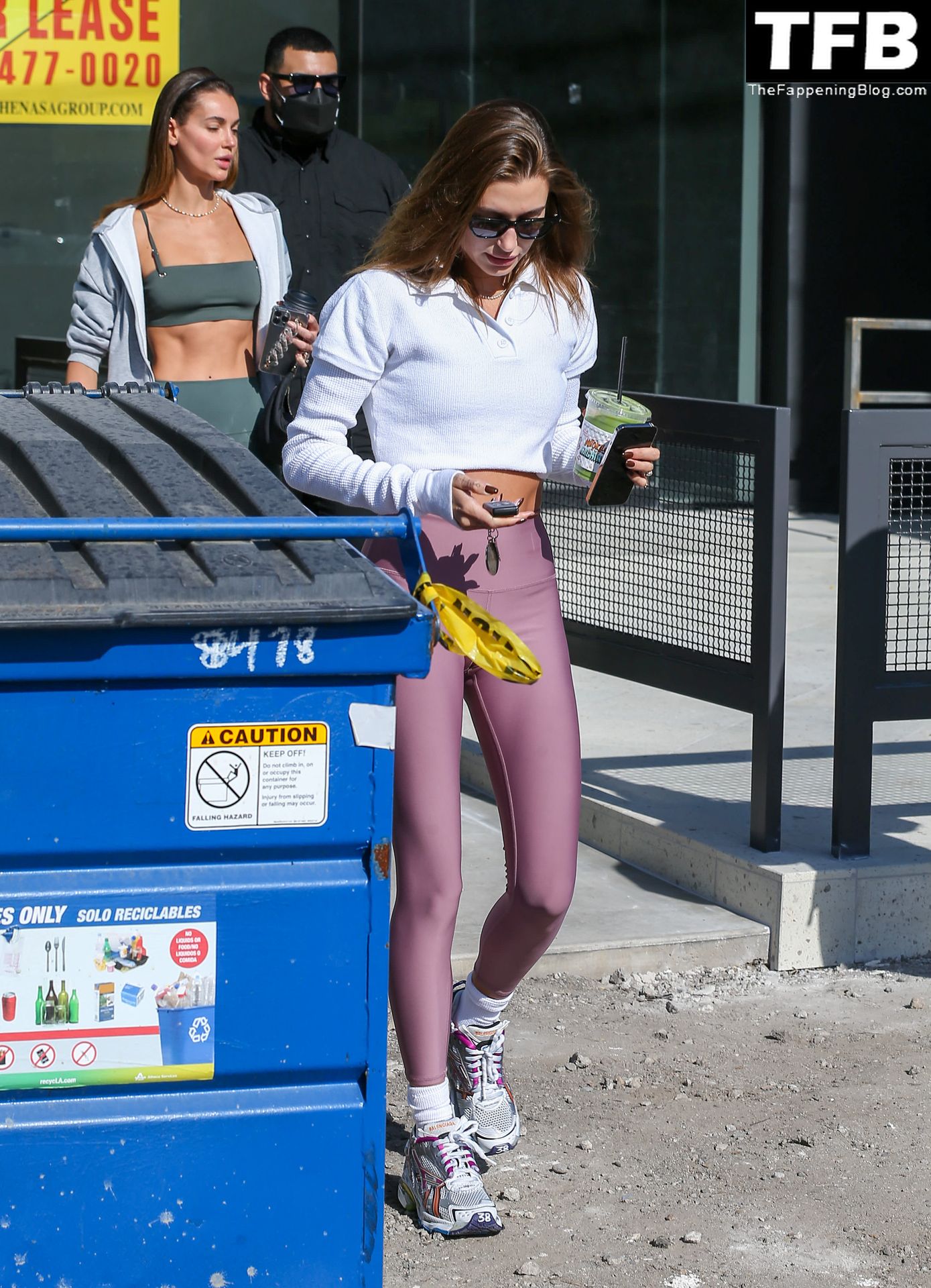 Hailey Bieber muestra su figura delgada mientras llega al estudio boutique Forma Pilates en West Hollywood, 14/01/2022.