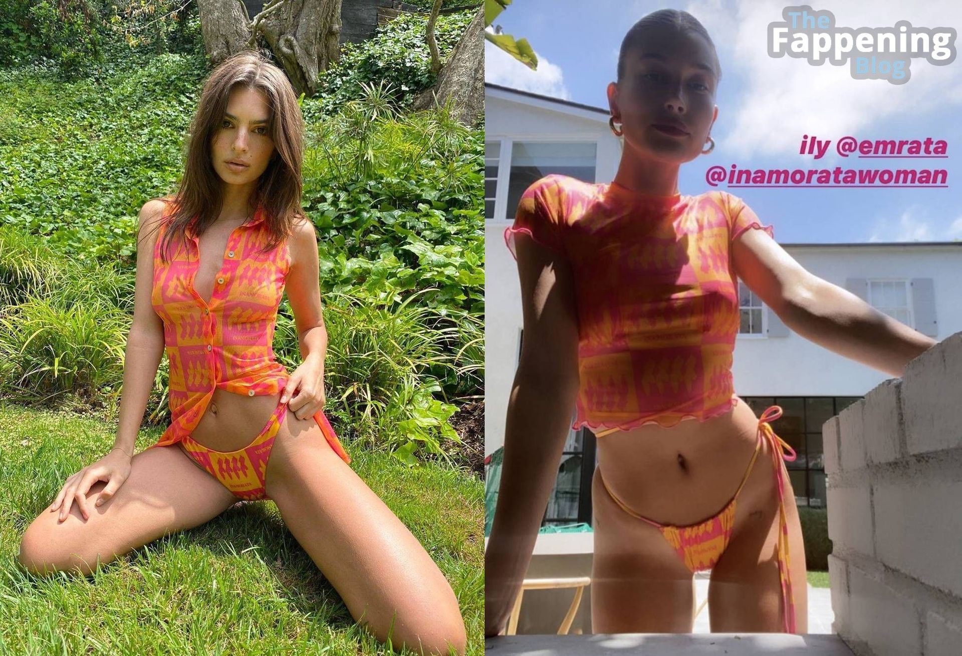 Hailey Bieber muestra su figura sexy en un bikini. Compara su look con Emara en la galería abajo.