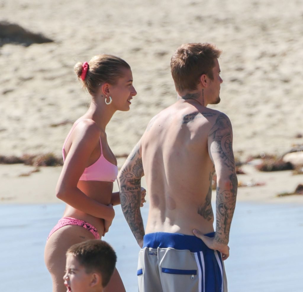 Justin Bieber y su esposa Hailey Baldwin están disfrutando de su día al sol, 17/03/2019. La pareja con problemas está dejando atrás sus preocupaciones mientras van a la playa y se reconectan tras el tratamiento de Bieber por depresión. Un Bieber con barba mostró sus tatuajes y sus abdominales marcados, mientras que la modelo Hailey estaba linda en rosa con un bikini diminuto.