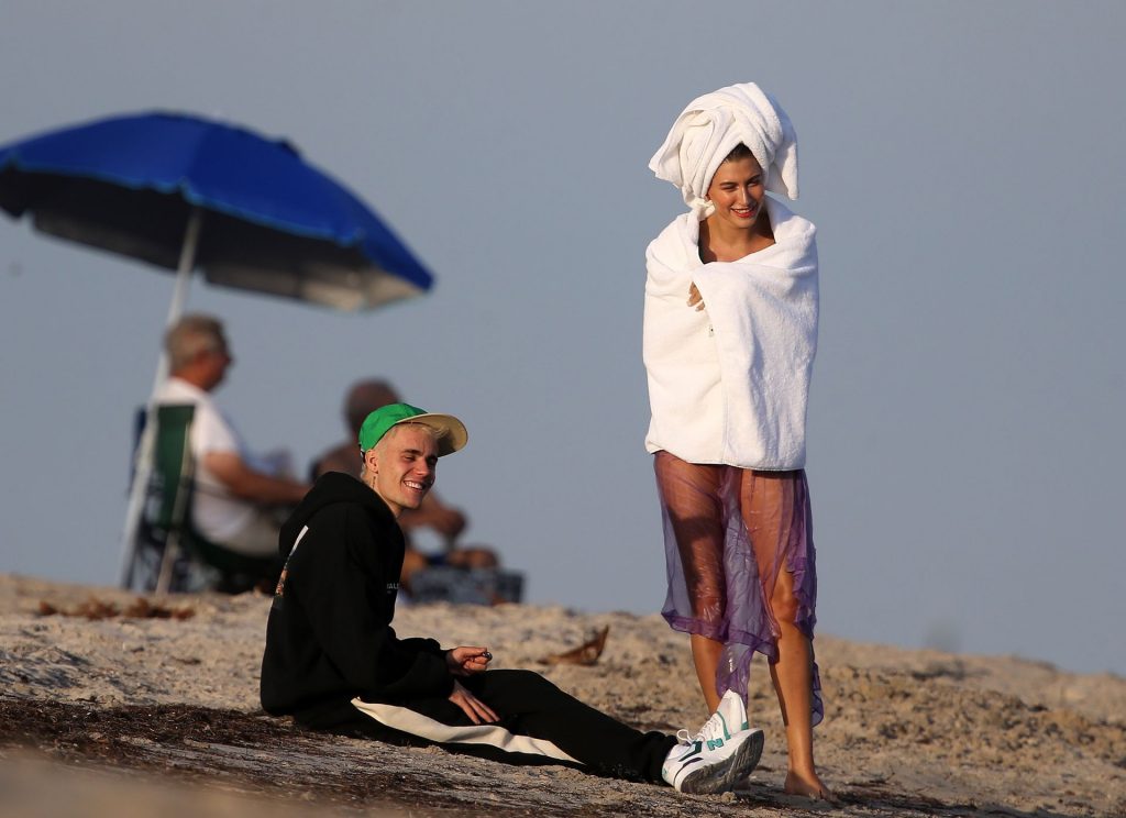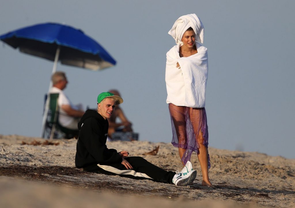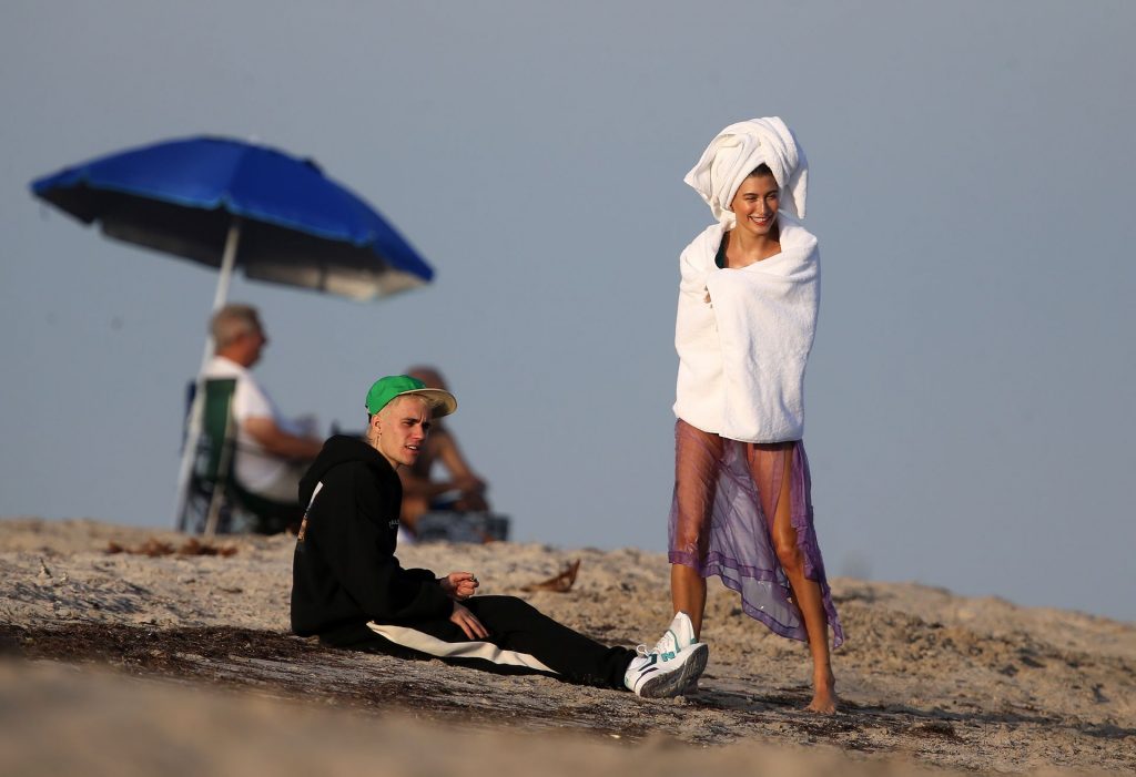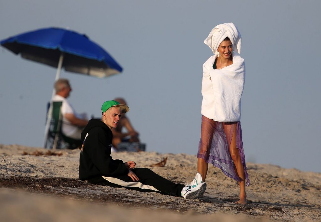 Hailey Bieber (Baldwin) muestra sus curvas durante una sesión de fotos en la playa en Miami, 27/11/2019. Hailey Bieber, que está en Miami con su esposo Justin Bieber, fue vista con muchos bikinis mientras mostraba sus curvas durante la sesión fotográfica.