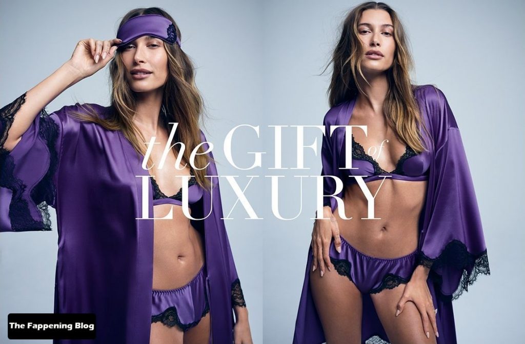La modelo Hailey Bieber muestra su figura sexy, posando con varios conjuntos de seda, promocionando una nueva colección de Victoria’s Secret (noviembre de 2021).