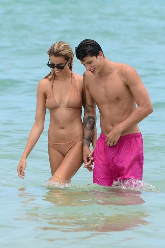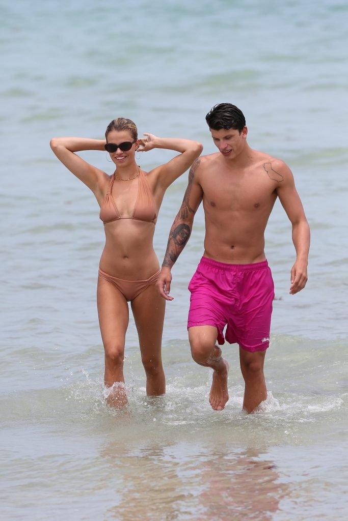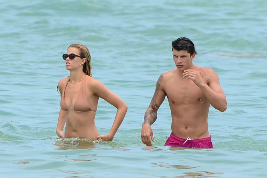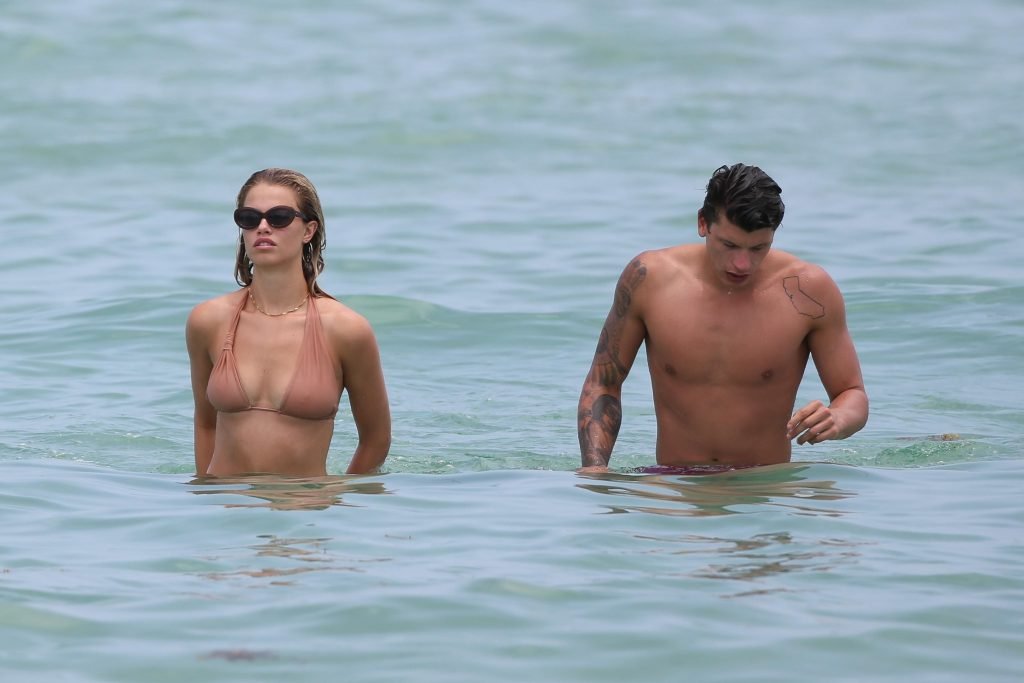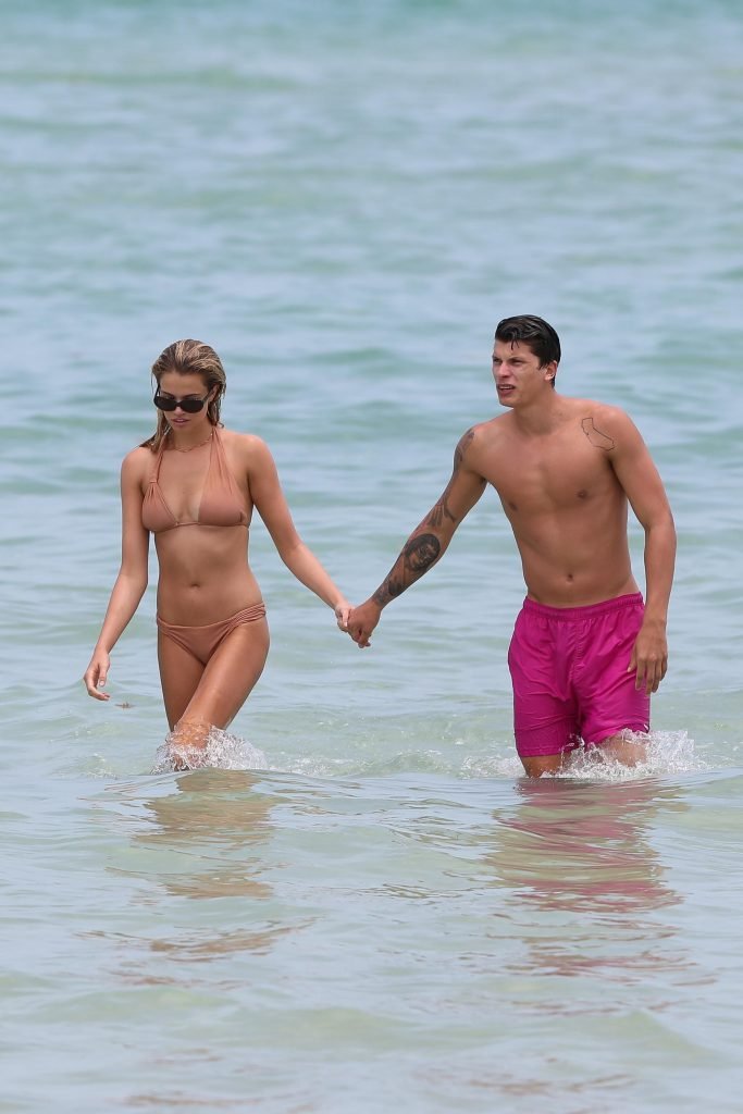 Model Hailey Clauson y su novio Jullien Herrera disfrutan de un día romántico en la playa en Miami Beach, Florida, 22/07/2017.
