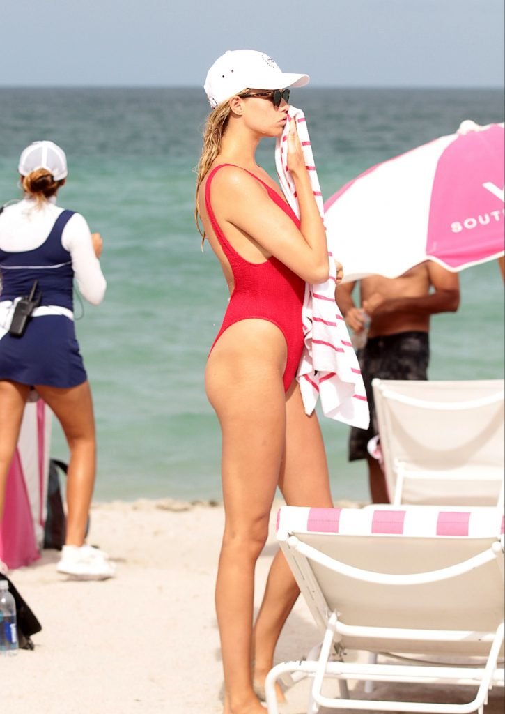 Hailey Clauson fue vista con un traje de baño rojo en la playa de Miami, 23/07/2017. Hailey Clauson es una modelo de moda de Thousand Oaks (EE.UU.). Edad – 22 años.