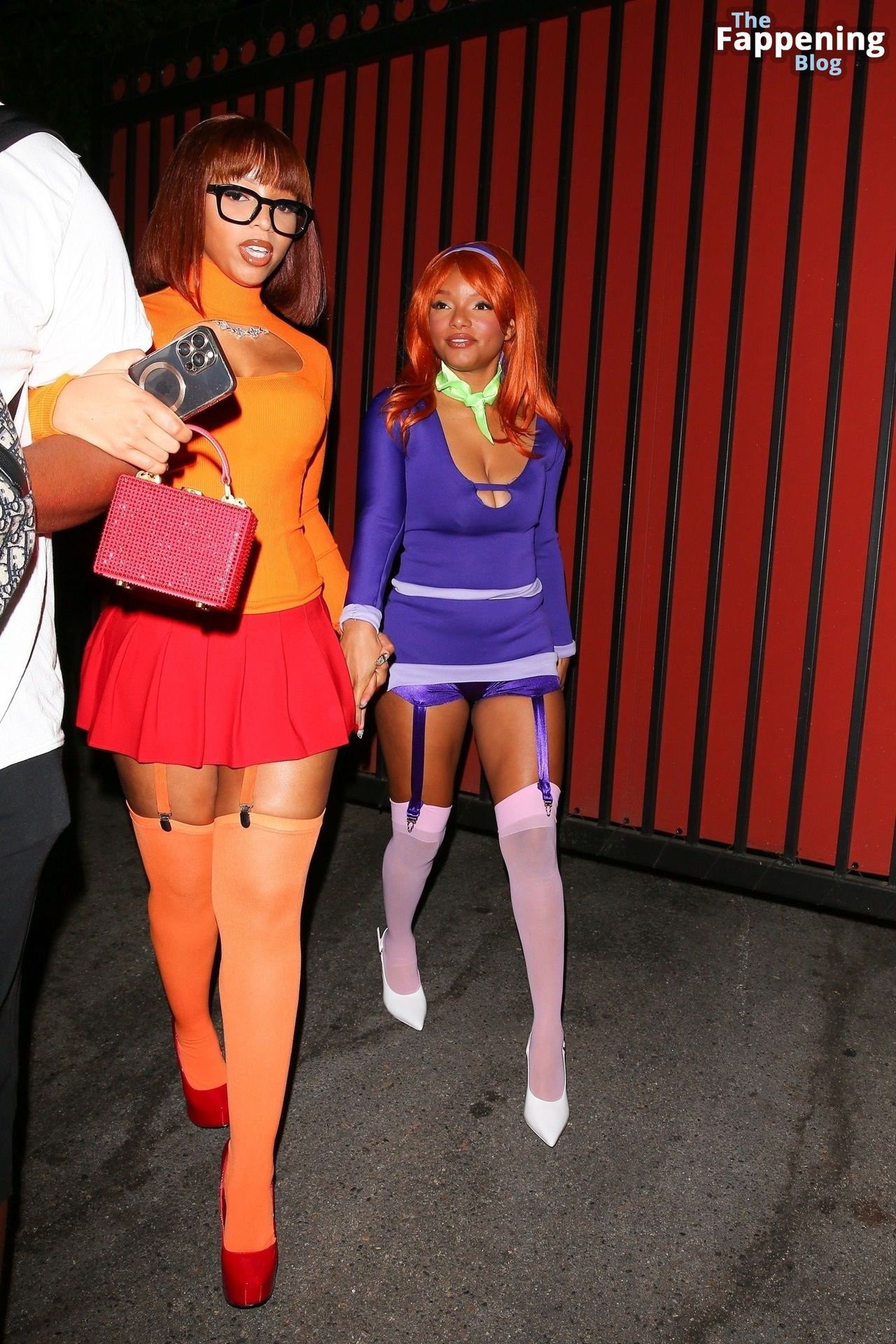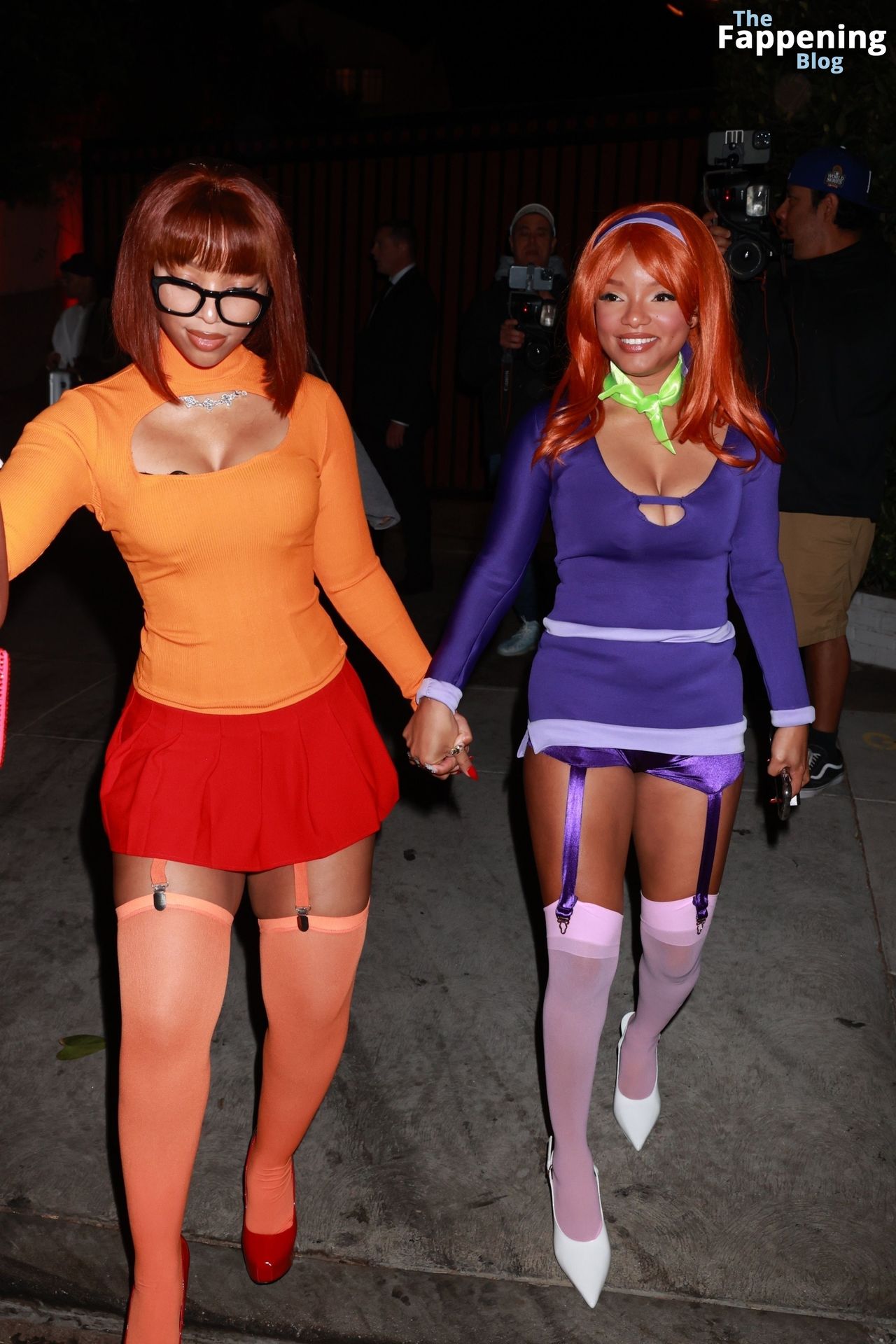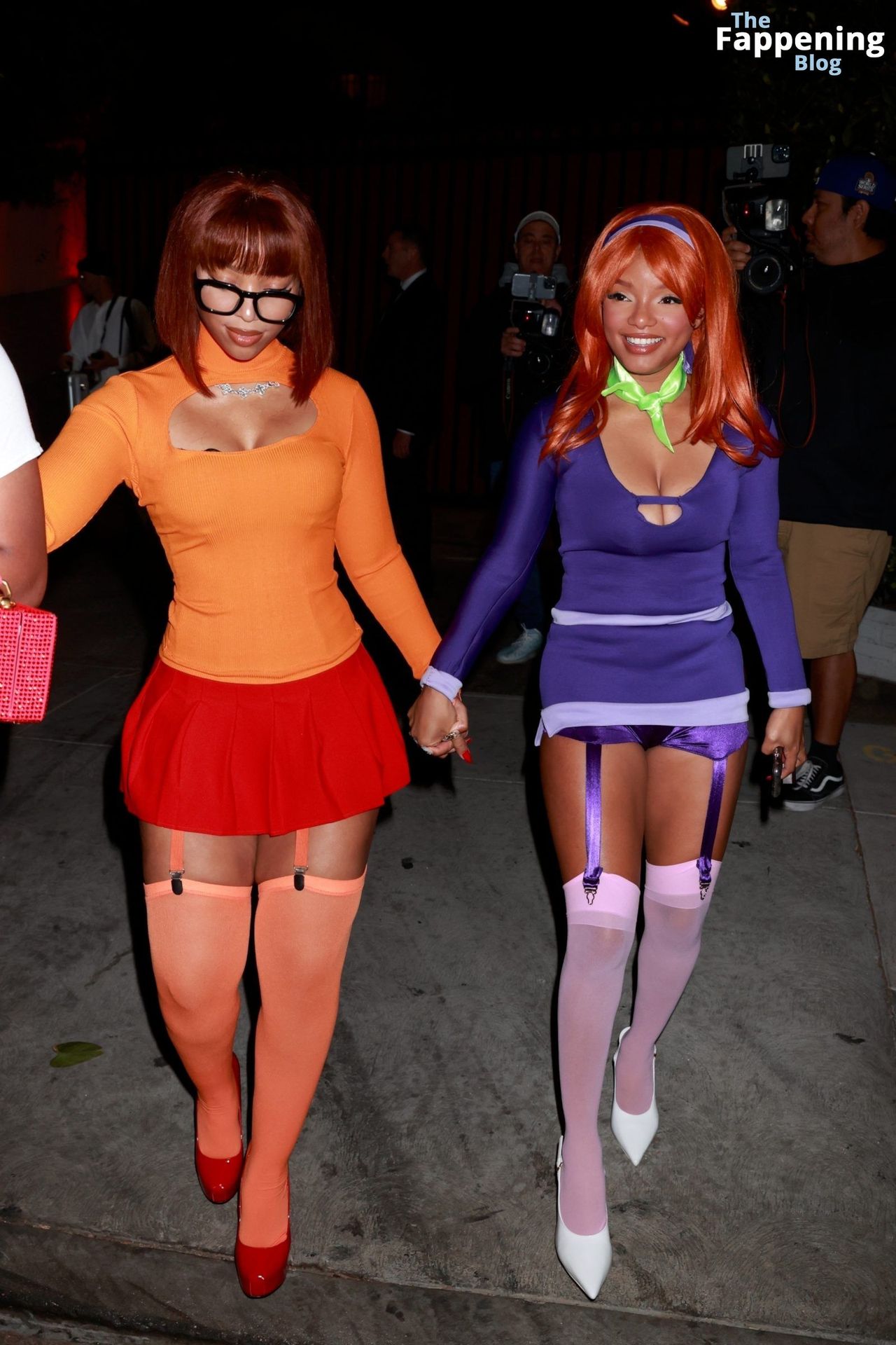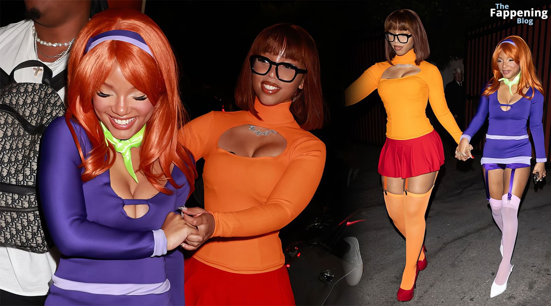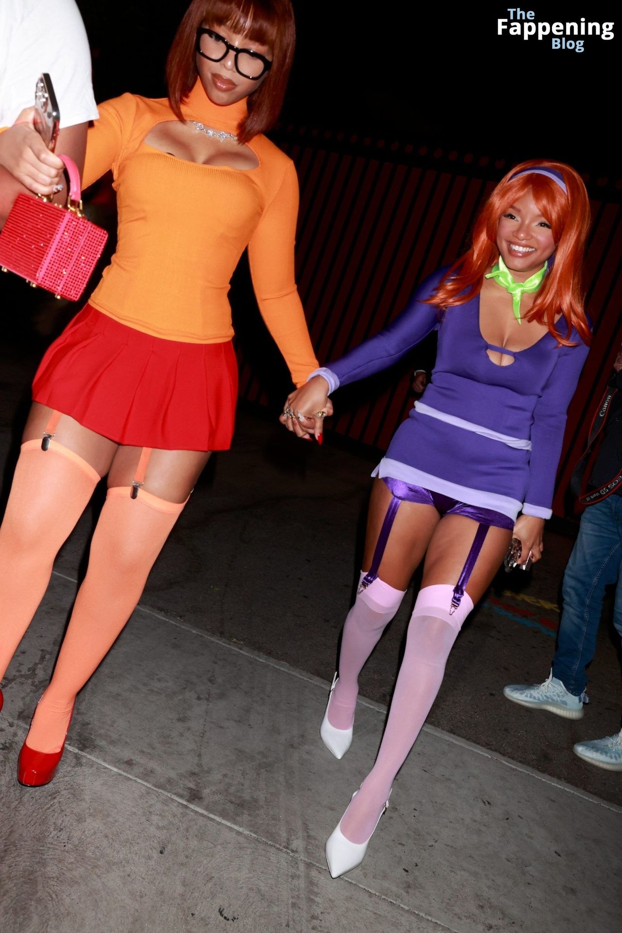 Halle y Chloe Bailey suben la temperatura como las sensuales Velma y Daphne en la fiesta de Halloween de Kendall Jenner en el Chateau Marmont, luciendo un escote pronunciado y piernas en sus atrevidos disfraces.