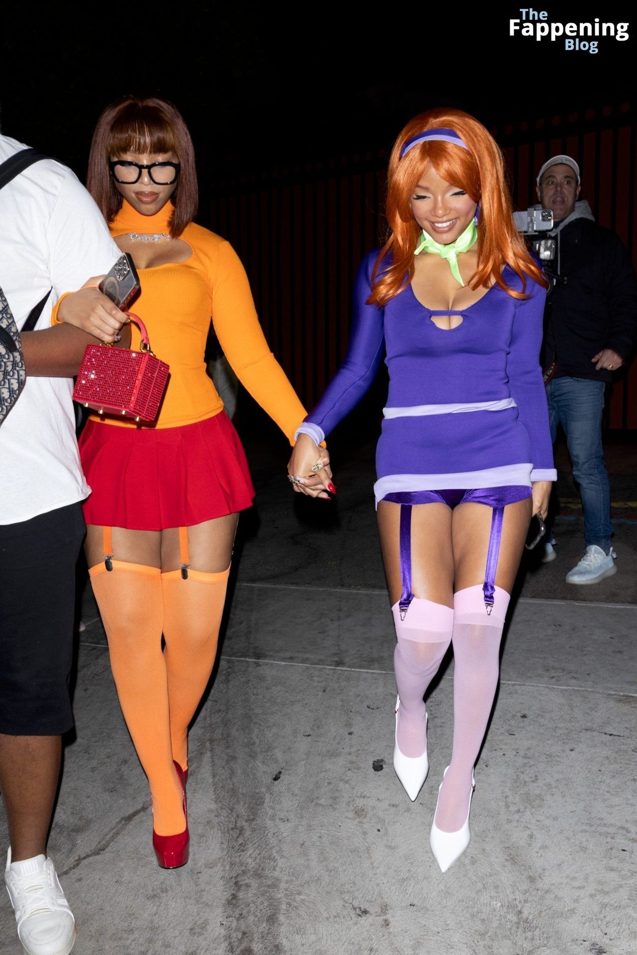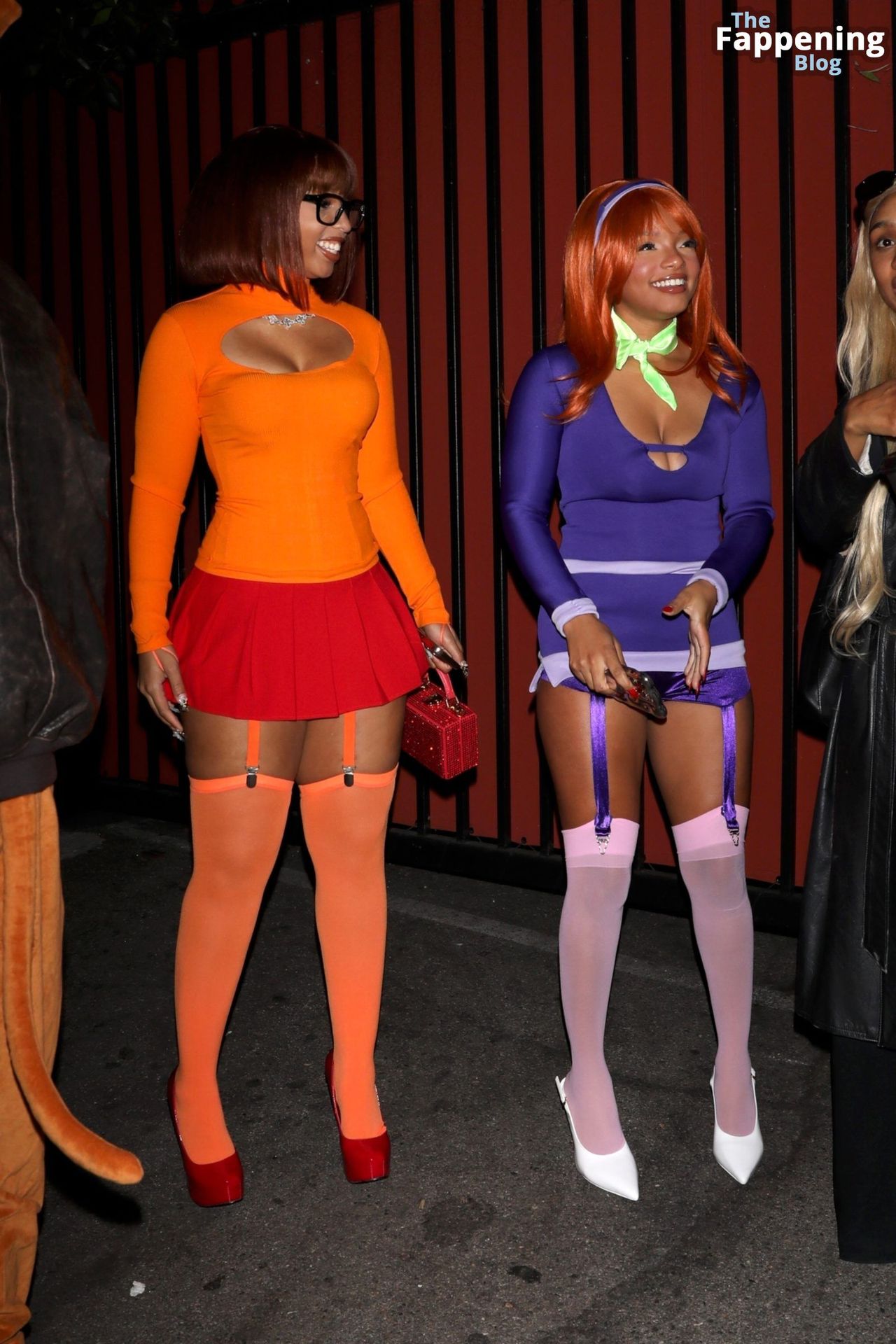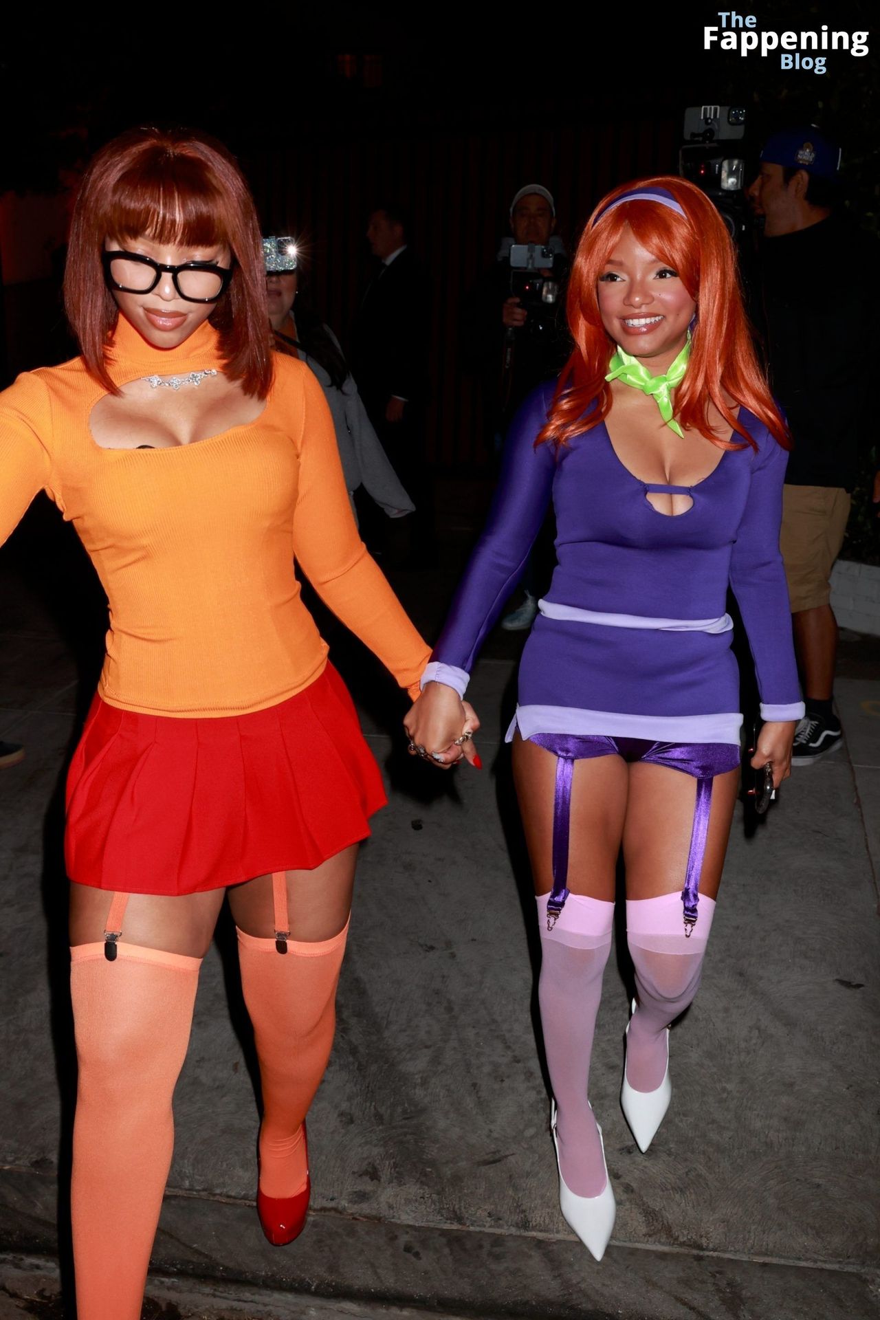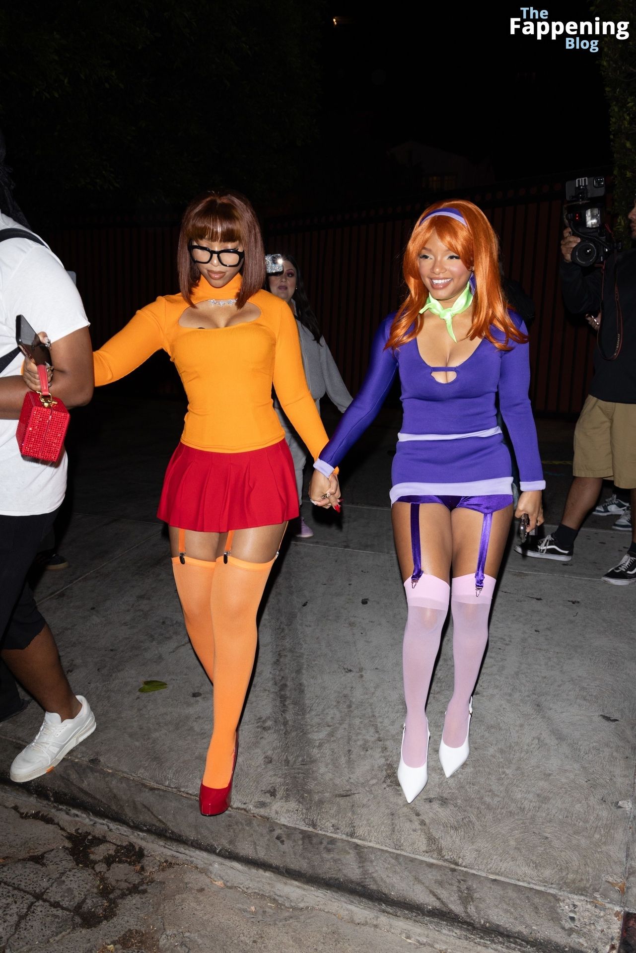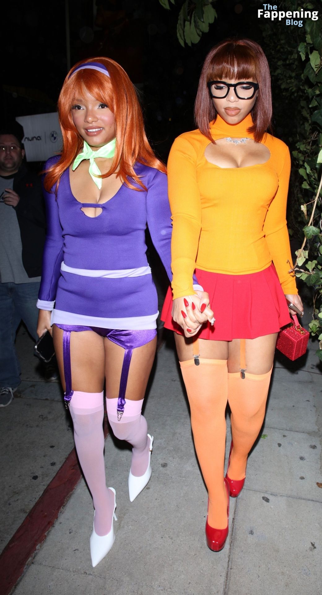 Halle y Chloe Bailey suben la temperatura como las sensuales Velma y Daphne en la fiesta de Halloween de Kendall Jenner en el Chateau Marmont, luciendo un escote pronunciado y piernas en sus atrevidos disfraces.