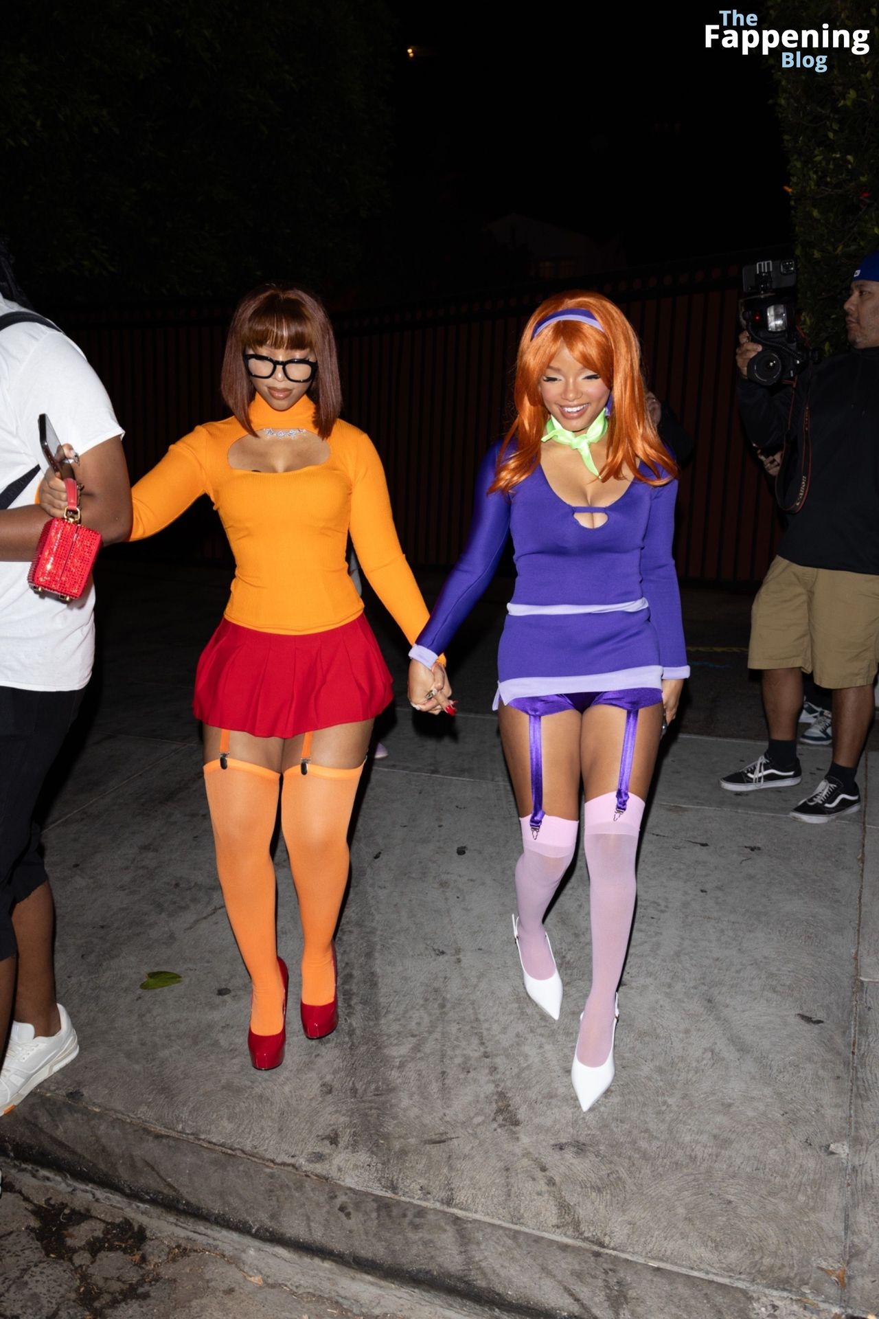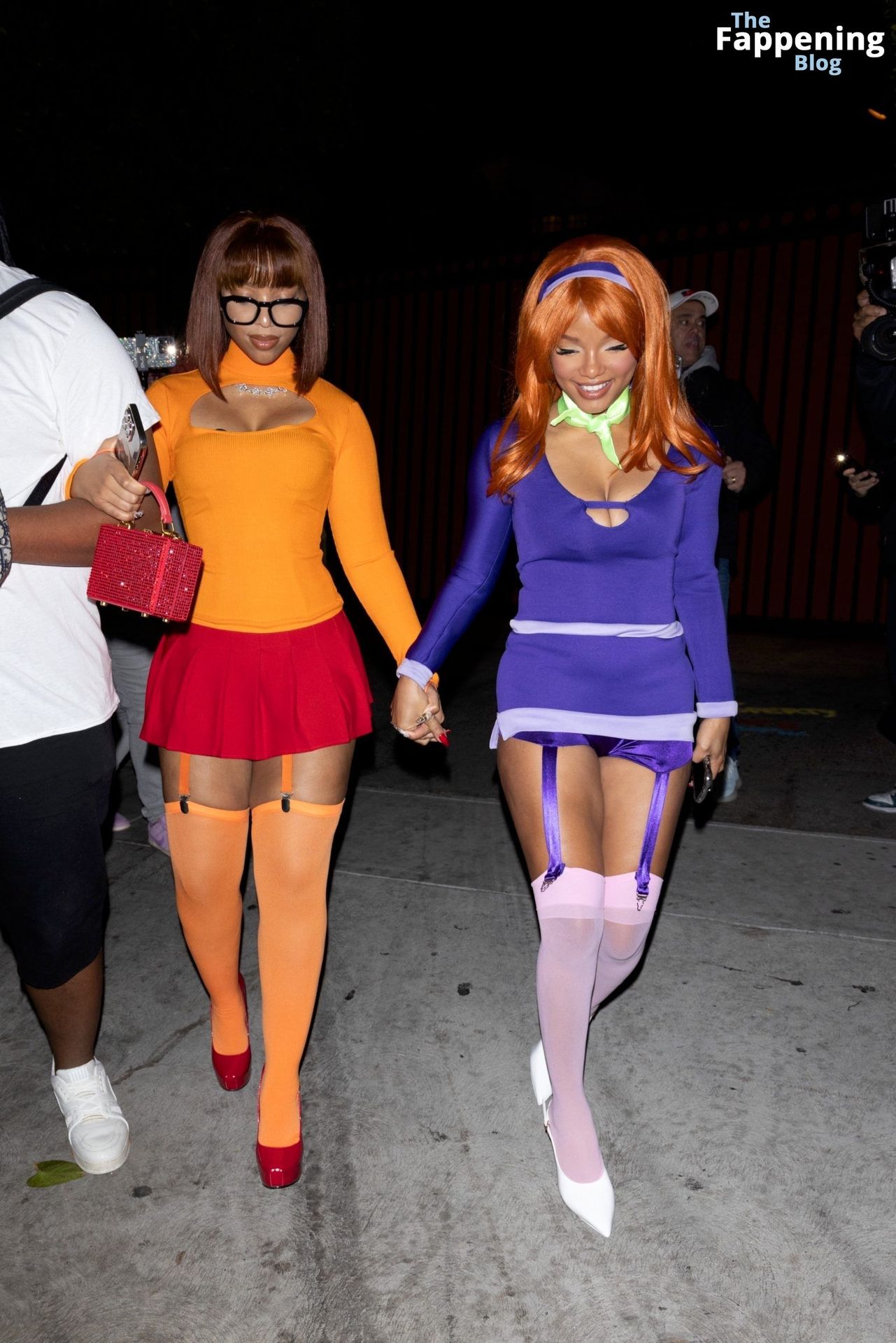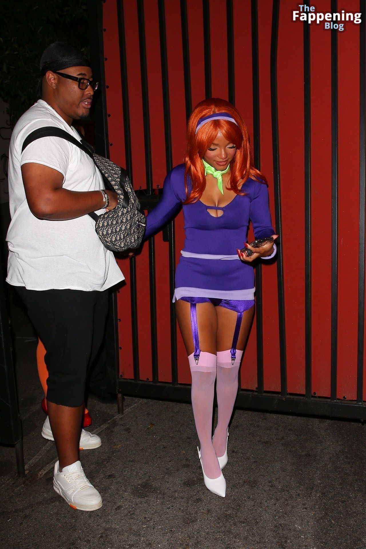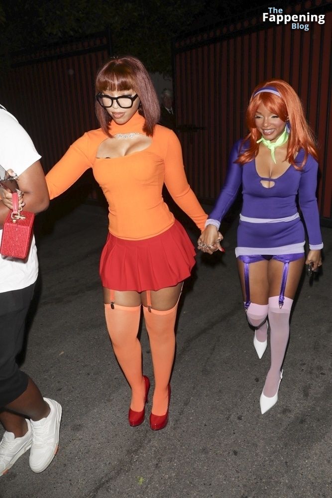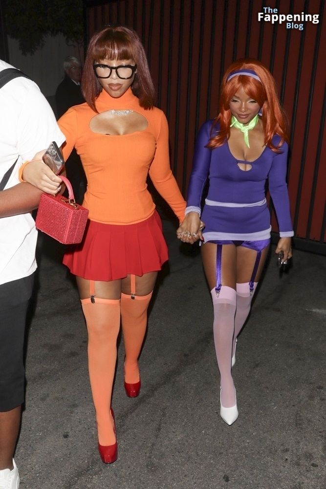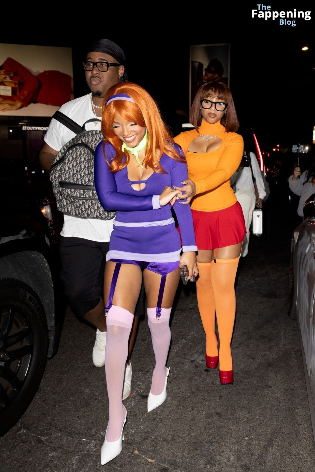Halle y Chloe Bailey suben la temperatura como las sensuales Velma y Daphne en la fiesta de Halloween de Kendall Jenner en el Chateau Marmont, luciendo un escote pronunciado y piernas en sus atrevidos disfraces.