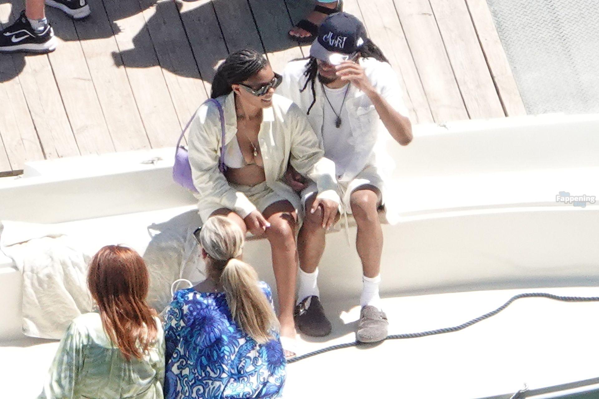 Subiendo la temperatura, Halle estaba muy cariñosa con su nuevo hombre, Scott Bridgeway, productor de Kendrick Lamar. Estaban completamente entregados el uno al otro, besándose, abrazándose y hasta posando para algunas fotos picantes que parecían una sesión fotográfica.
