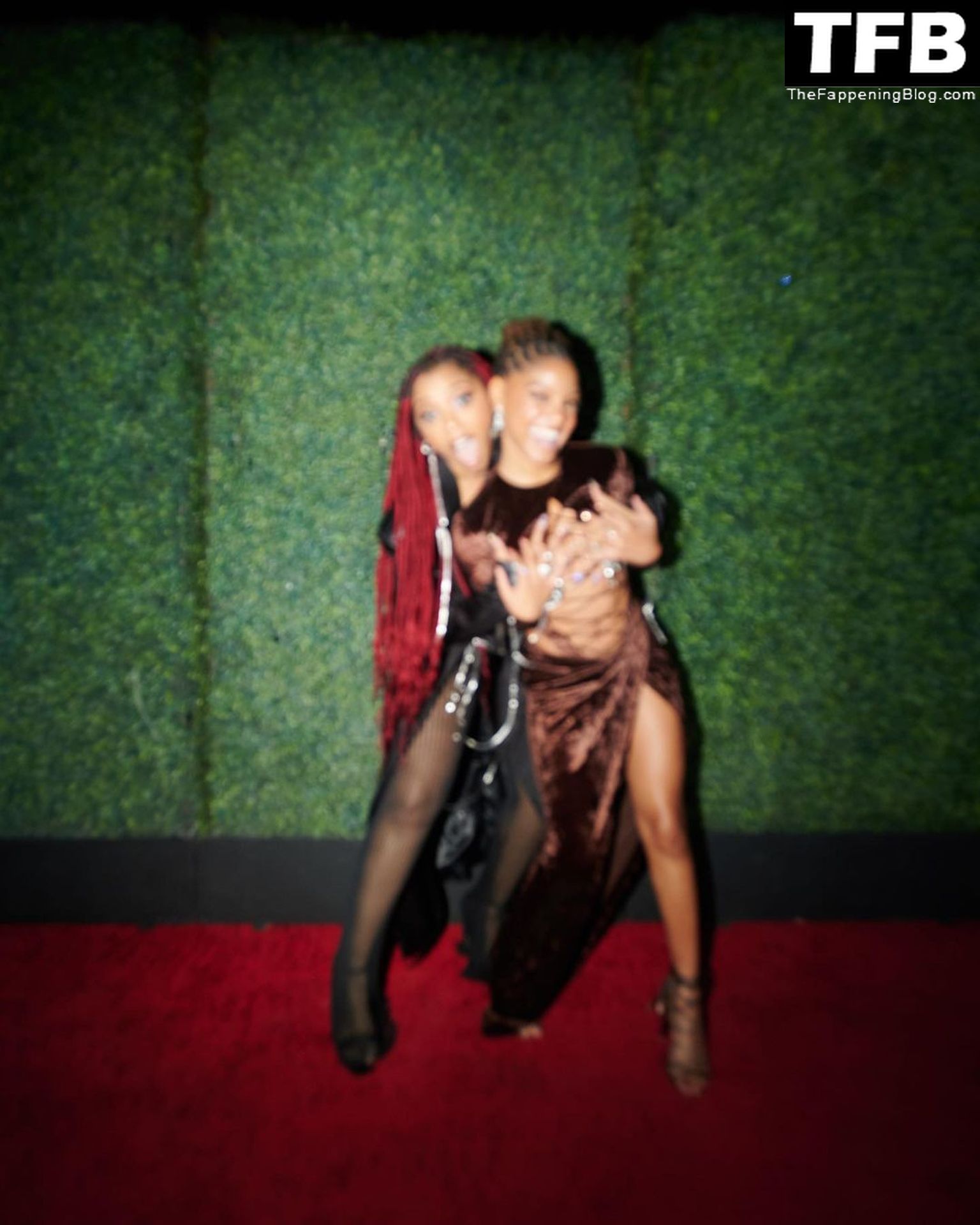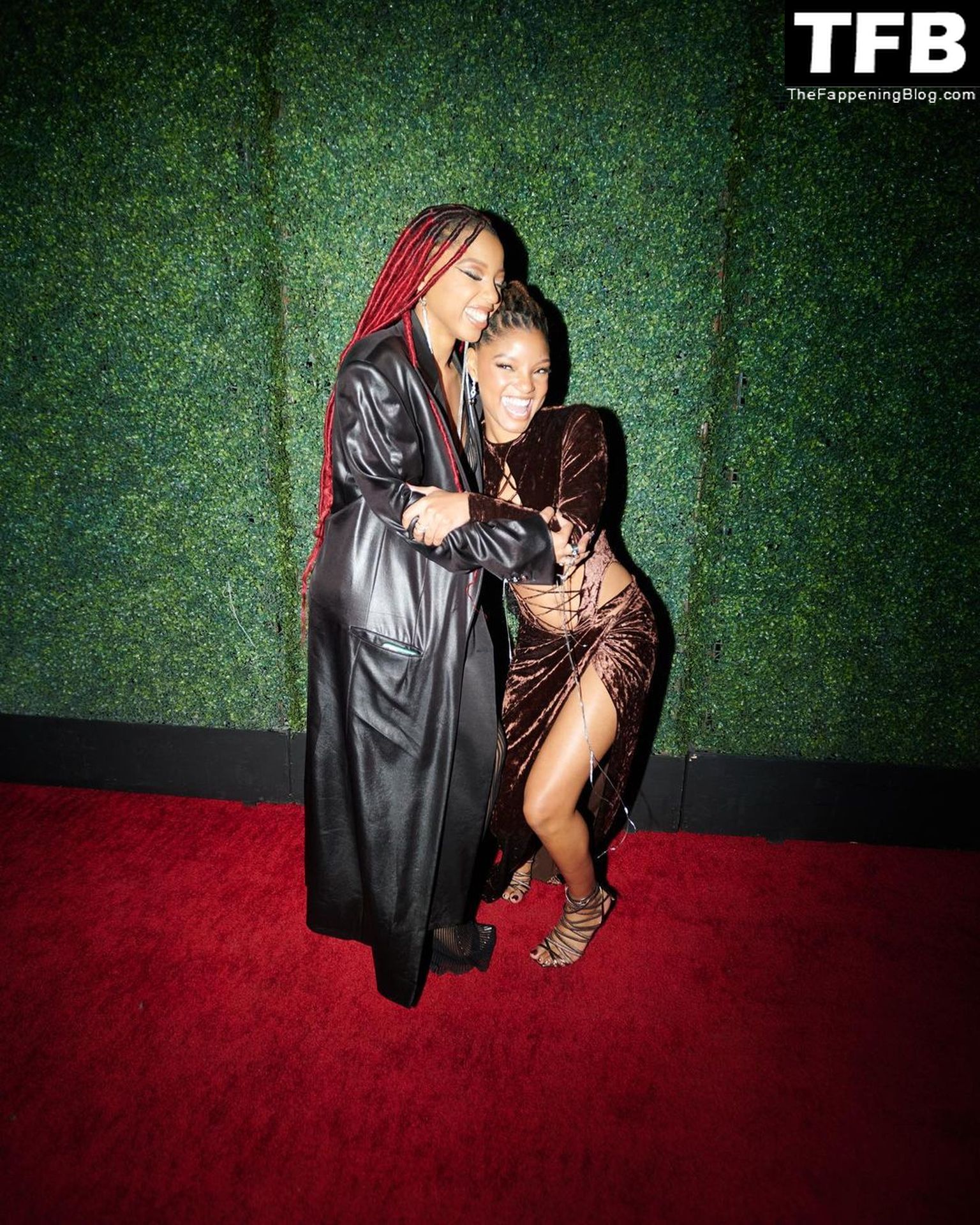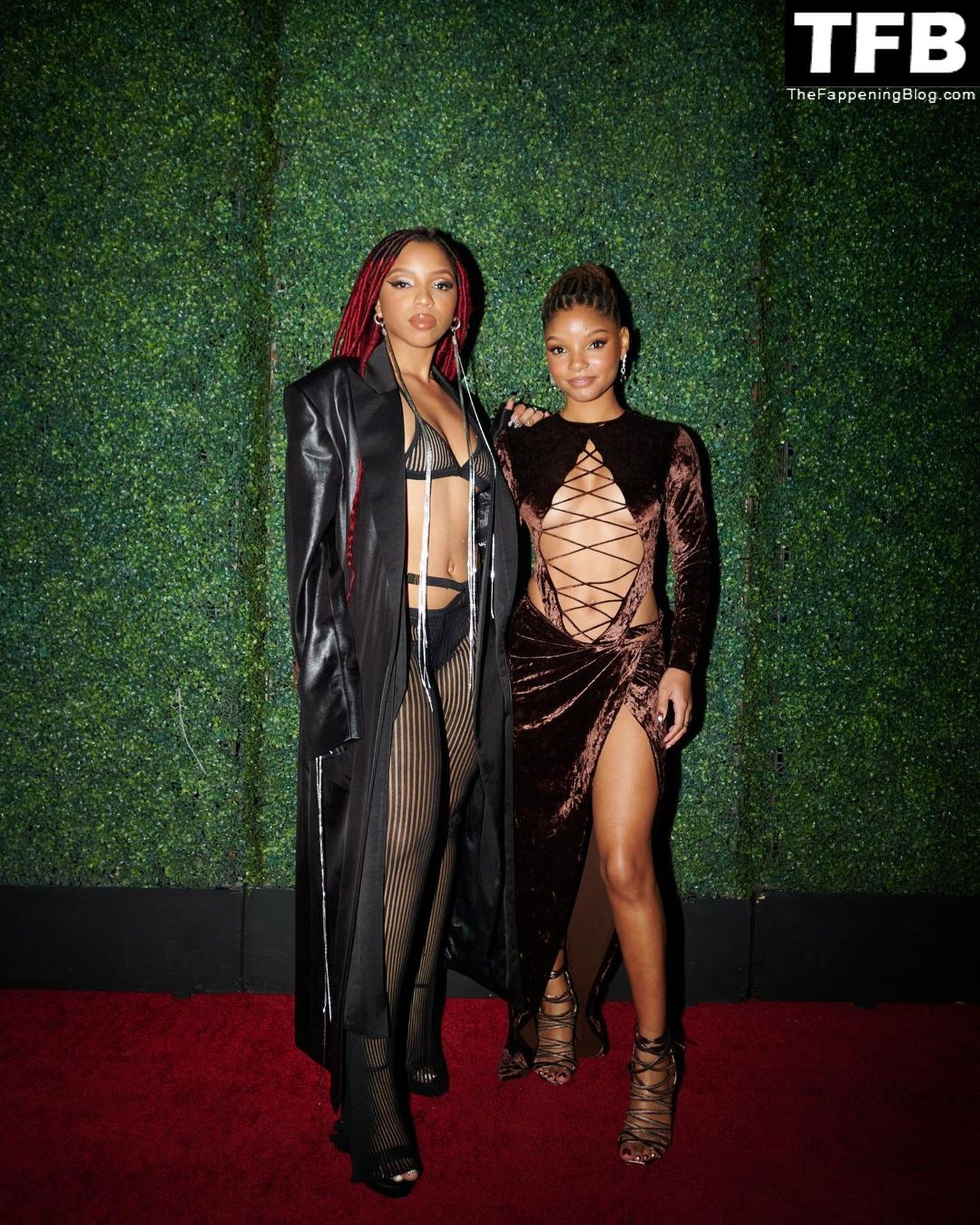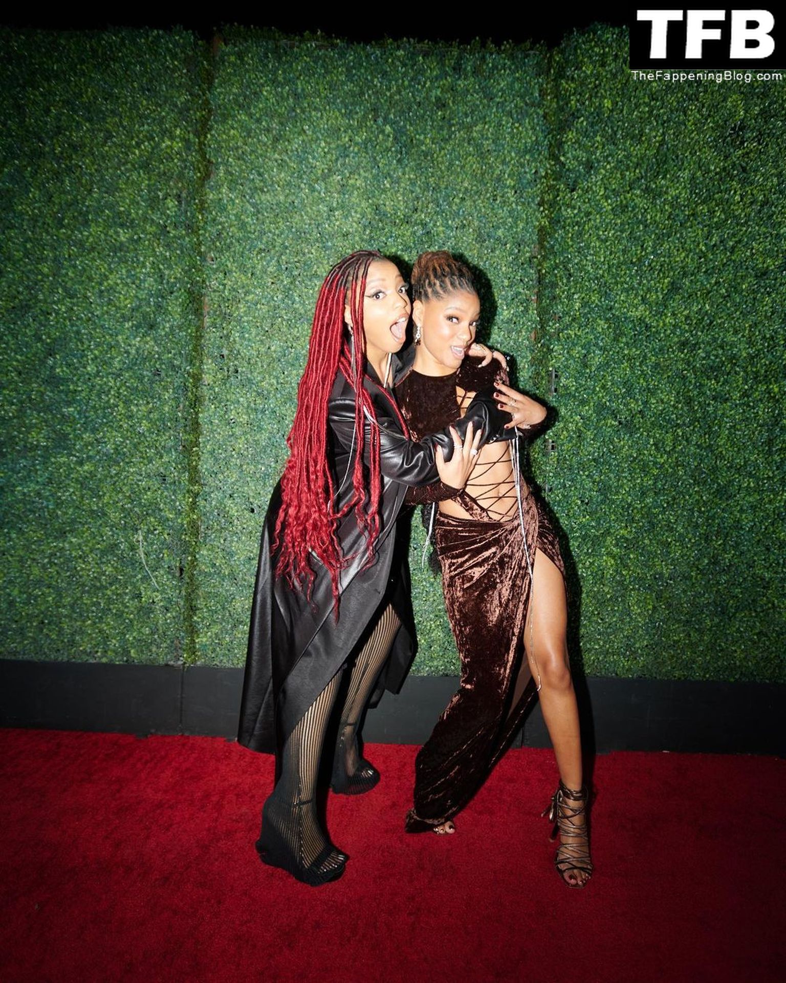 La actriz Halle Bailey posa sin sostén en la alfombra roja, mostrando un bonito underboob en los American Music Awards en el Microsoft Theater de Los Ángeles, 21/11/2021.