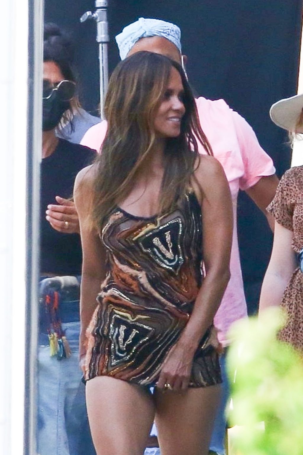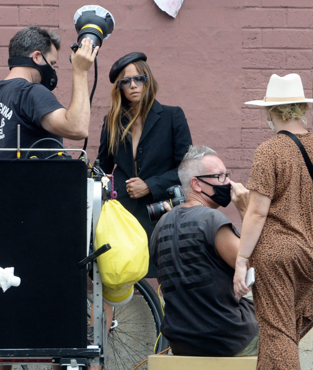 Actriz Halle Berry luce increíble mientras comienza su semana haciendo una sesión de fotos en el centro de Los Ángeles, 17/08/2020.