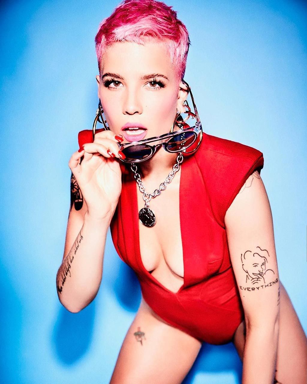 Halsey nude pics are here! She changed so many hairstyles, and I hope she’s not evolving dicks so often! We love her songs, boobs, ass in a bikini, and the most we like her beautiful nonplastic face; she’s all-natural! This singer became famous for being a bit crazy; her style and sense of humor are just made for jerking; she has small tight tits and hard nipples, as you can see down below!