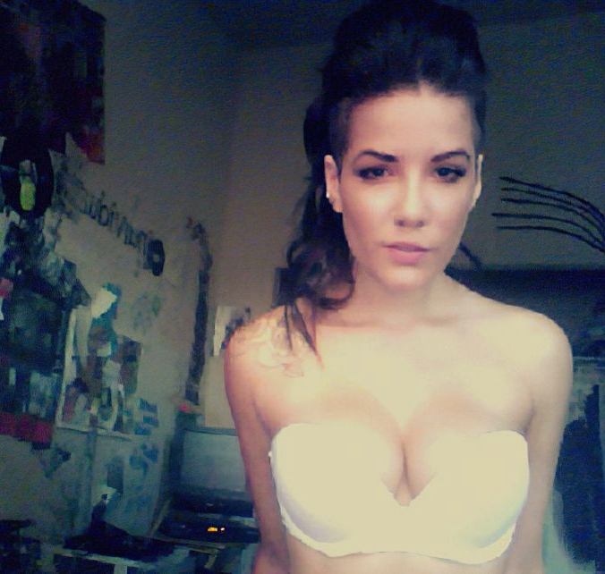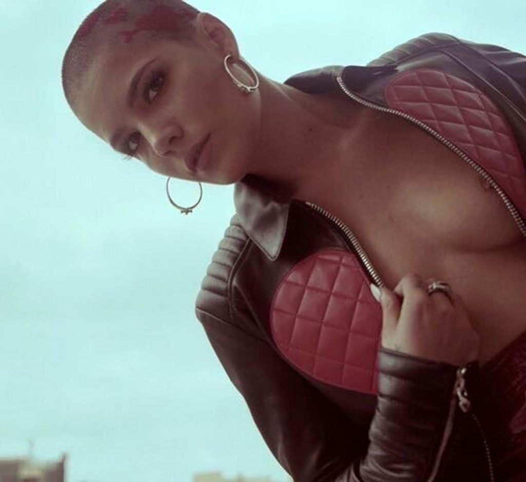 Alright, folks, so let’s take a look at some newer pics of our dear crazy-ass bitch! Halsey has yet again gone through a mental health issue. And this time, she shaved down all of her hair, put on some skanky make-up, and unbuttoned her shirt! And here are some pictures of that!