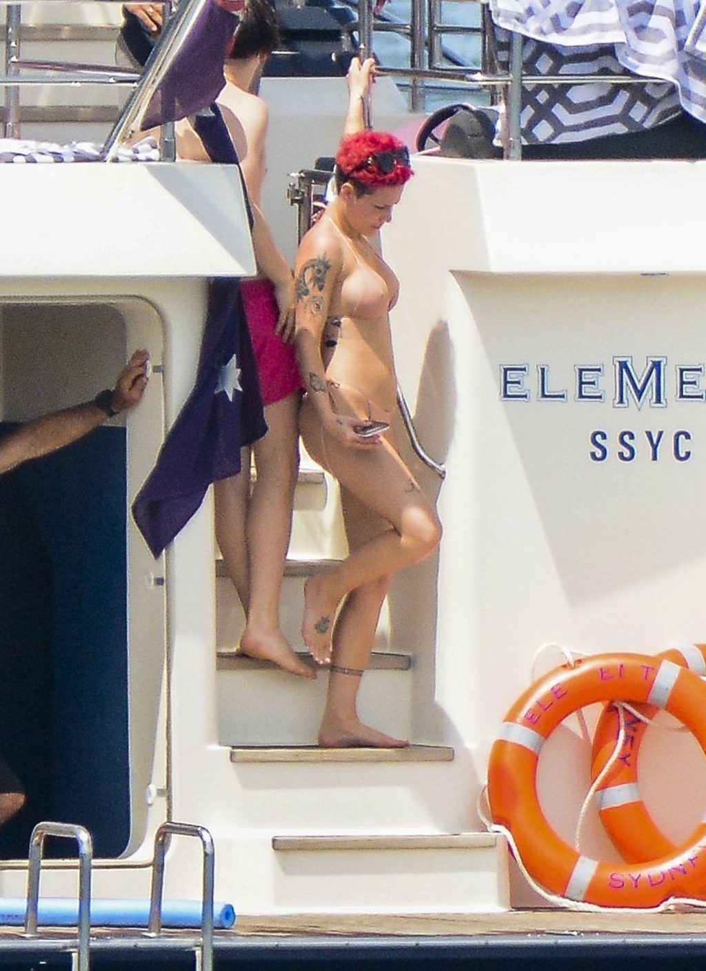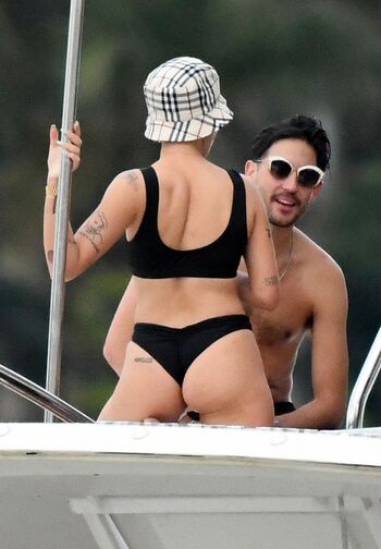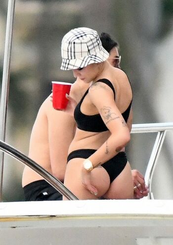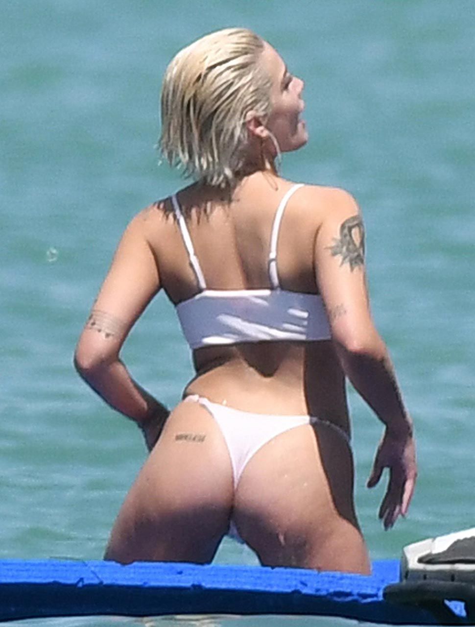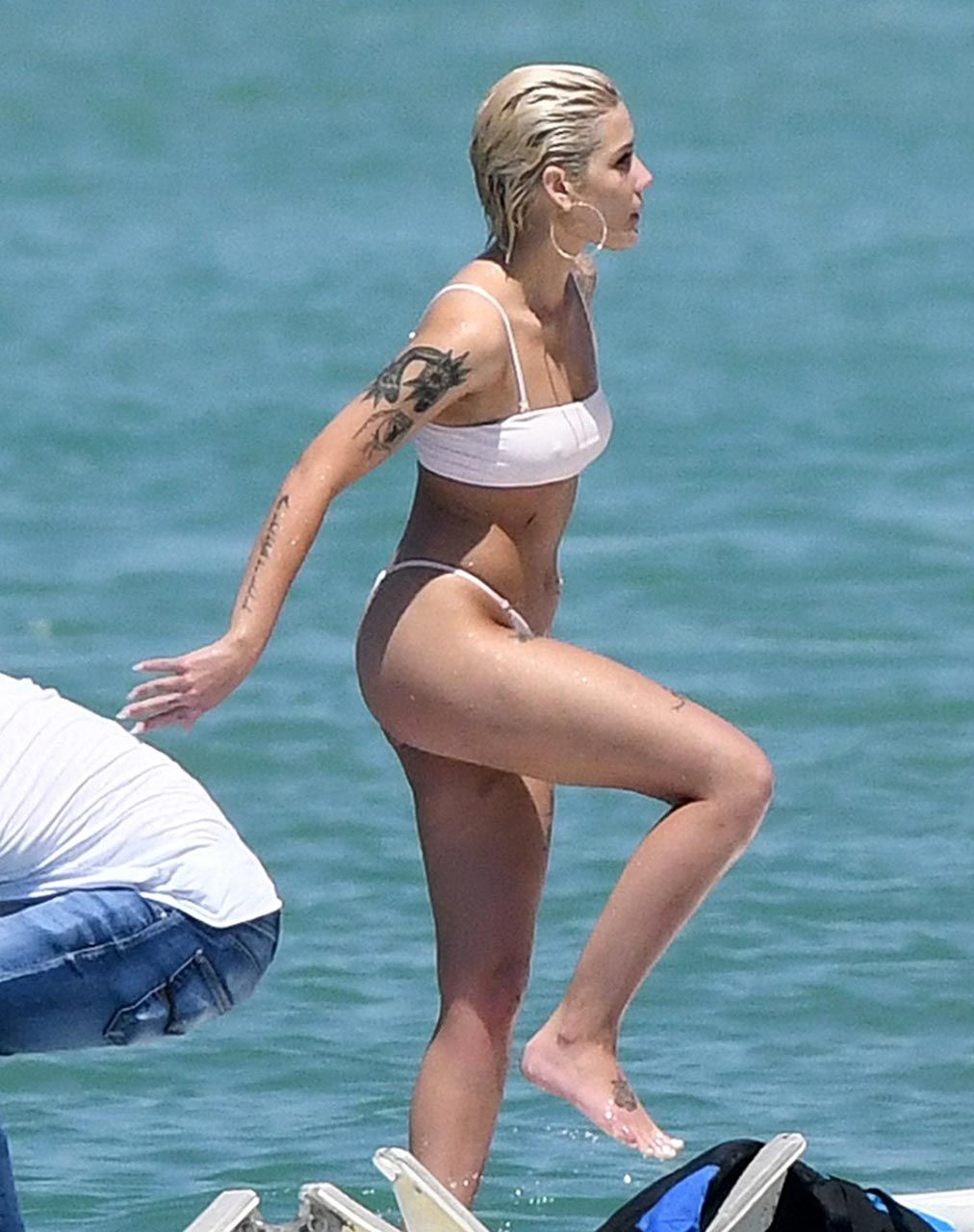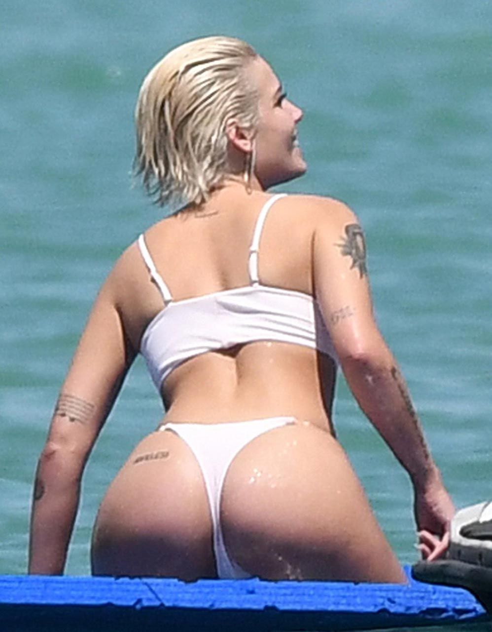 Watch how she looks, singer and model Halsey ass when she’s flashing it in a tiny bikini on a yacht with Josie Canseco and Maddy O’Leary. Pics are taken in Miami on G-Eazy’s boat! There’re rumors that Halsey is fucking G-Eazy, and two of them are in a secret relationship! We can’t be sure till we see them kissing or playing some love games on his yacht! Till that watch flat butt of Halsey in thong sexy bikini!
