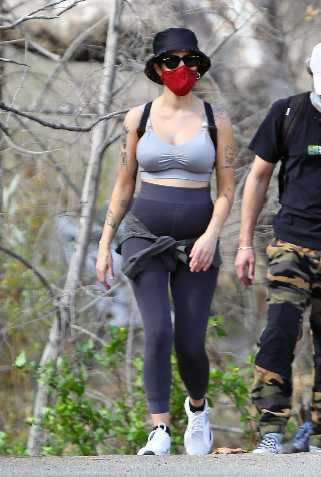 There was a rumor going around if Halsey was pregnant or not! Well, she most certainly is! Singer Halsey, her real name is Ashley Nicolette Frangipane, was positively beaming as she flashed her pregnant belly and went out for a hiking session in Malibu with her man Alev Aydin and a few friends. These photos were taken at the beginning of March this year!