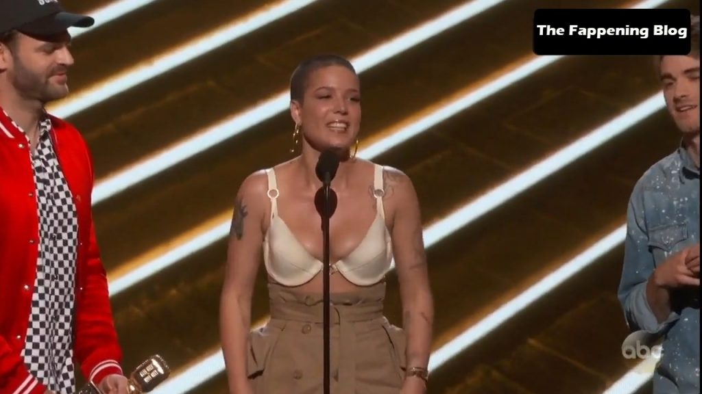 cause we are not aware of what happened yet! Halsey showed her nude tits and the cleavage into the white bra, as she moves her top up. She showed her stomach and sexy figure too. I adore these nipples and lips!
