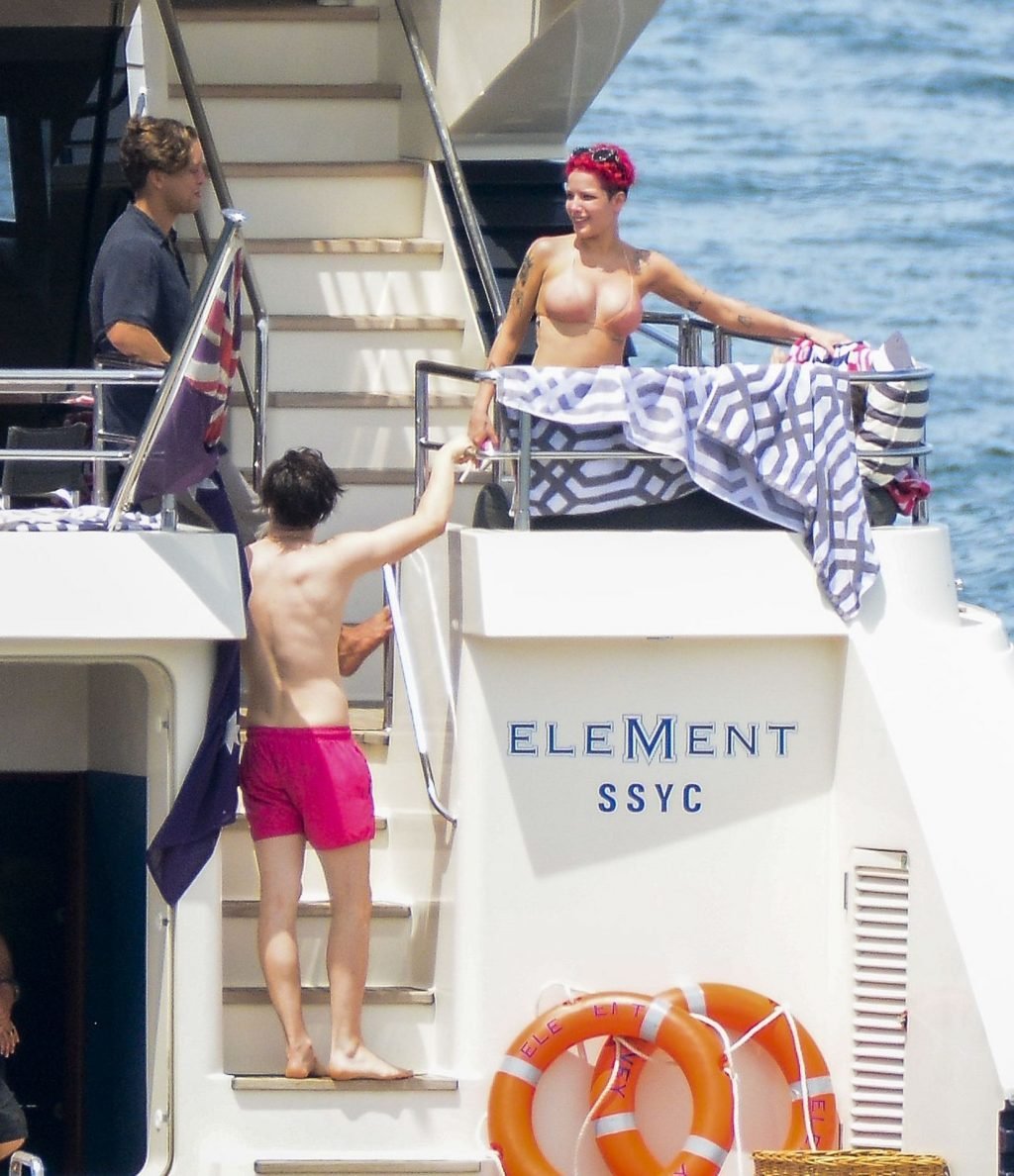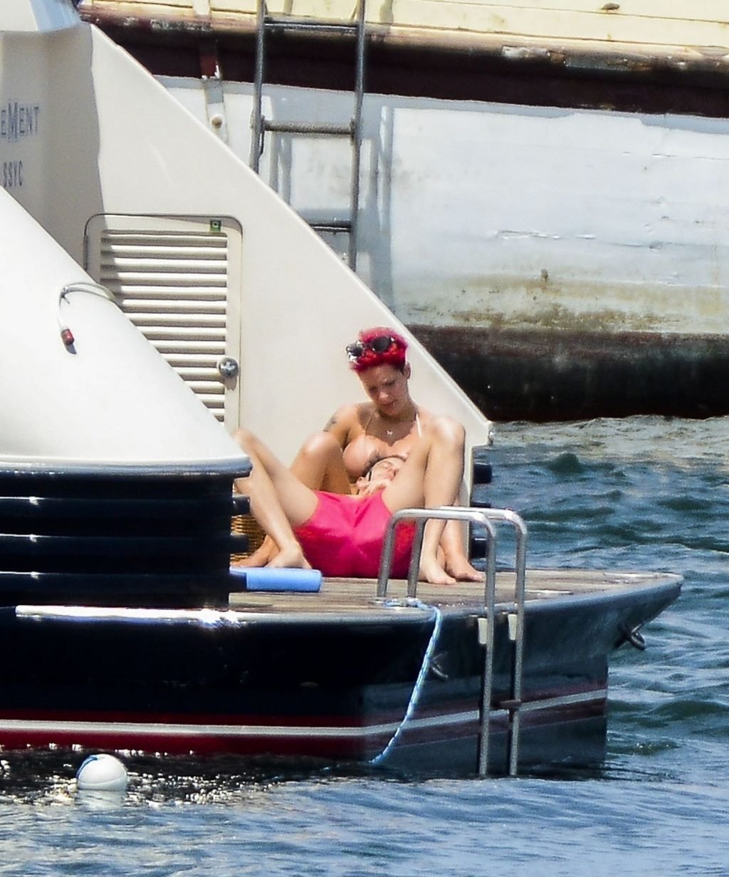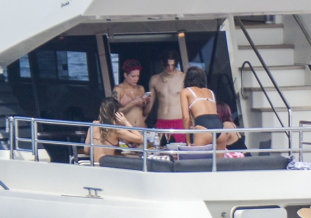 Halsey llevaba un bikini color nude mientras los dos mostraban una actitud afectuosa compartiendo un momento privado en la cubierta trasera de ese yate.