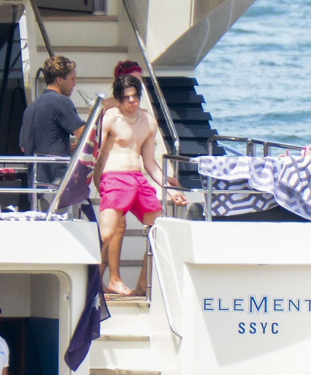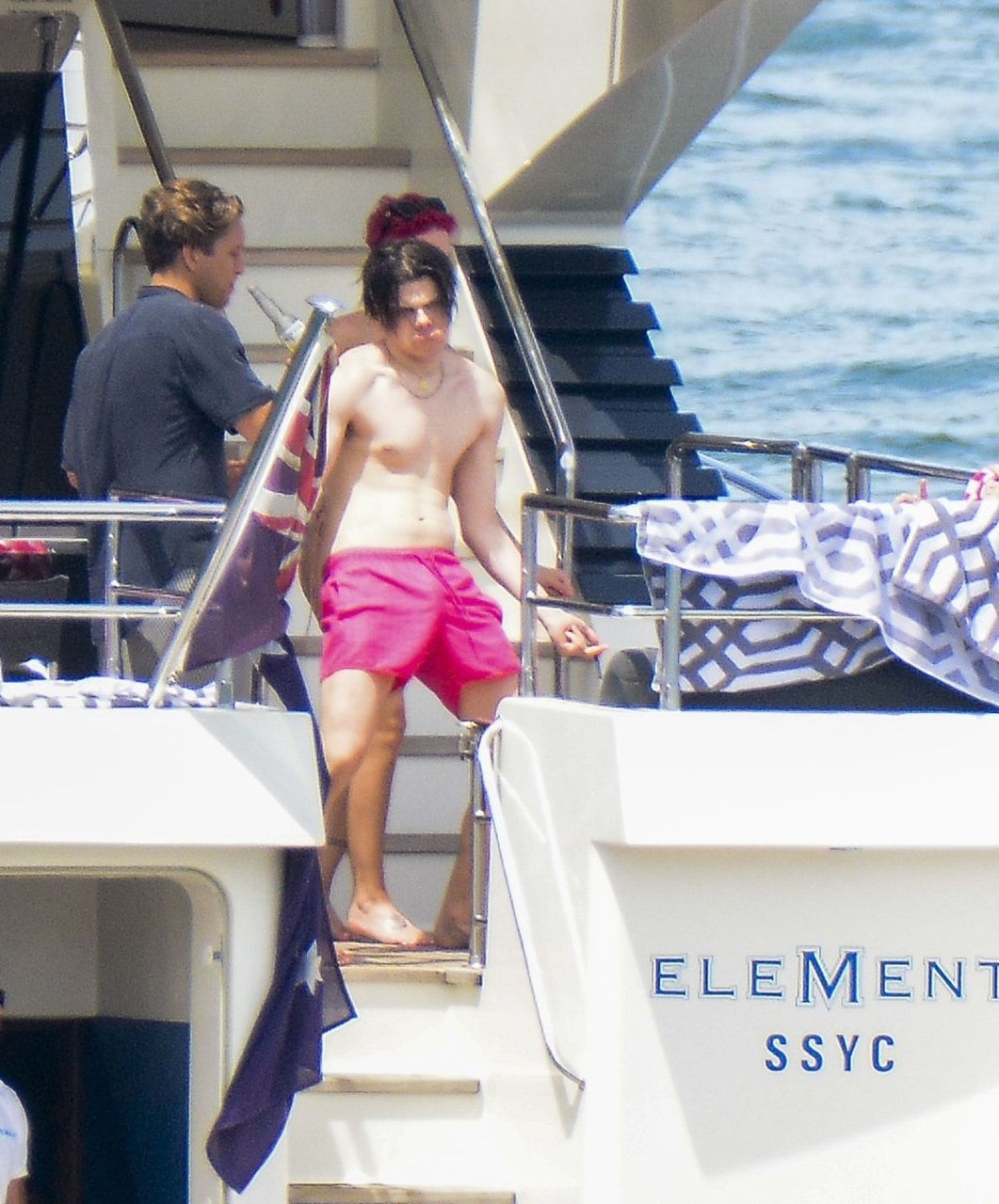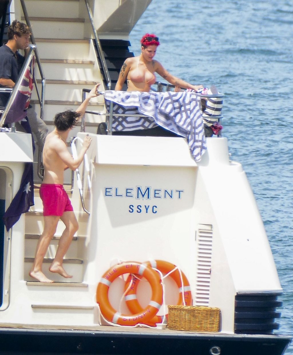 Halsey llevaba un bikini color nude mientras los dos mostraban una actitud afectuosa compartiendo un momento privado en la cubierta trasera de ese yate.
