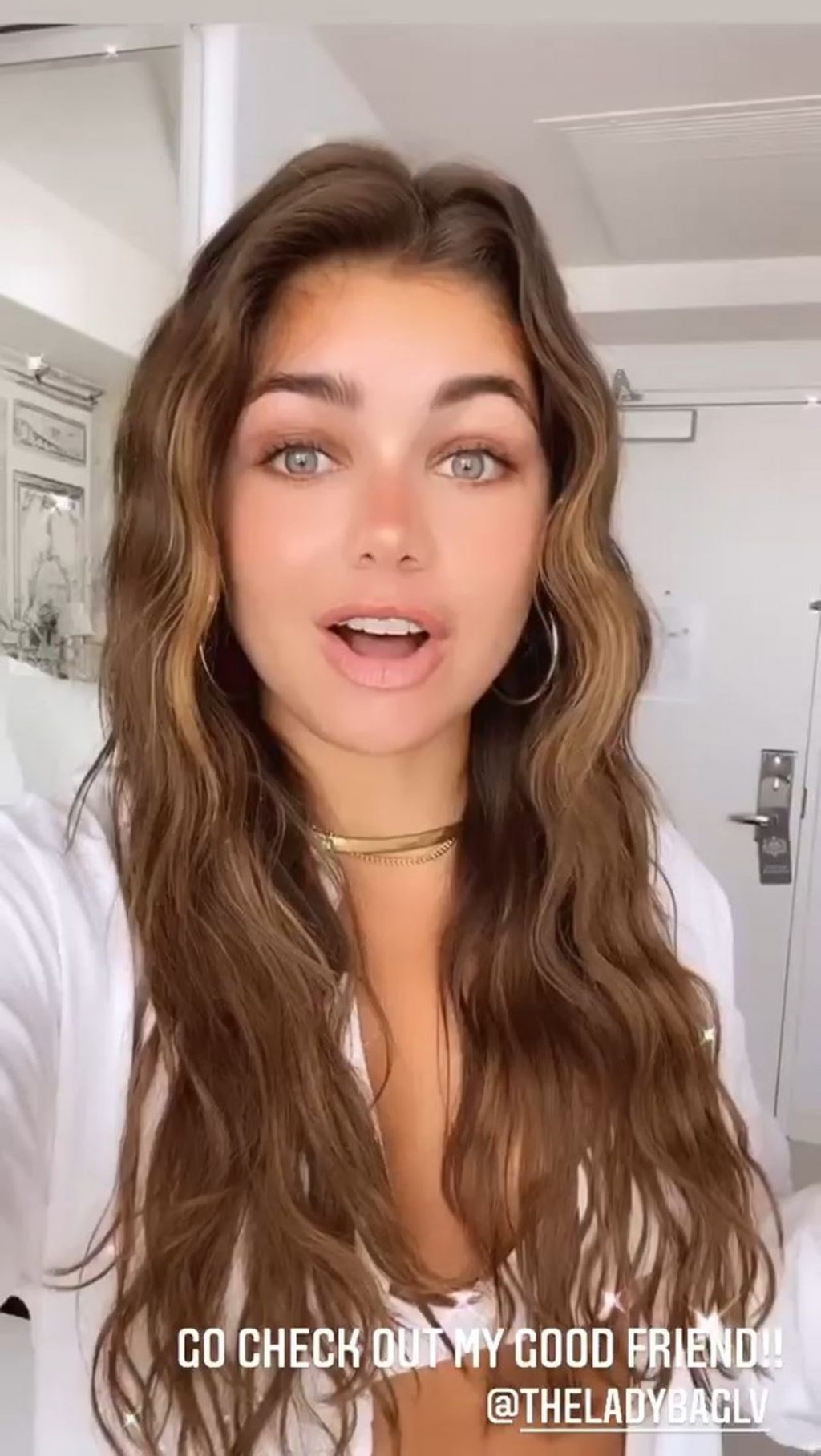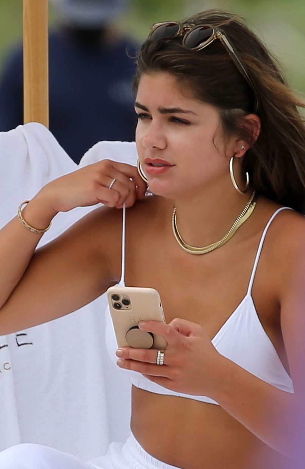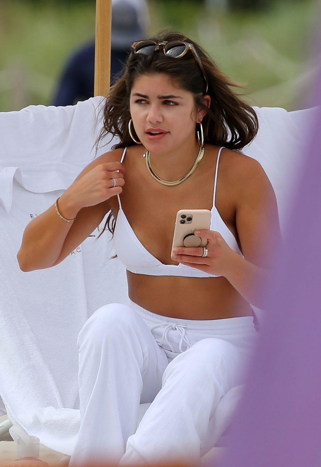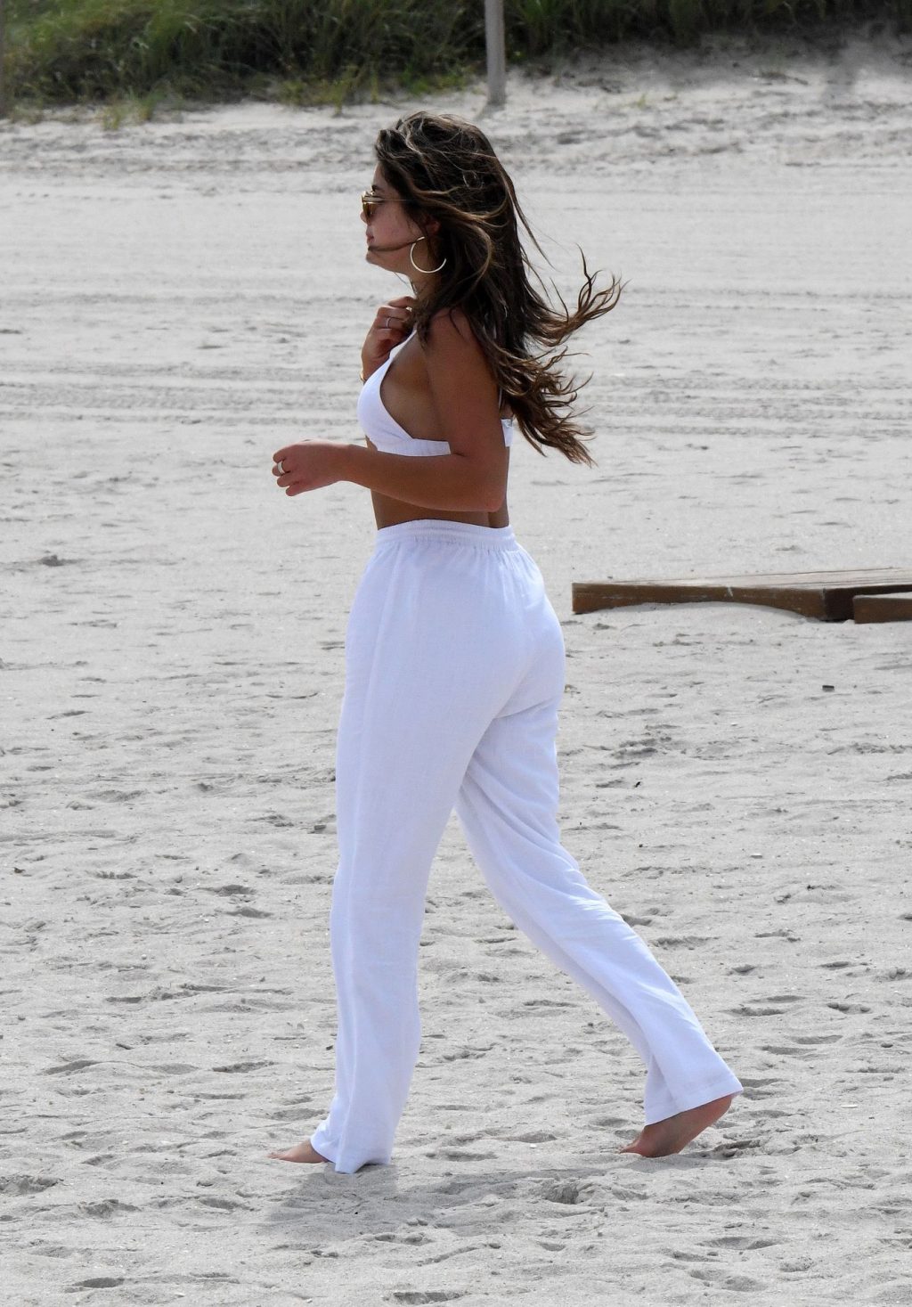 La modelo morena de 24 años combinó su pequeño traje de baño blanco con una camisa holgada de lino y pantalones palazzo mientras caminaba por la arena. La nativa de Tennessee es una favorita del público que apareció en la temporada del piloto Peter Weber del popular programa de citas de ABC y es ganadora de un concurso de belleza.