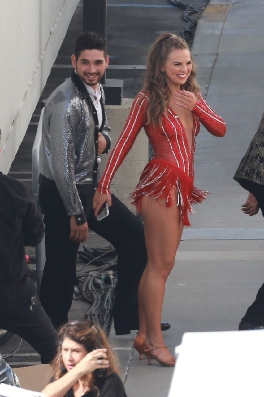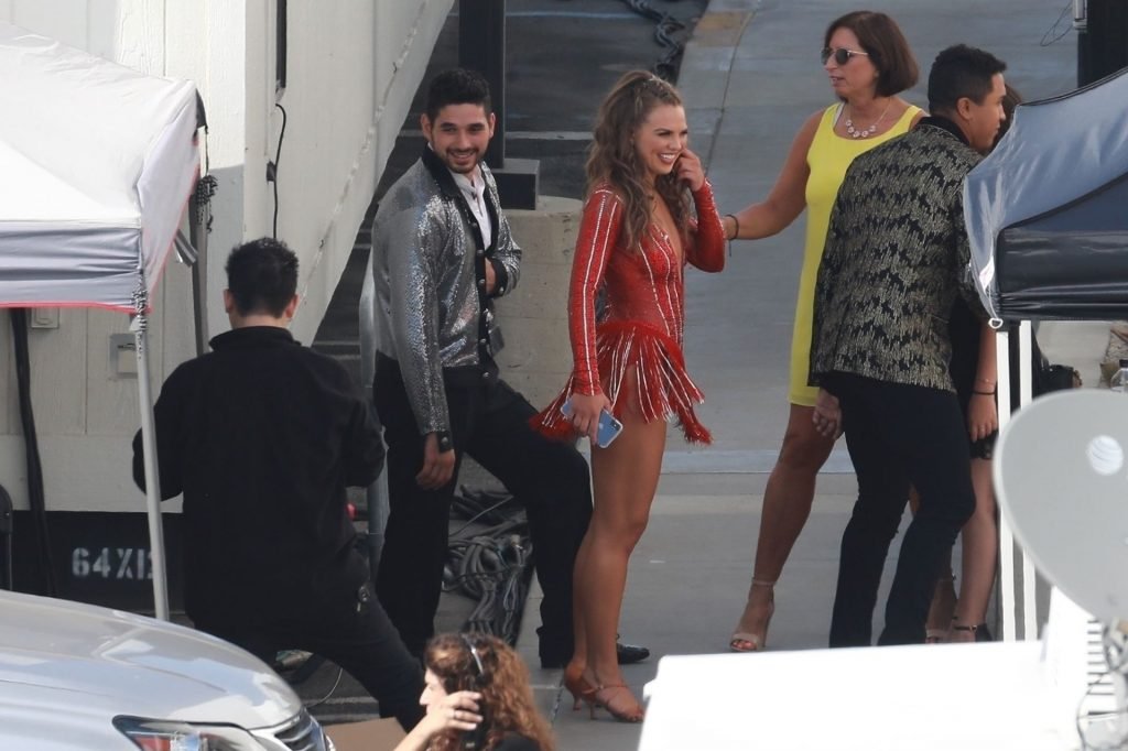 Estrella de la televisión estadounidense, actriz y modelo Hannah Brown y el bailarín Alan Bersten, como el elenco de “Dancing with the Stars”, se preparan para su primer show en vivo en Los Ángeles, 16/09/2019.