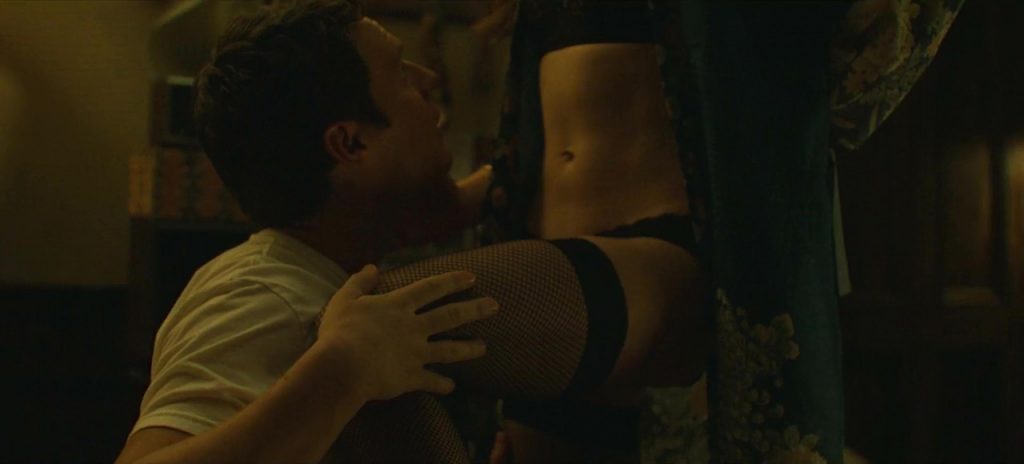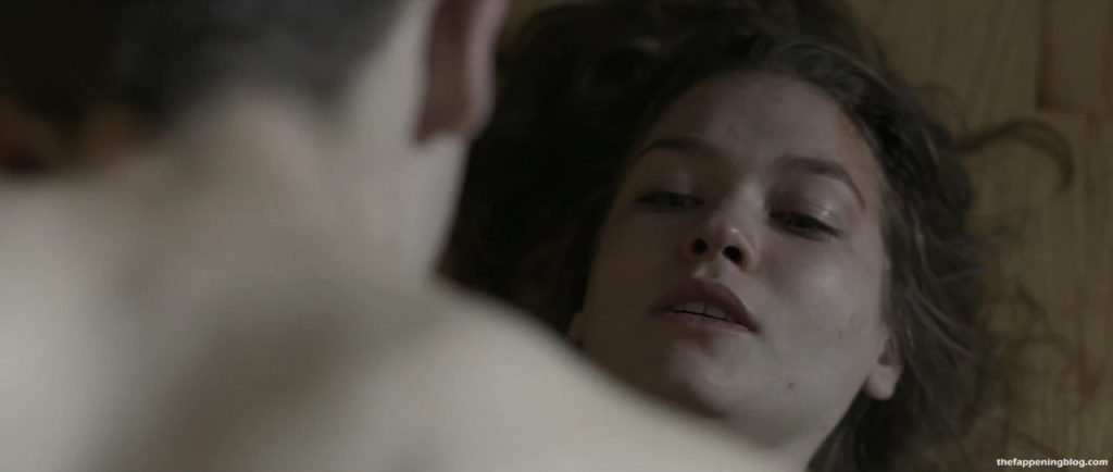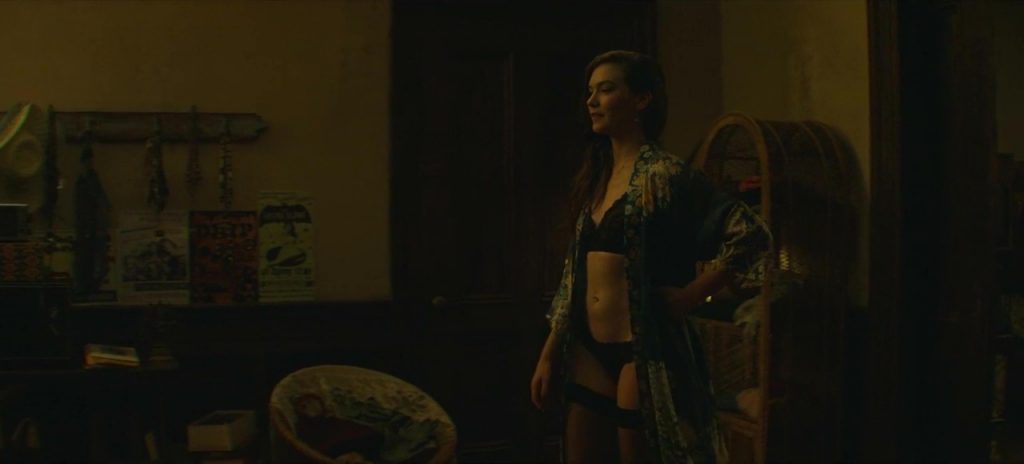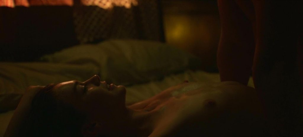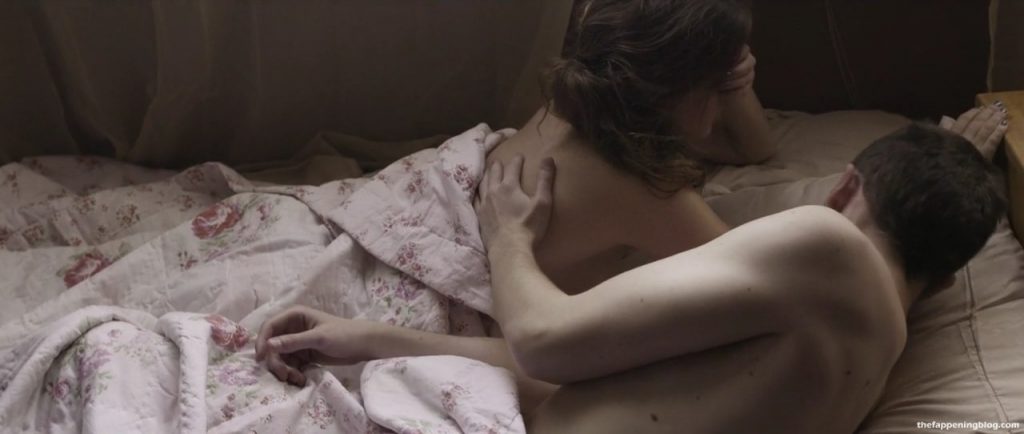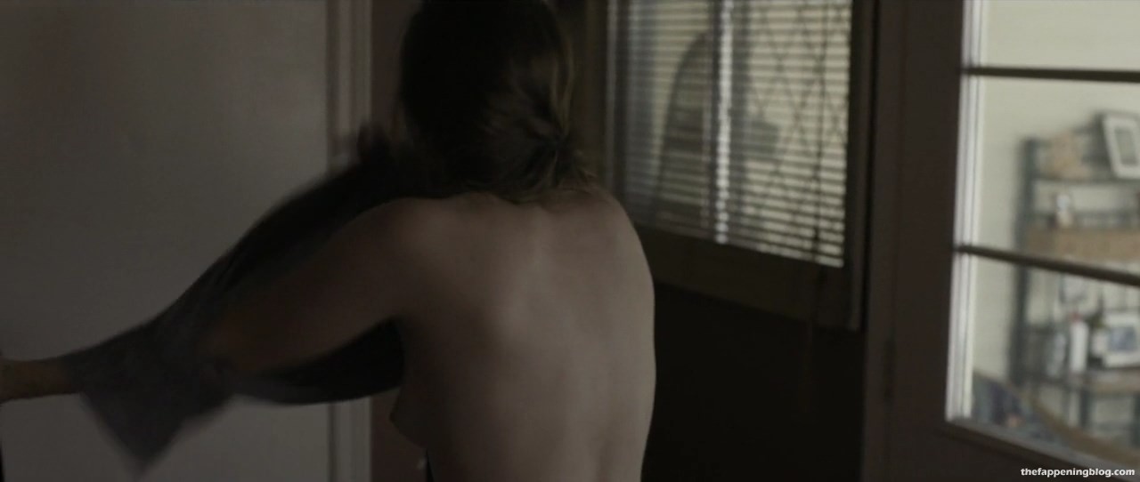 Hannah Gross, famosa por “The Sinner”, está durmiendo desnuda boca abajo mientras un hombre acostado a su lado toma un gato y lo pone sobre su espalda para provocarla y luego intenta ponerla de humor para tener sexo con él besando su espalda mientras ella se apoya sobre sus rodillas revelando sus pechos y luego se desliza hasta el borde de la cama para ponerse las bragas antes de levantarse y saltar un poco mostrando su pecho izquierdo hasta que finalmente agarra una camisa, se la pone y se va.