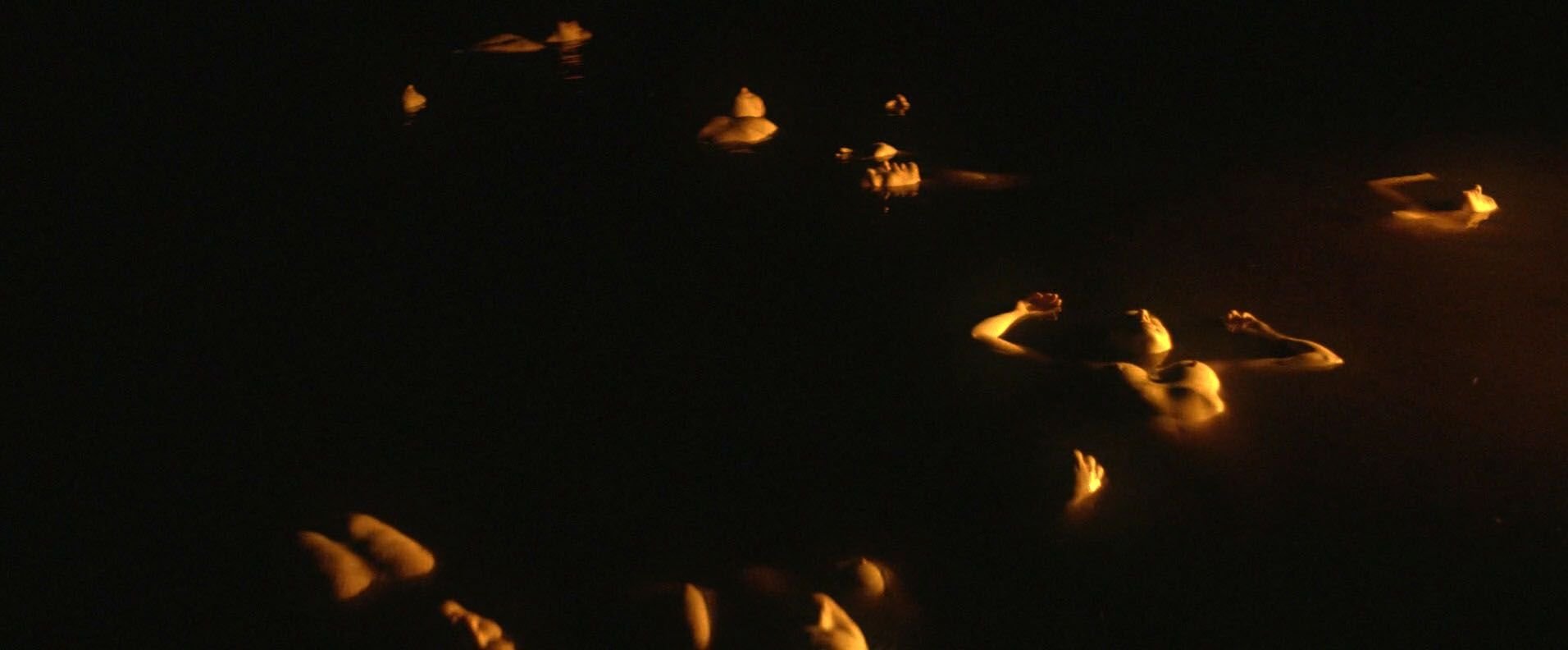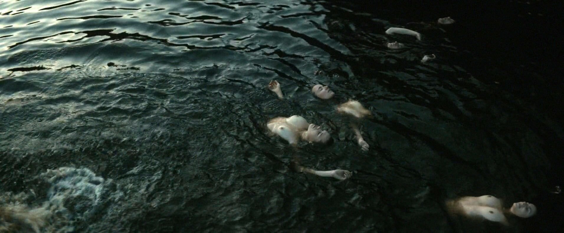 Algunas buenas tomas topless de Laurel mientras se adentra en un lago lleno de personas muertas!