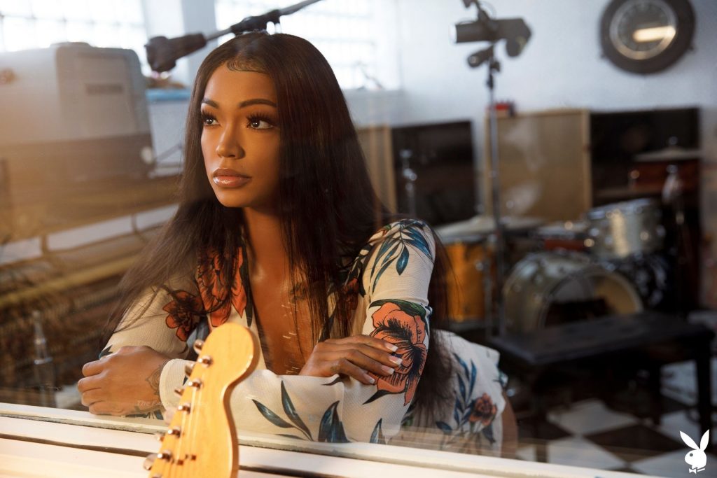 La actriz porno y modelo Harley Dean se desnuda en una nueva sesión de fotos para Playboy Plus (2021). Se ve ardiente, posando completamente desnuda, mostrando sus pechos falsos negros, su trasero y su vagina perforada en el estudio de grabación.
