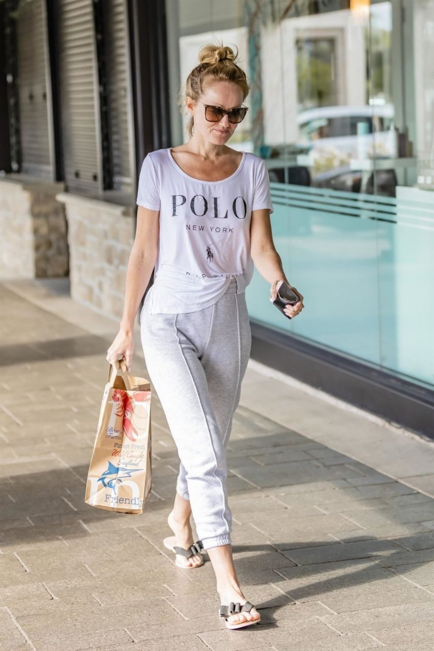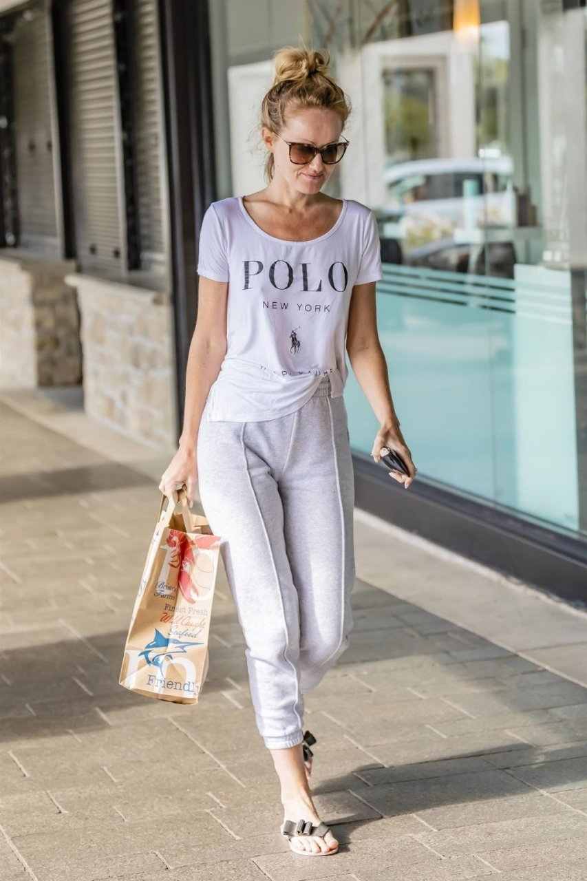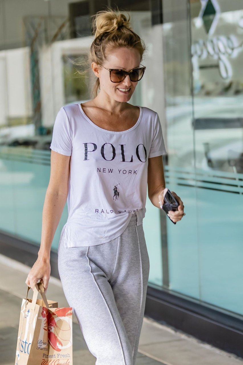 La esposa de David Hasselhoff, Hayley Roberts, fue vista sin sostén mientras hacía las compras en una fría mañana en Calabasas, 20/05/2019.
