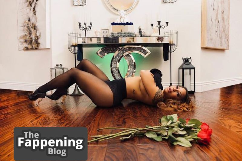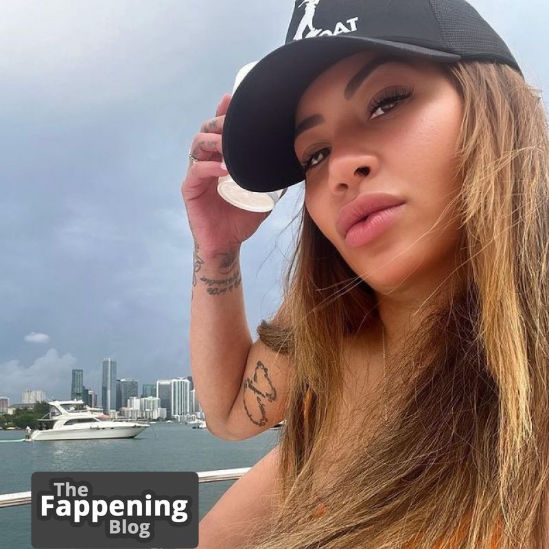 Hazel-E tiene una colección de fotos explícitas que muestra sus pechos desnudos, un escote amplio sin sostén, glúteos expuestos y una figura ardiente de modelo.