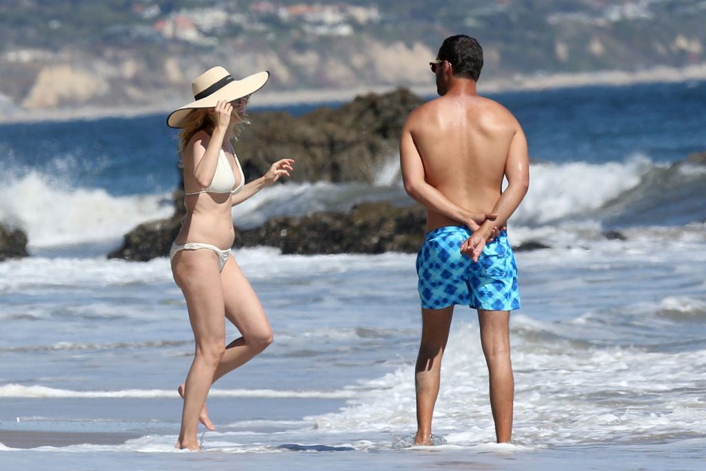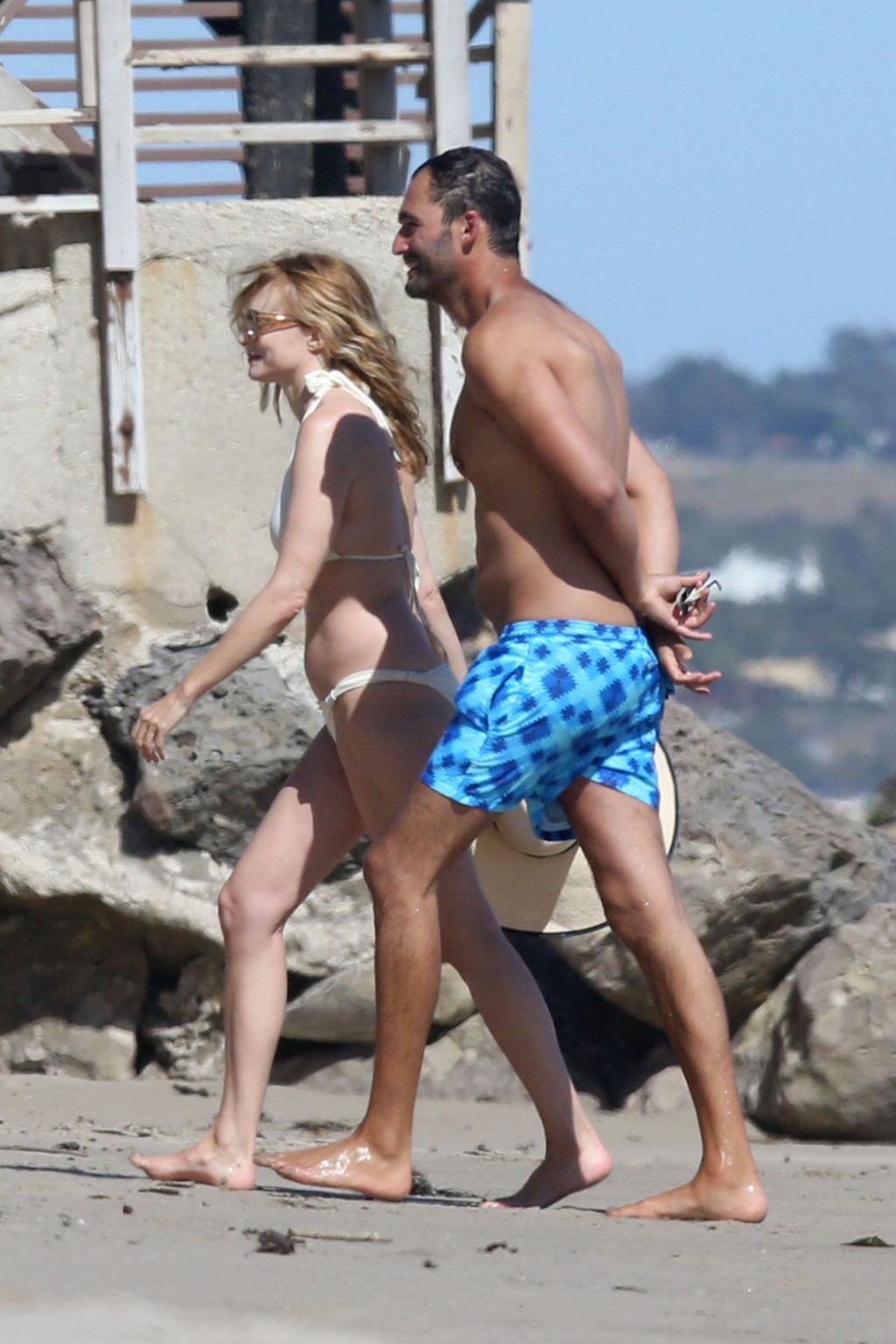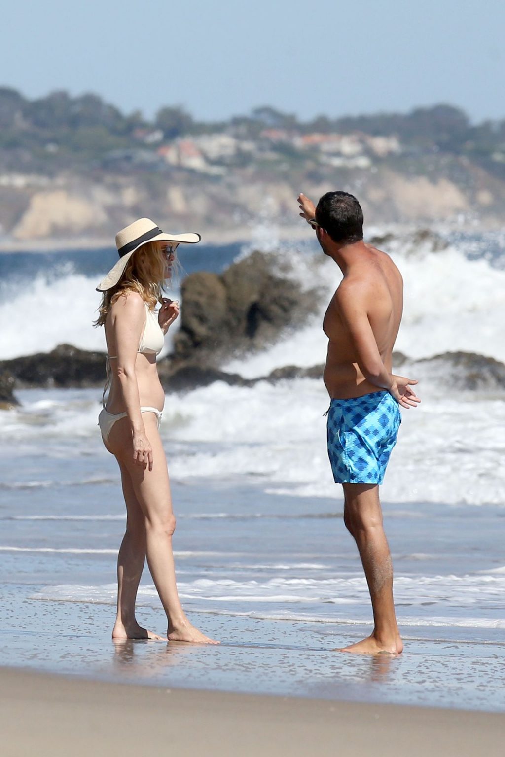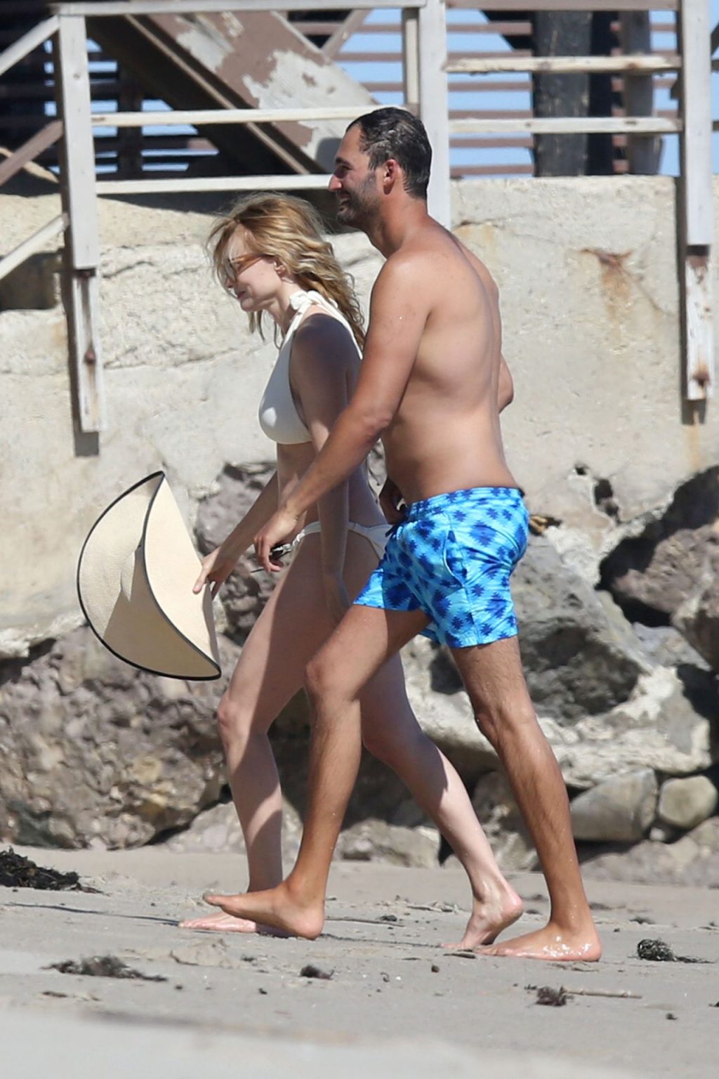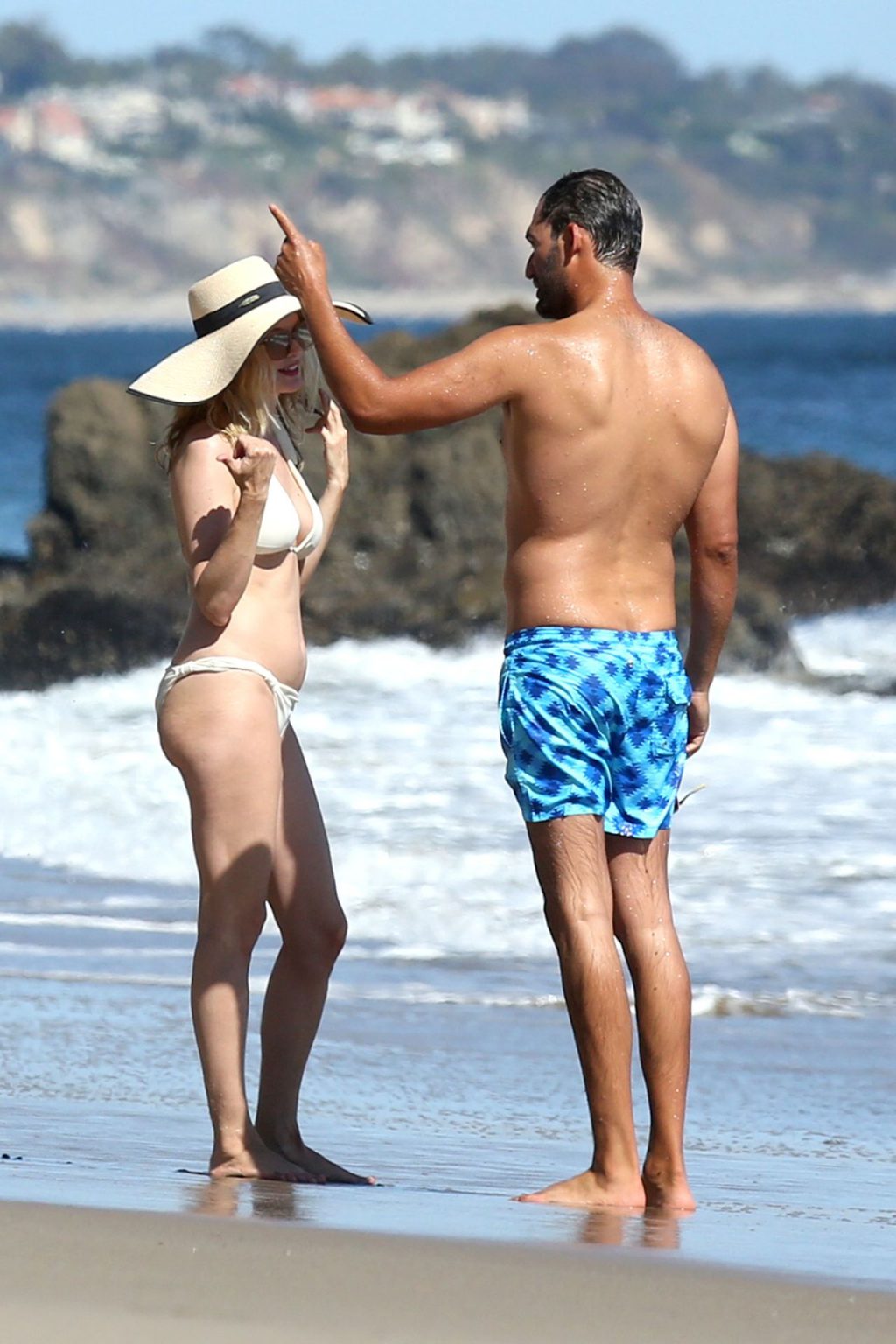 Vestida con un bikini color marfil, Heather se cuidó de proteger su piel con un enorme sombrero de ala ancha y gafas de sol. En un momento, un amigo en común bajó para unirse a ellos en la orilla y tomarles una foto. Heather y su amigo posaron felices para la instantánea. Pasando alrededor de 20 minutos riendo y charlando, la pareja luego regresó por la playa, con el viento soplando el cabello de Heather sobre su rostro mientras reajustaba su sombrero.