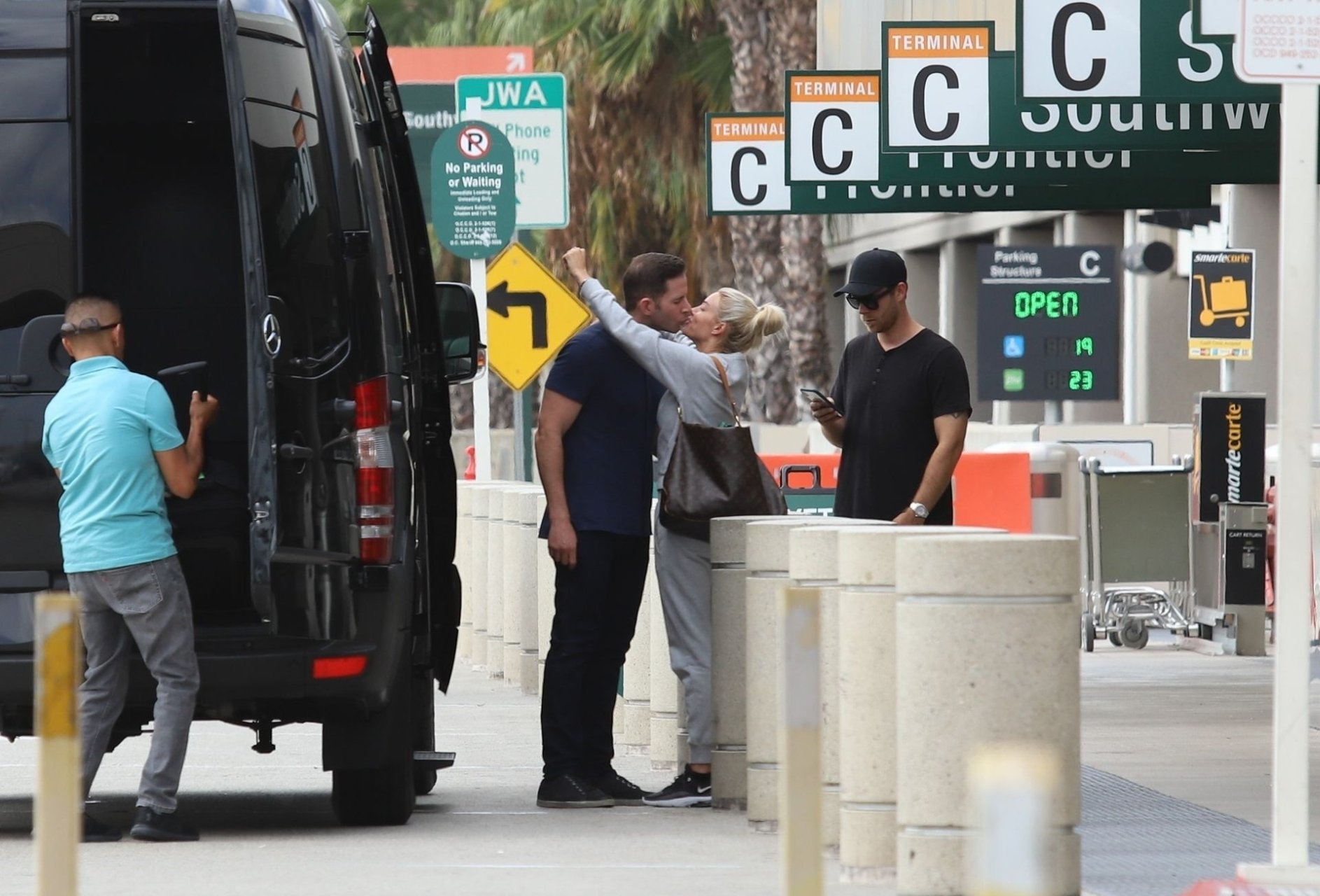 La estrella de HGTV Tarek El Moussa fue visto dejando a su novia Heather Rae Young en el Aeropuerto de OC antes de un vuelo, pero no sin antes un largo abrazo y múltiples besos de despedida, 09/09/2019. La ex esposa de Tarek, Christina Anstead, dio la bienvenida a un niño la semana pasada, y Tarek incluso se ofreció a cuidar al bebé.
