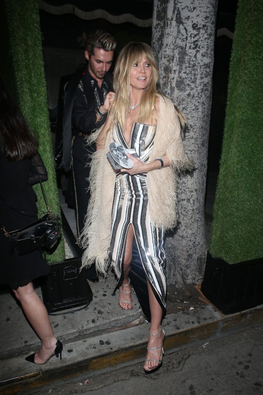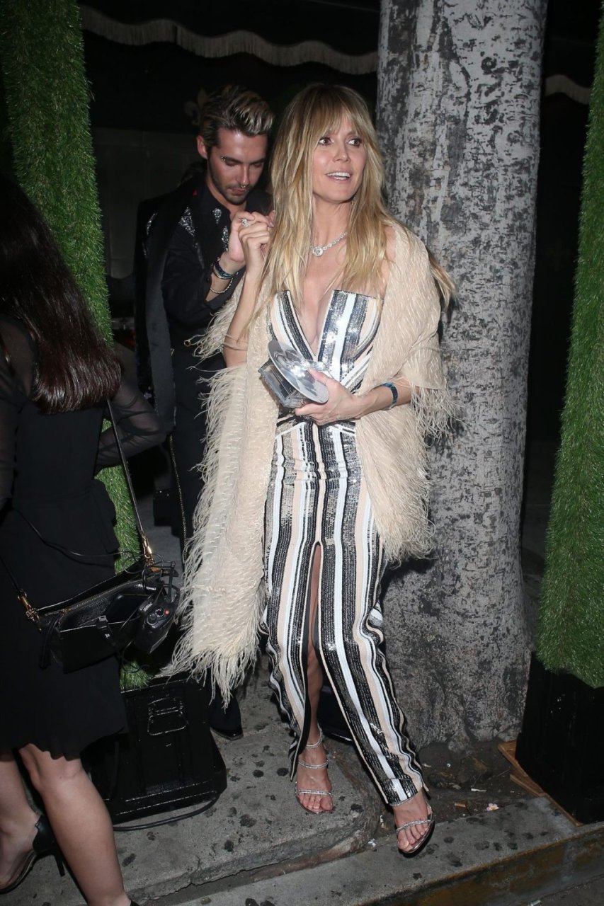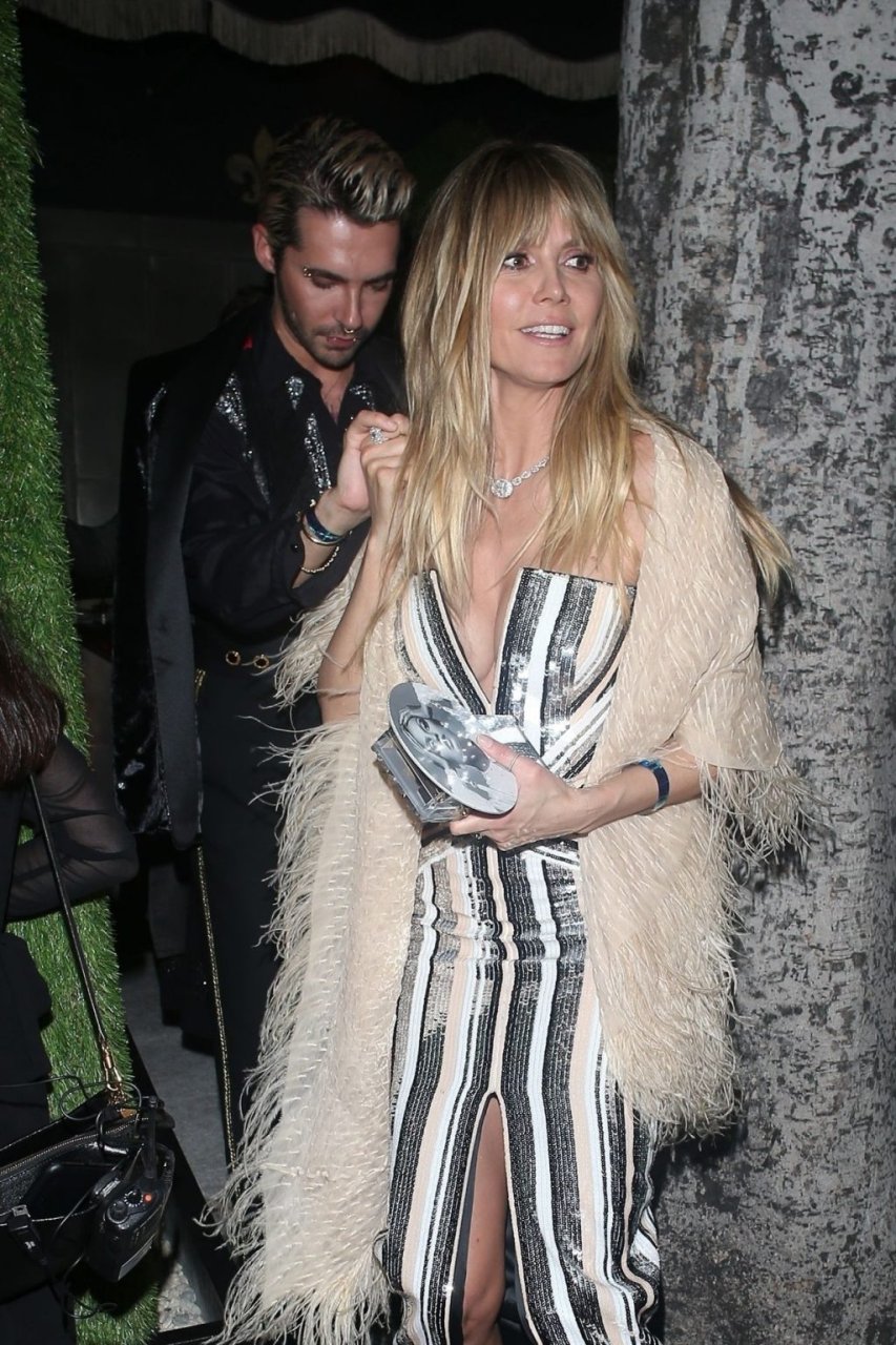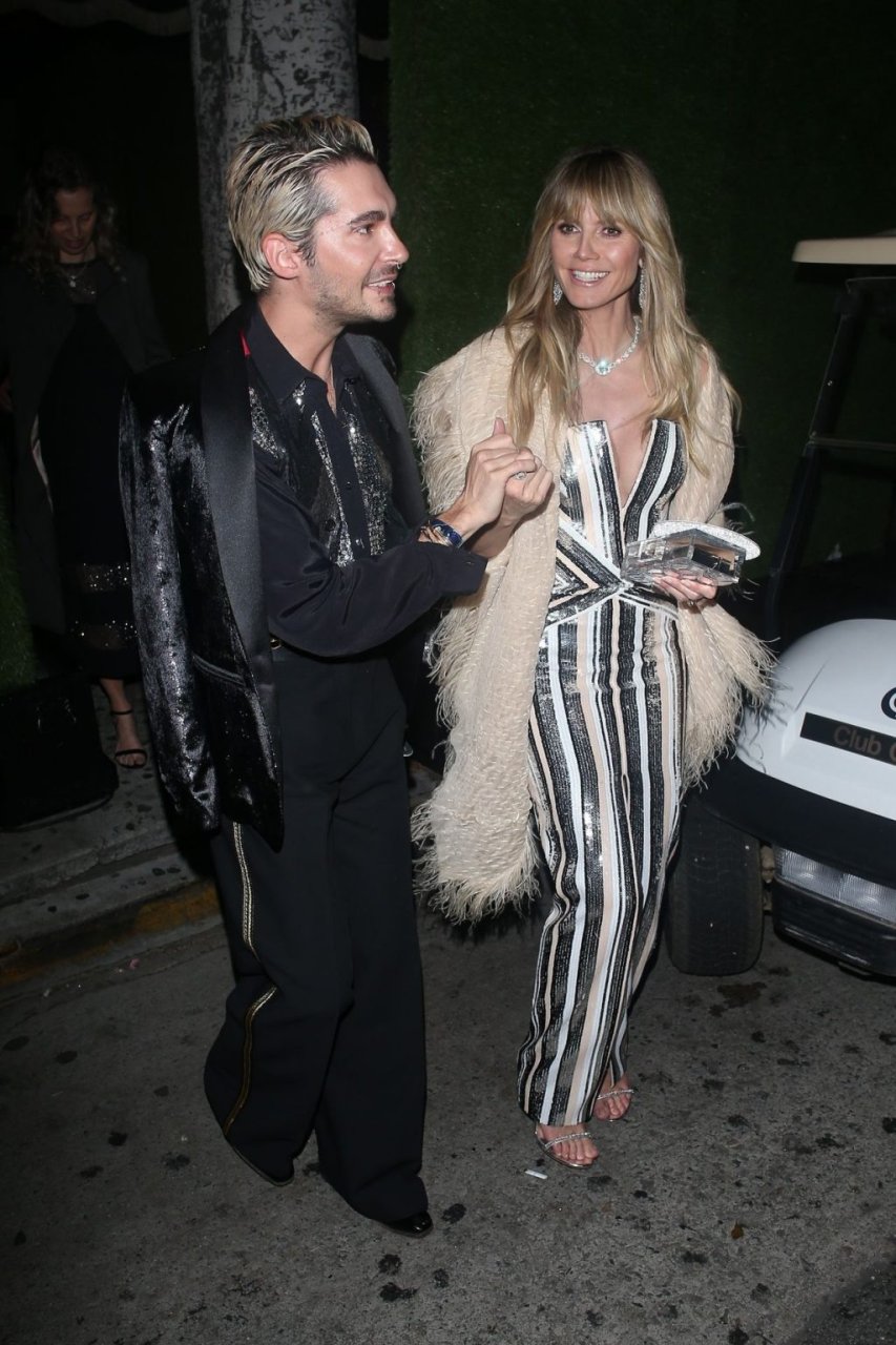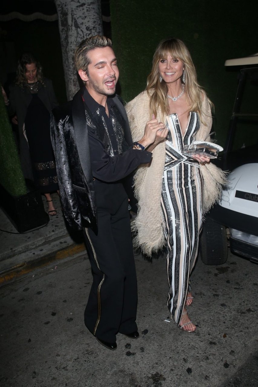 Heidi Klum y Tom Kaulitz salen de la fiesta de cumpleaños de Diana Ross en Warwick en Hollywood, 26/03/2019. La estrella germanoamericana de 45 años de televisión reality, actriz y modelo mostró su profundo escote con un hermoso vestido.