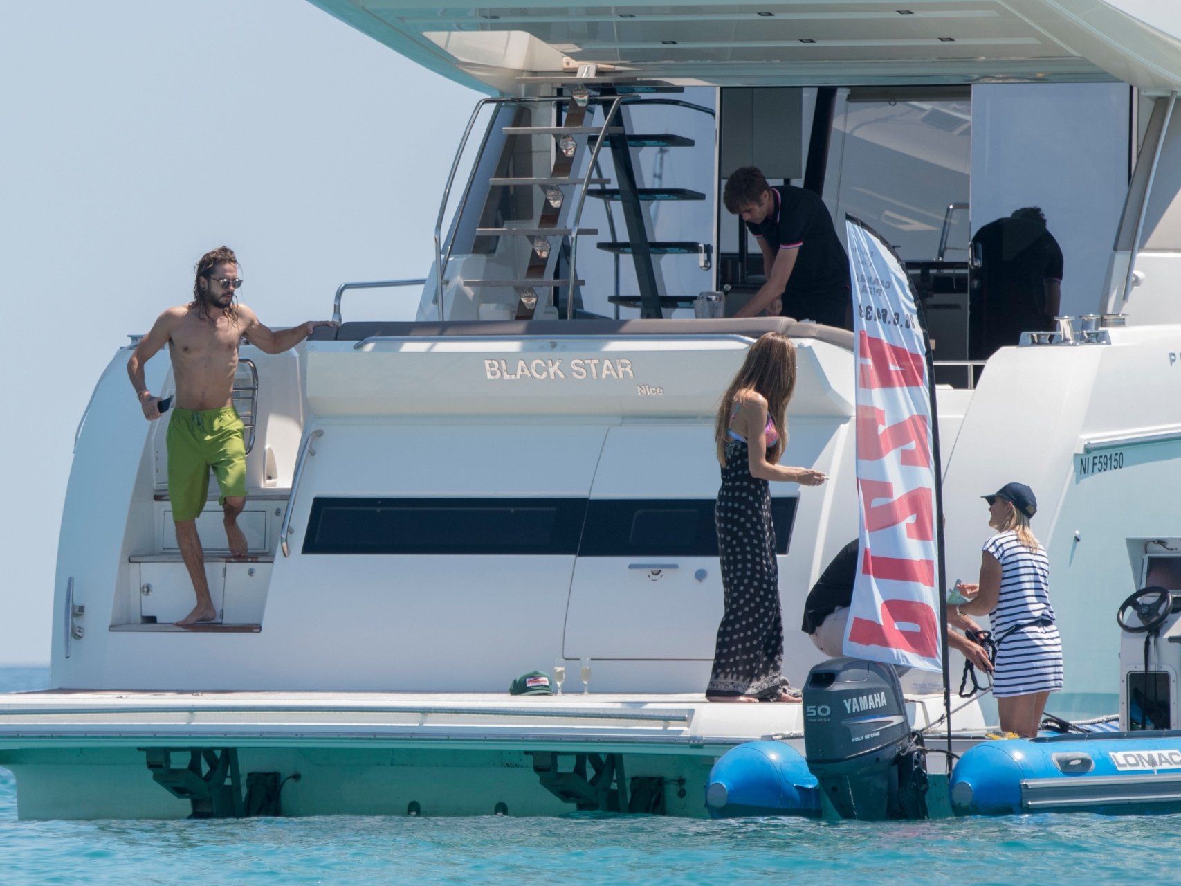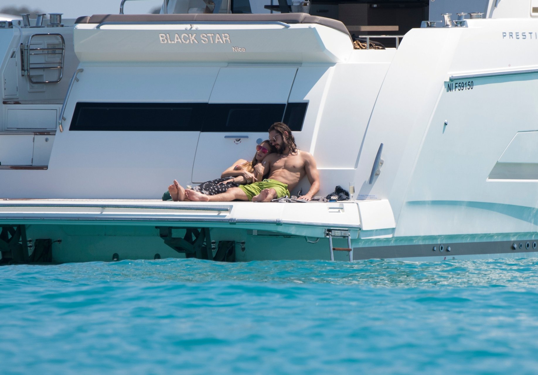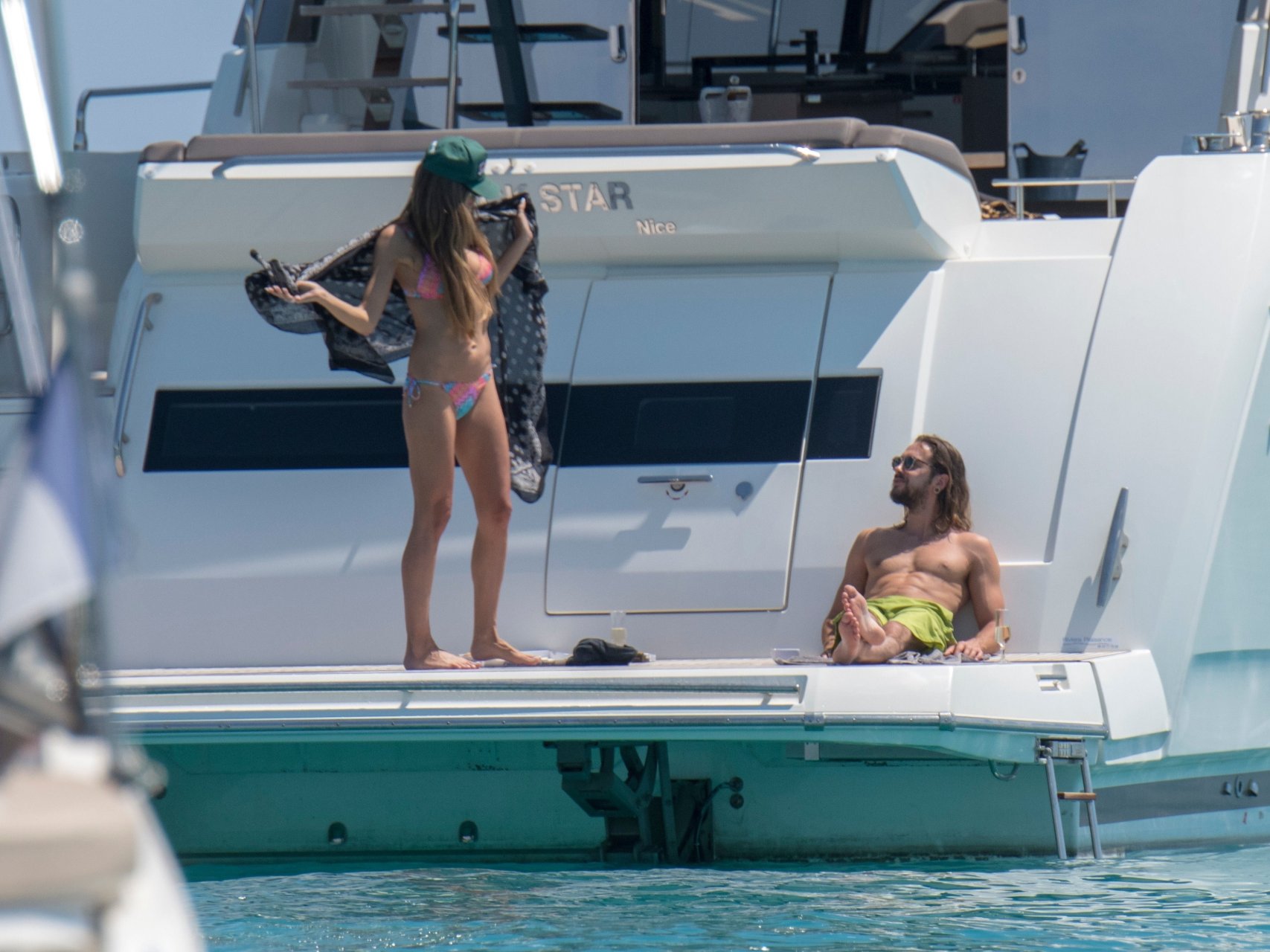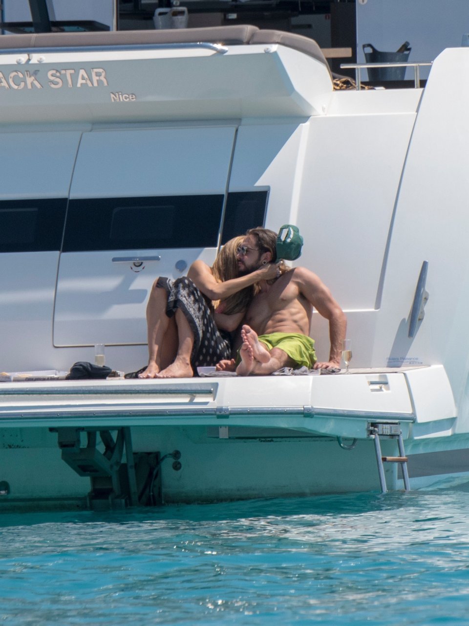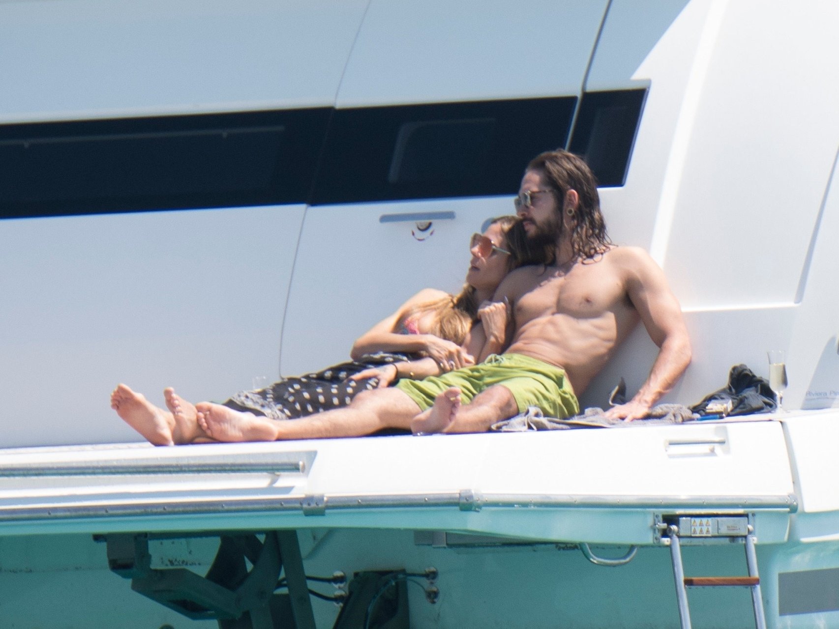 La supermodelo alemana y personalidad de televisión Heidi Klum, 44, y su nuevo novio Tom Kaulitz piden pizza en un barco en Cannes, 19/05/2018. La pareja enamorada se besó mientras tomaban el sol.