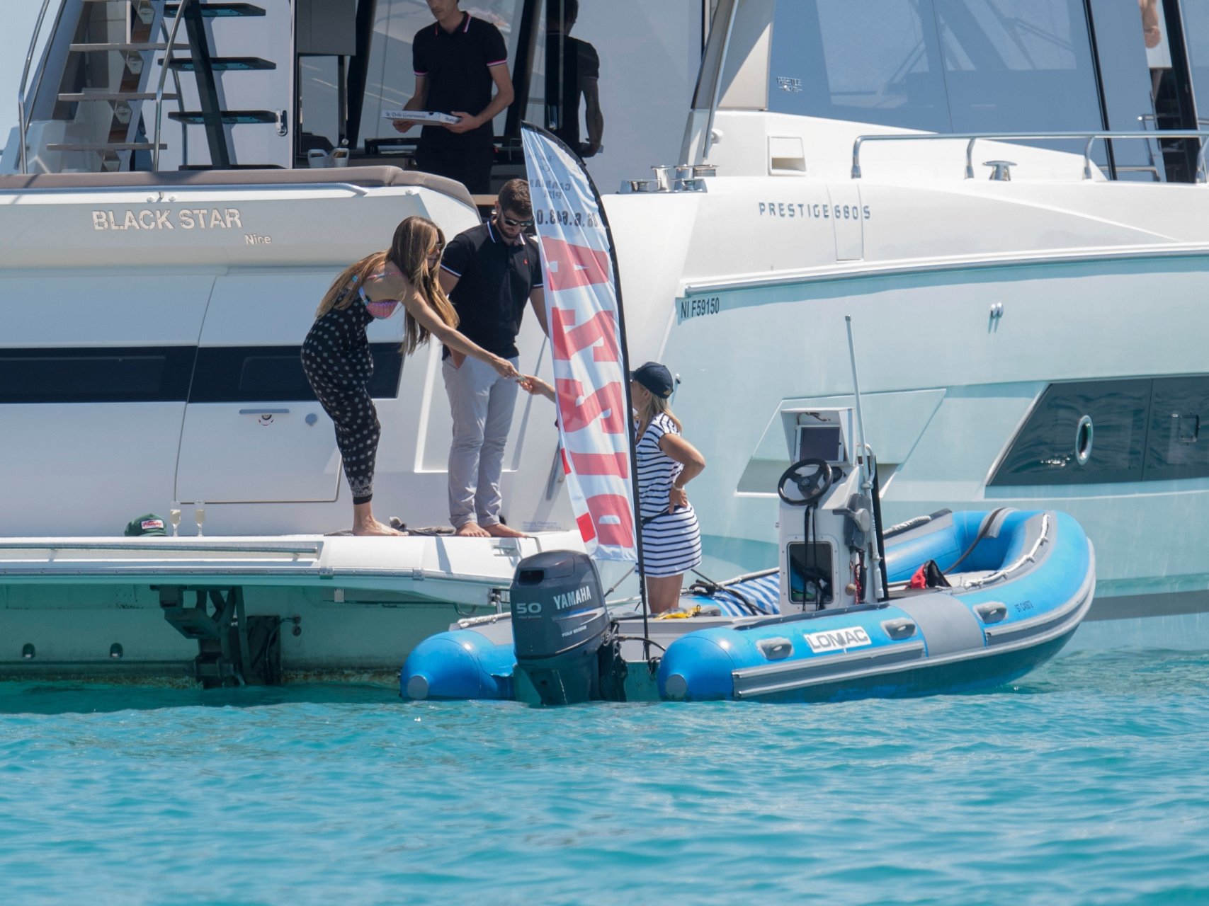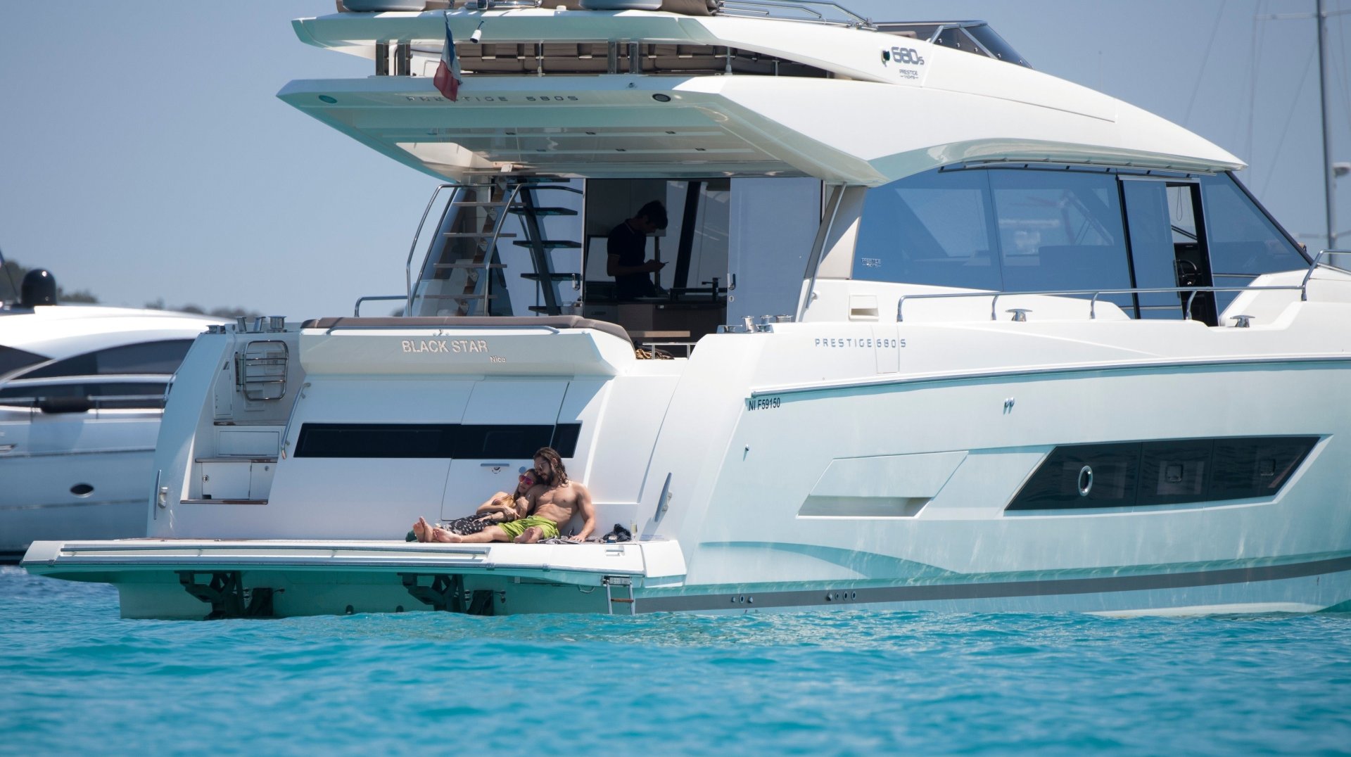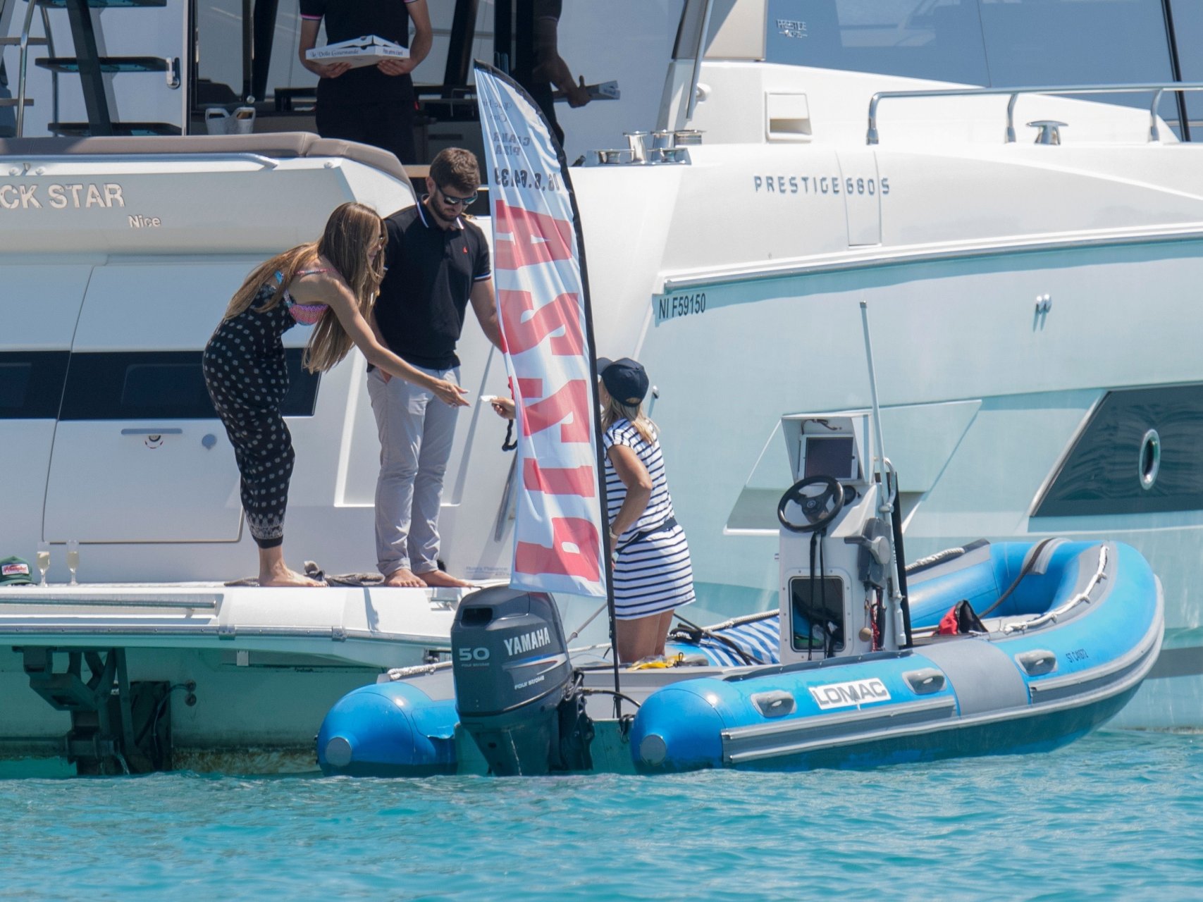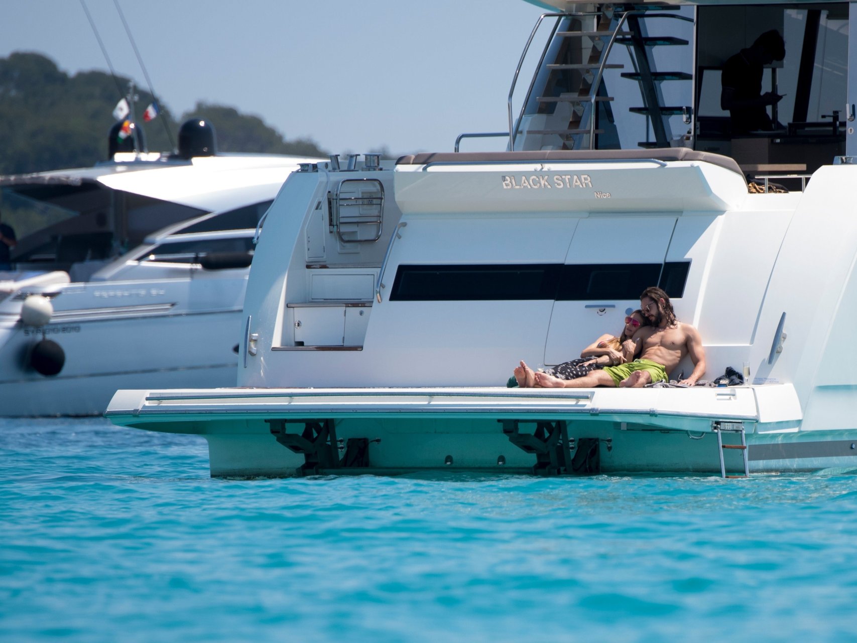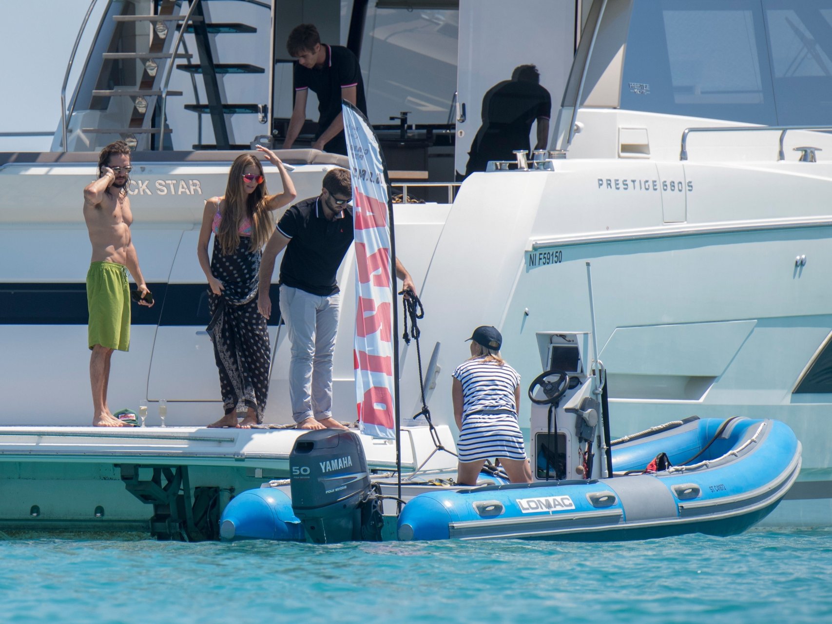 La supermodelo alemana y personalidad de televisión Heidi Klum, 44, y su nuevo novio Tom Kaulitz piden pizza en un barco en Cannes, 19/05/2018. La pareja enamorada se besó mientras tomaban el sol.