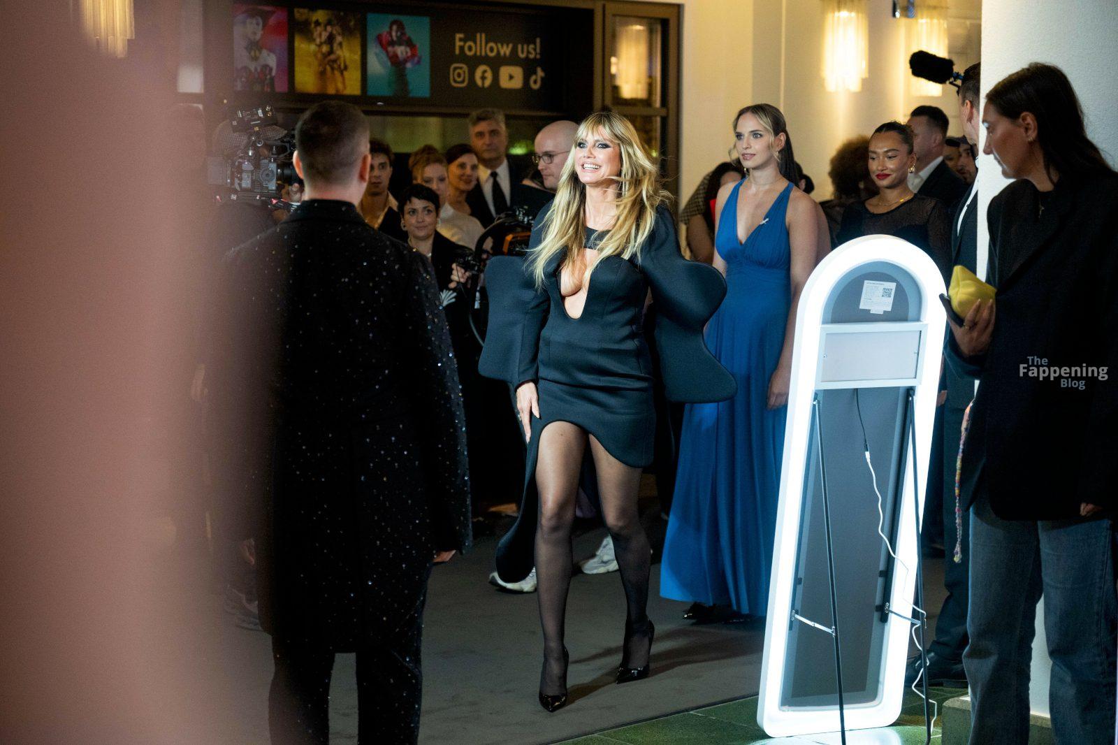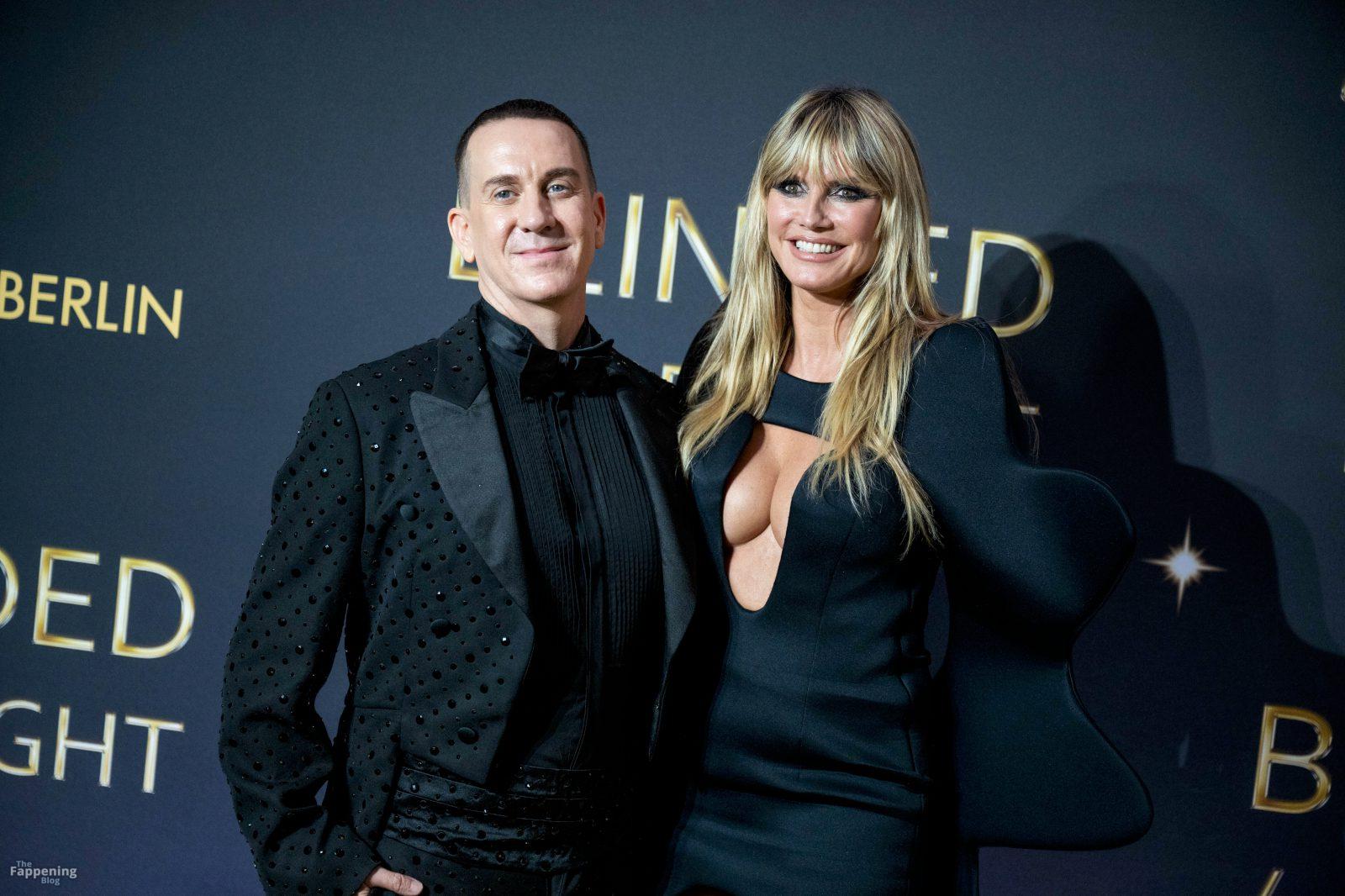 Heidi Klum apareció en el estreno de Blinded By Delight en Berlín, luciendo un vestido negro ceñido con un famoso escote.