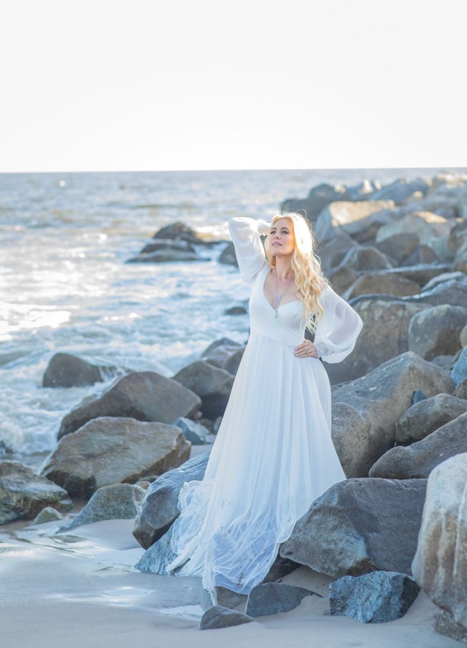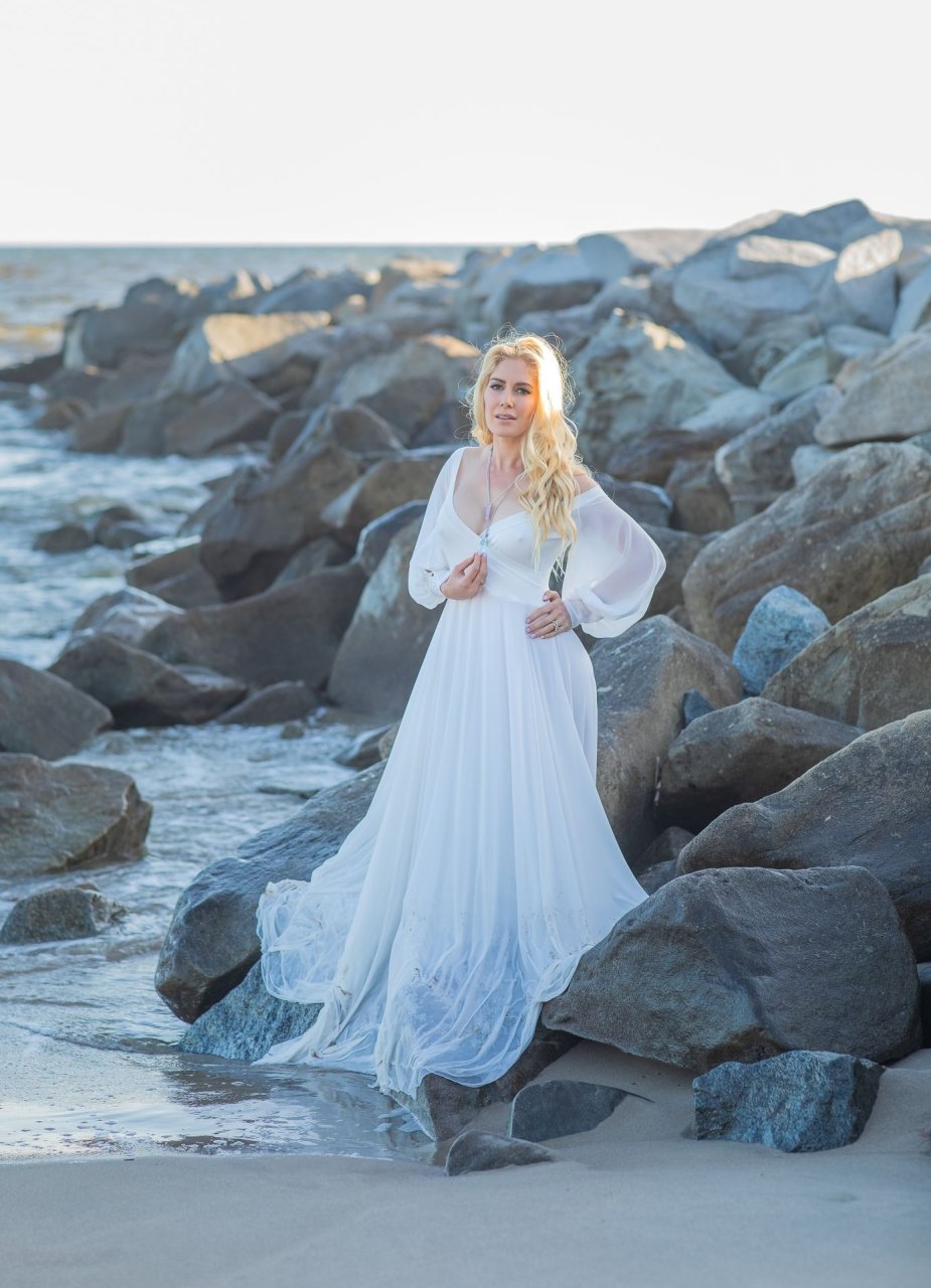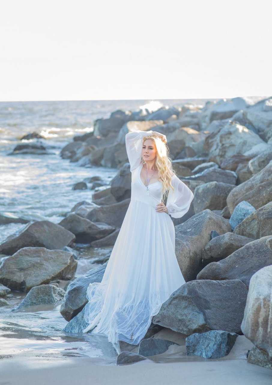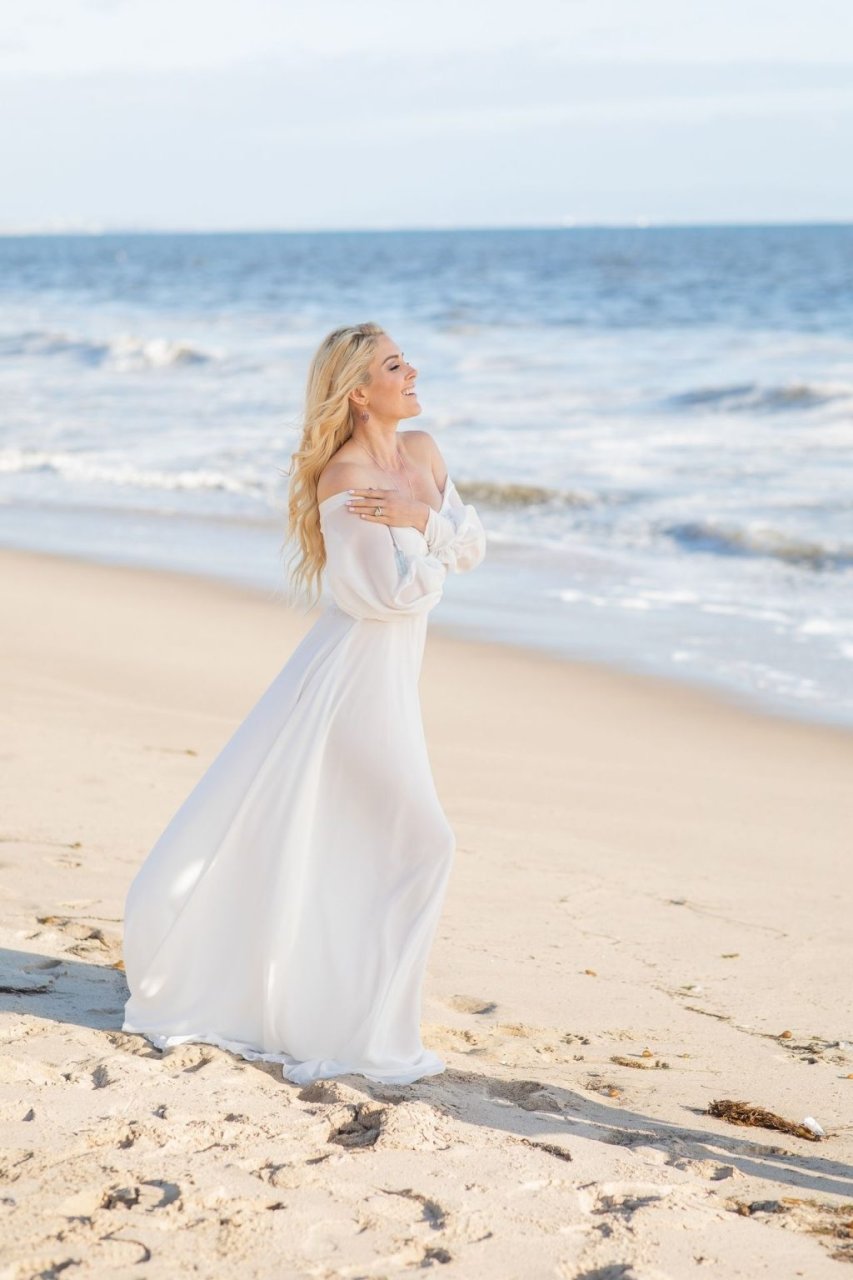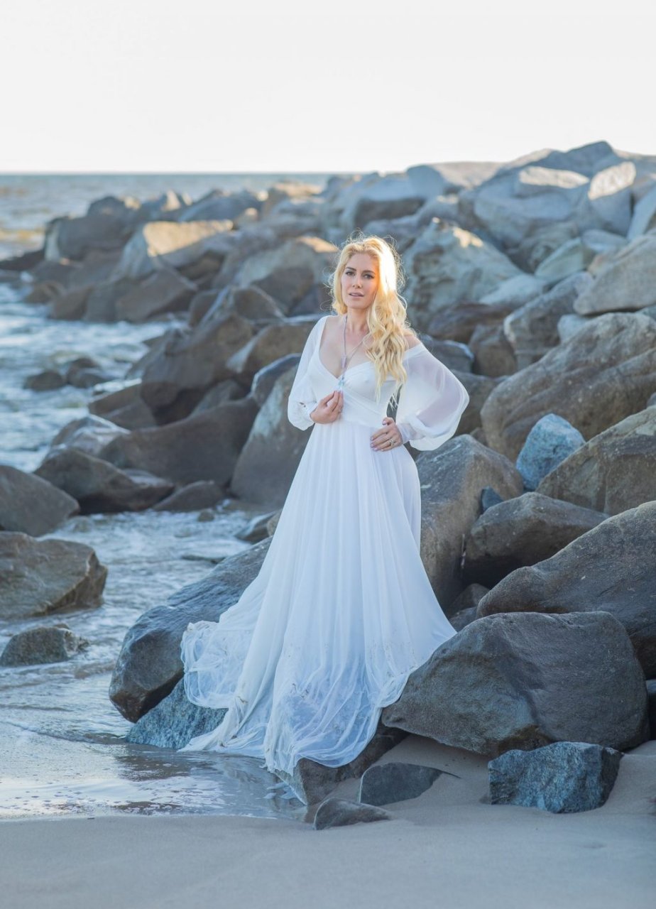 La personalidad de televisión y cantante Heidi Montag lleva un bonito vestido blanco transparente mientras posa para fotos este fin de semana en Malibu, 08/05/2019. La rubia caliente de 32 años mostró su escote en la playa.